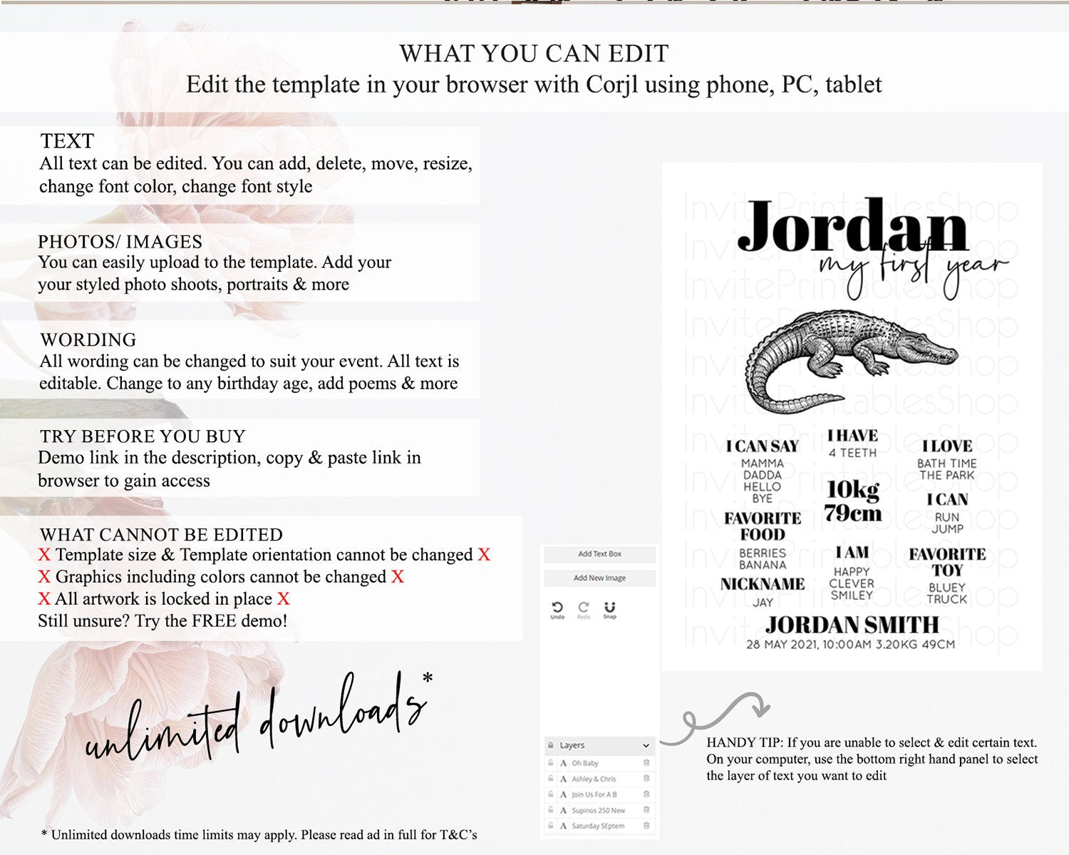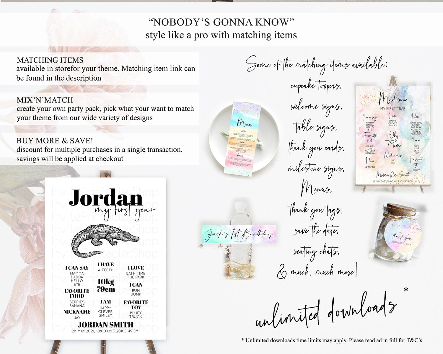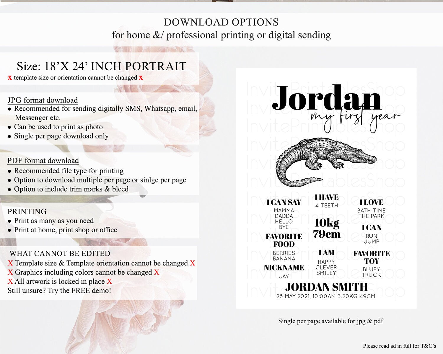 Crocodile First Birthday Milestone Board Alligator Milestone Poster Crocodile Alligator Decor Croc Gator First Birthday Welcome Sign D10286