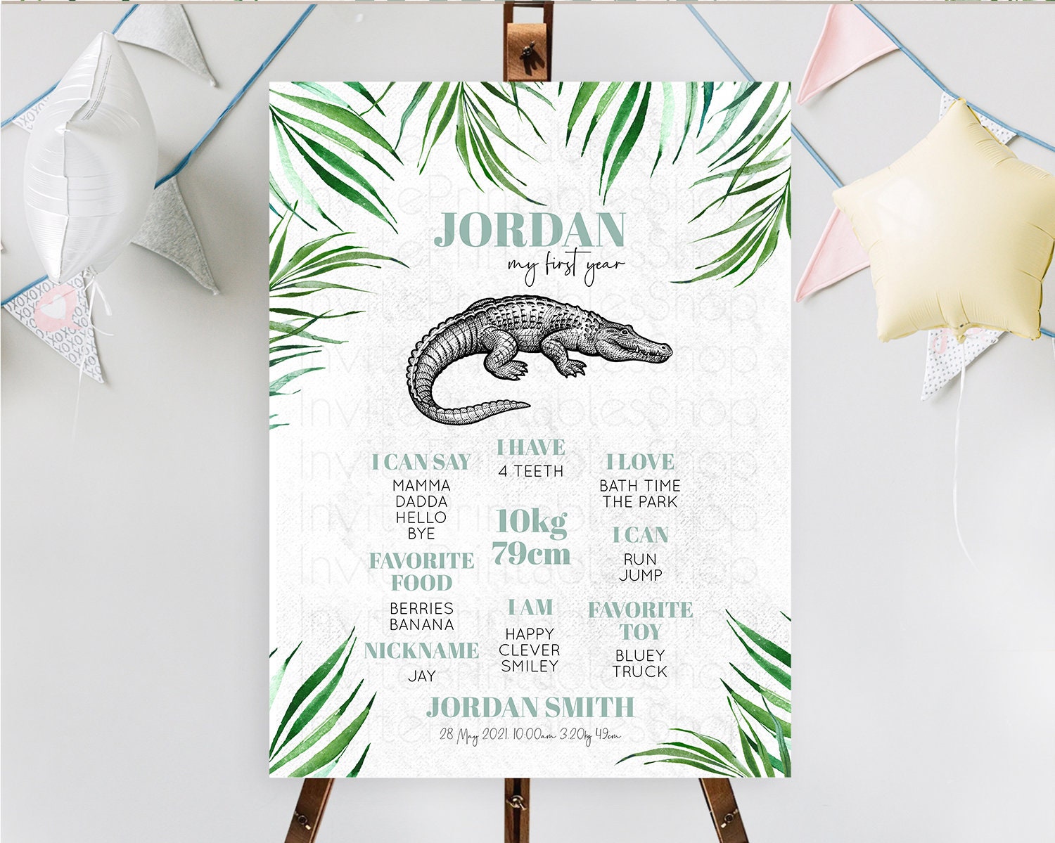 Crocodile First Birthday Milestone Board Alligator Milestone Poster Crocodile Alligator Decor Croc Gator First Birthday Welcome Sign D10847