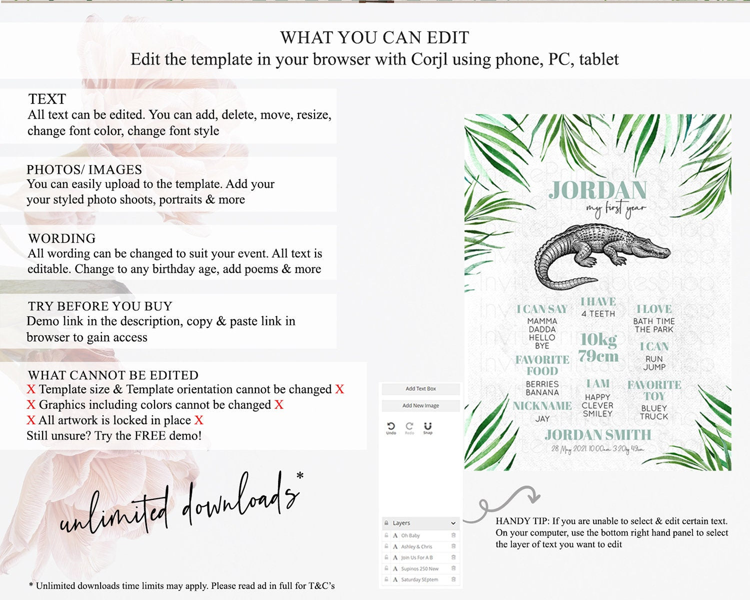 • After purchase, Corjl emails your editing link. Allow up to 15 minutes for delivery.