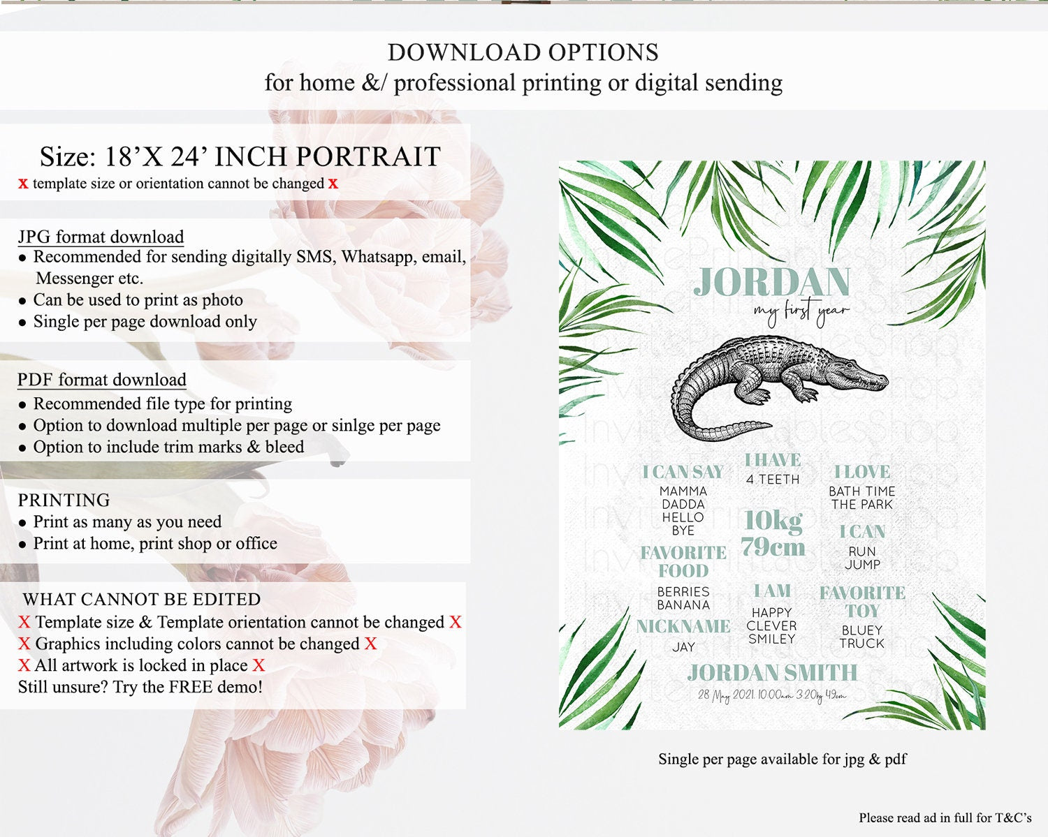 • Template size & orientation cannot be changed. Please use the demo link to confirm this product suits your needs.