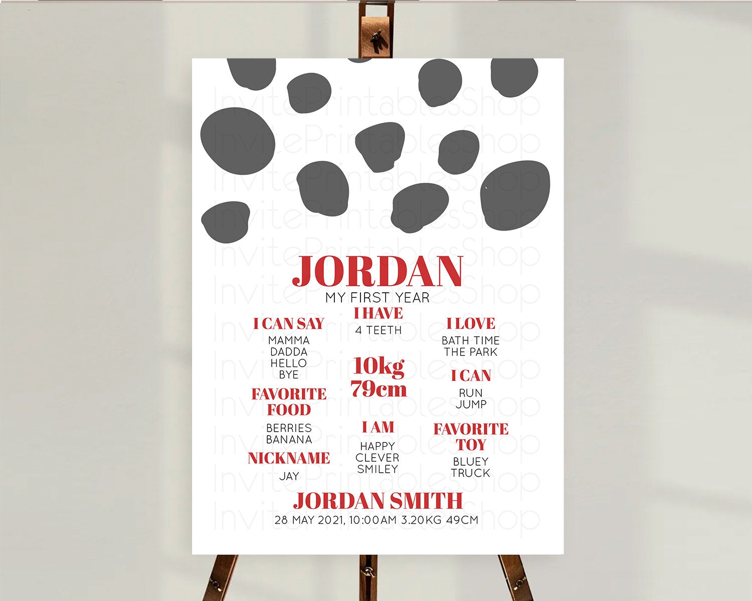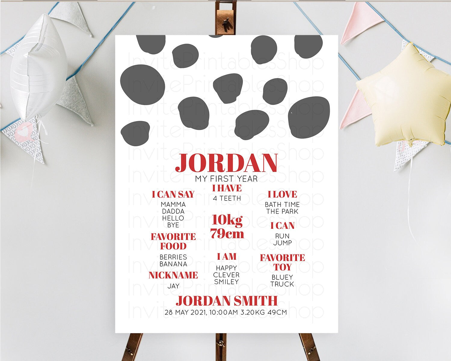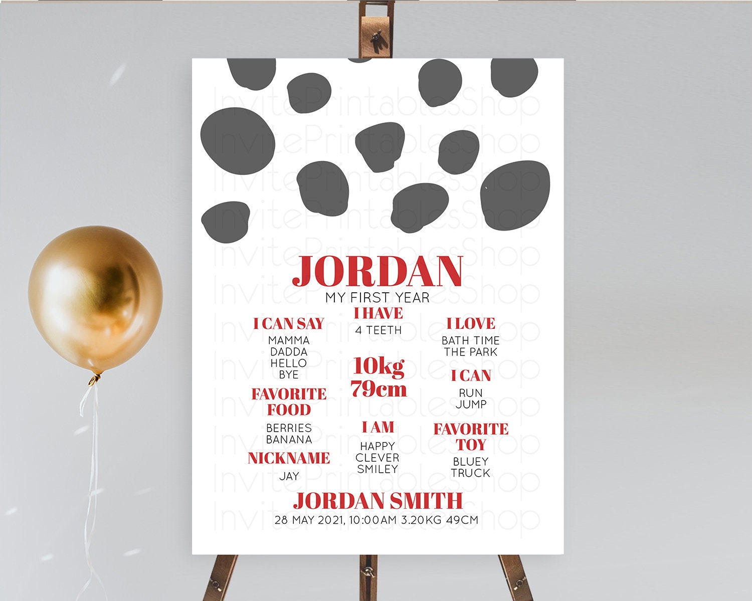 Dalmatian First Birthday Milestone Board Dalmatian Milestone Poster Dalmatian Red Black Spots Milestone 1st Birthday Welcome Sign D10738