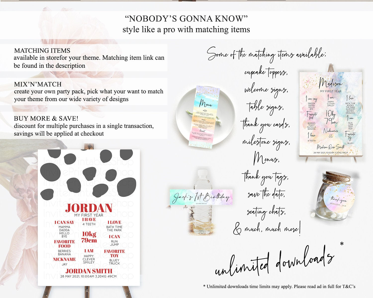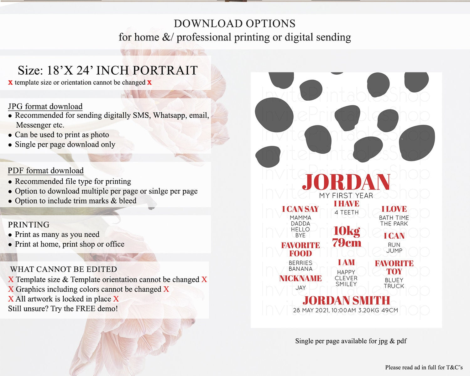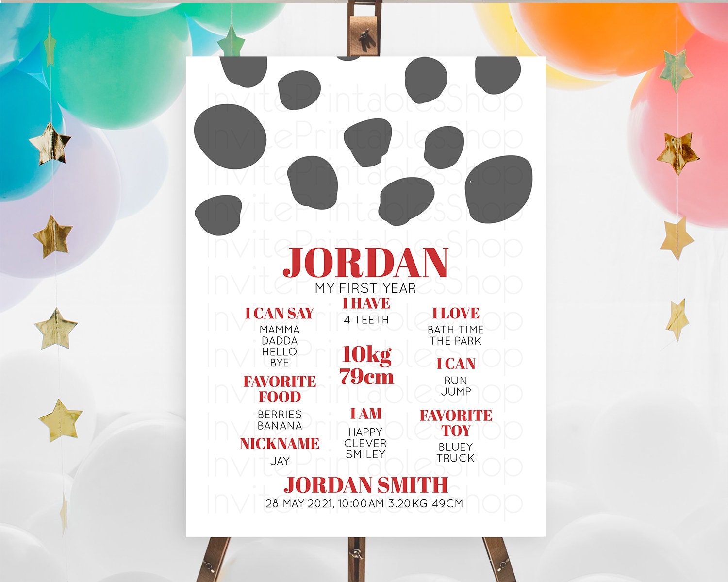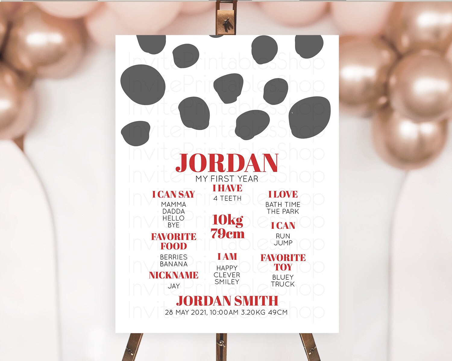 Dalmatian First Birthday Milestone Board Dalmatian Milestone Poster Dalmatian Red Black Spots Milestone 1st Birthday Welcome Sign D10738
