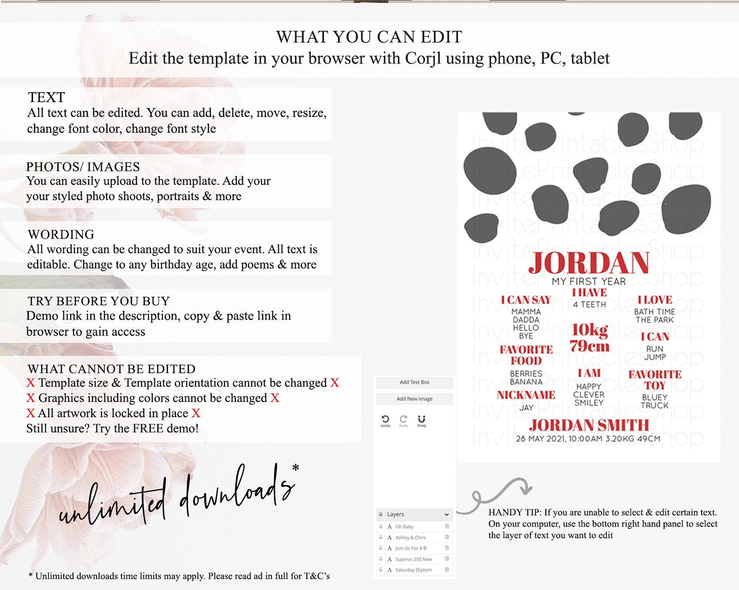 • After purchase, Corjl emails your editing link. Allow up to 15 minutes for delivery.