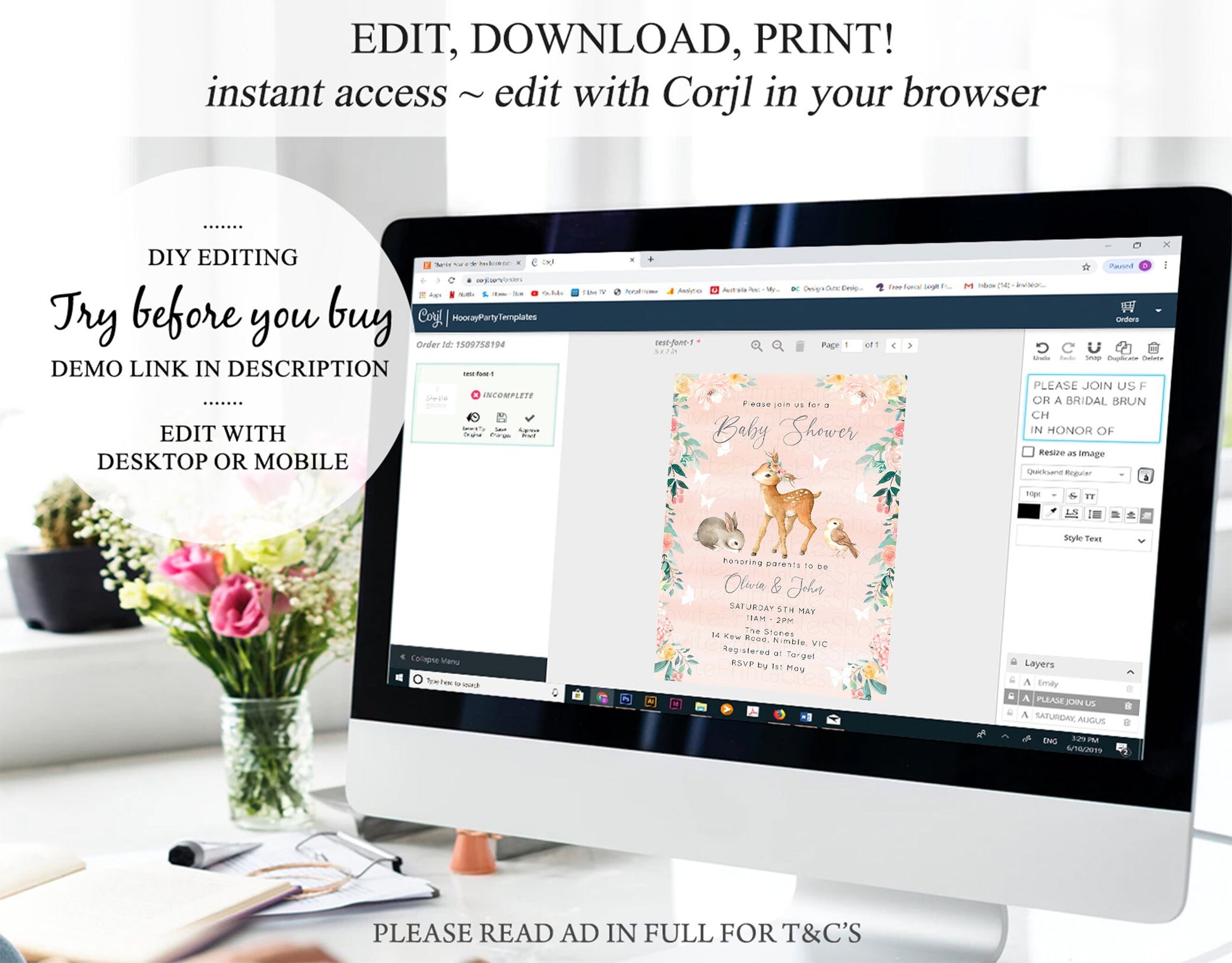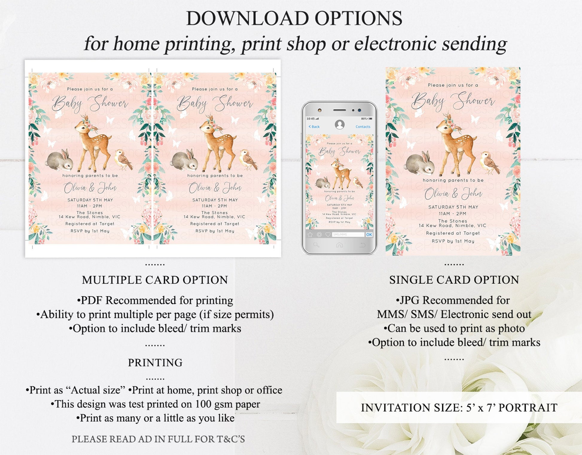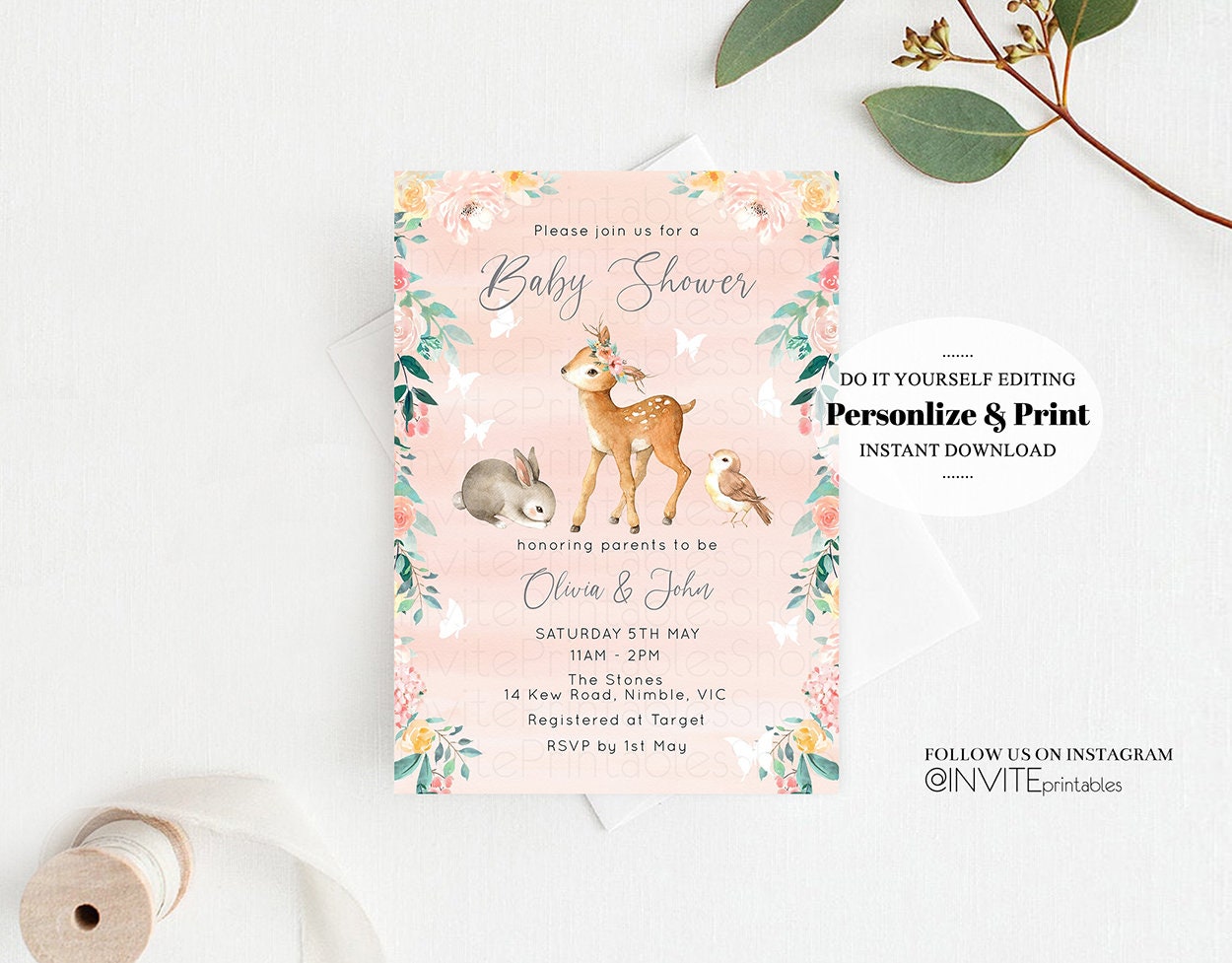 Deer Baby Shower Invite Forest Fawn Baby Shower Invite Deer Invite Bambi Invite Pastel Floral Invite Enchanted Forest Invite