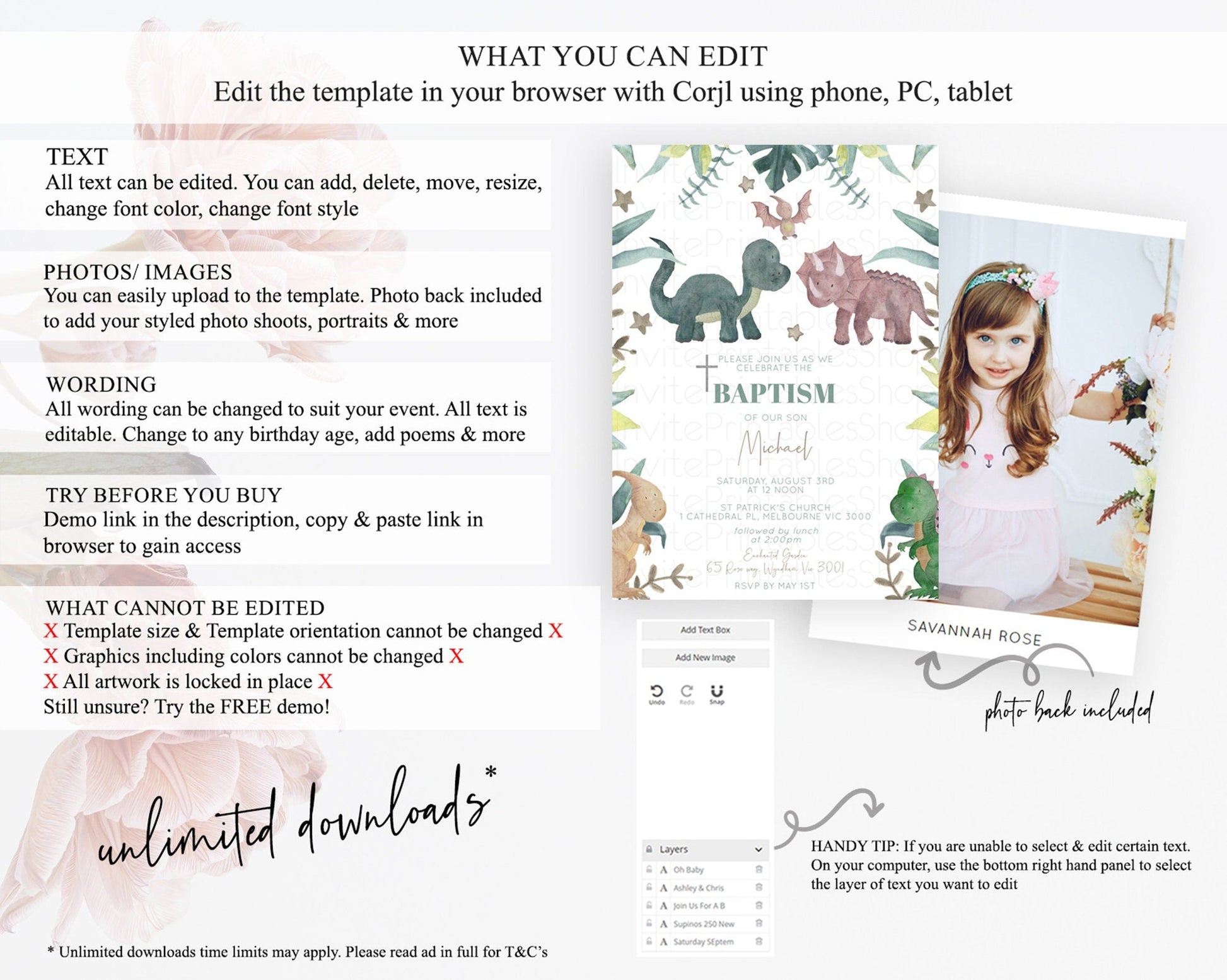 Dinosaur Baptism Invitation Dinosaur Volcano Baptism 1st Birthday Invitation Watercolor T-Rex Raptor Jurassic Christening Invitation D10597
