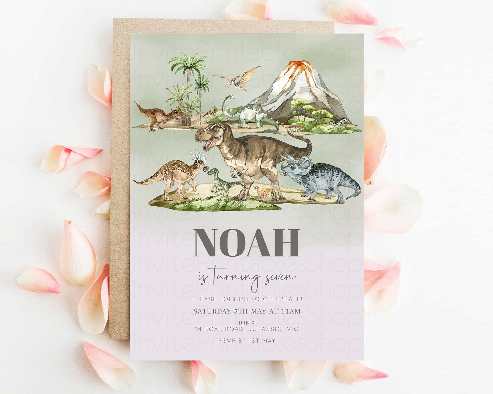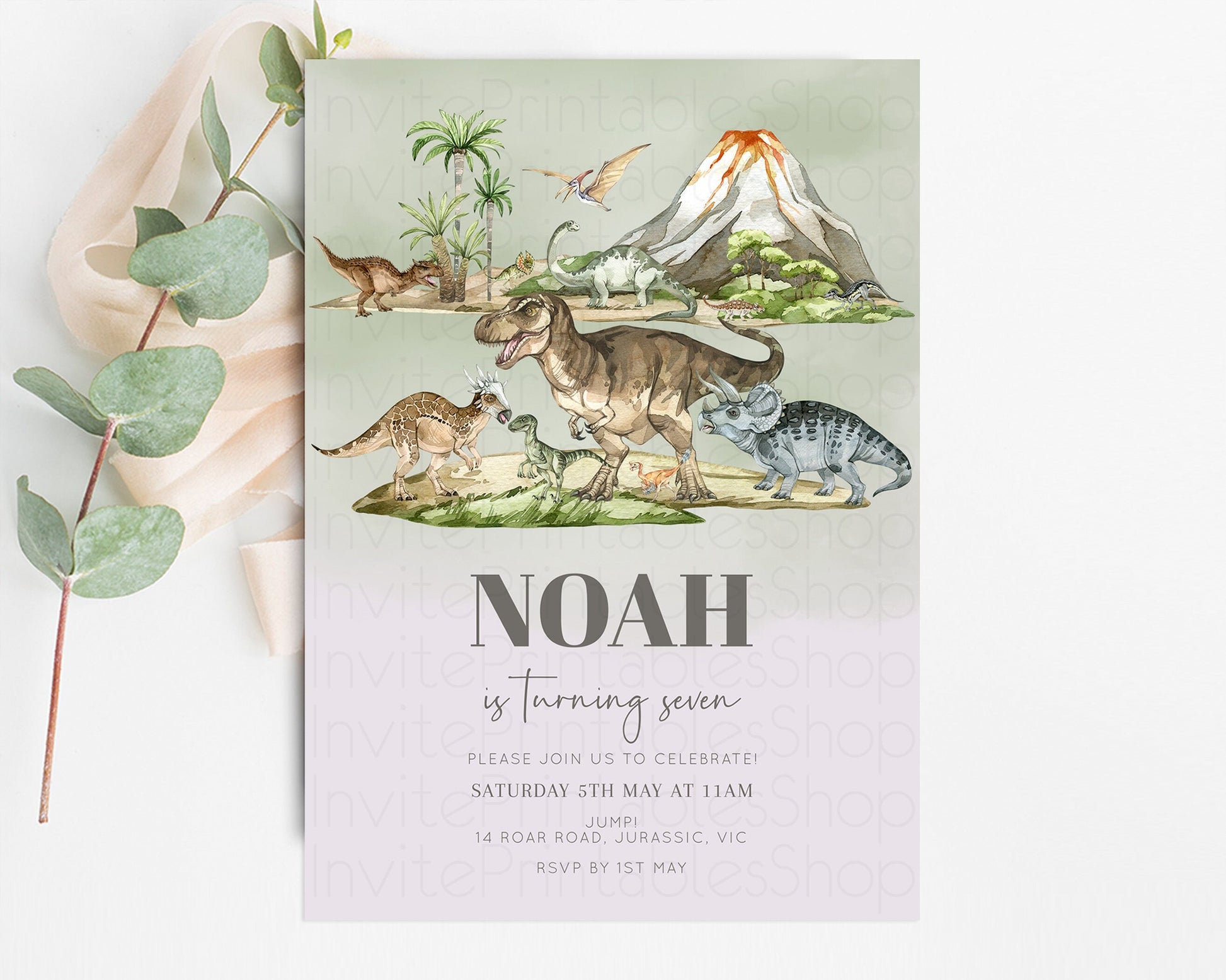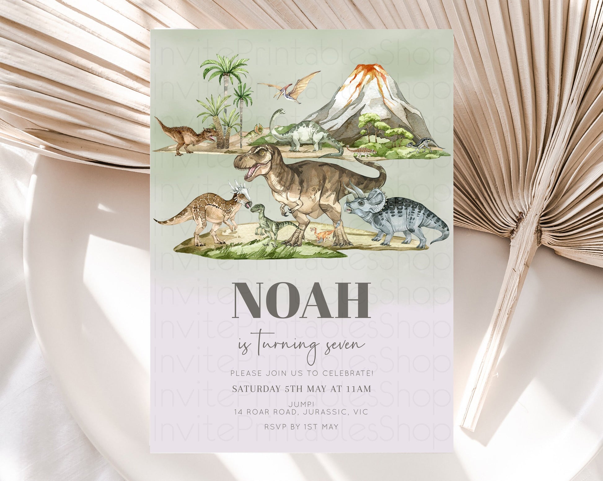 Dinosaur Birthday Invitation Dino Birthday Invitation Watercolor Dinosaur Earthy Volcano T-Rex Jurassic 1st 2nd 3rd 1st 2nd 3rd Birthday