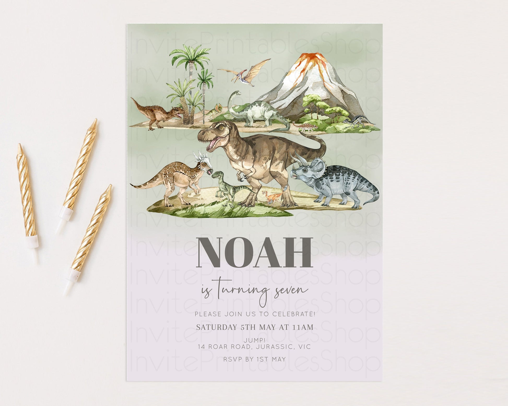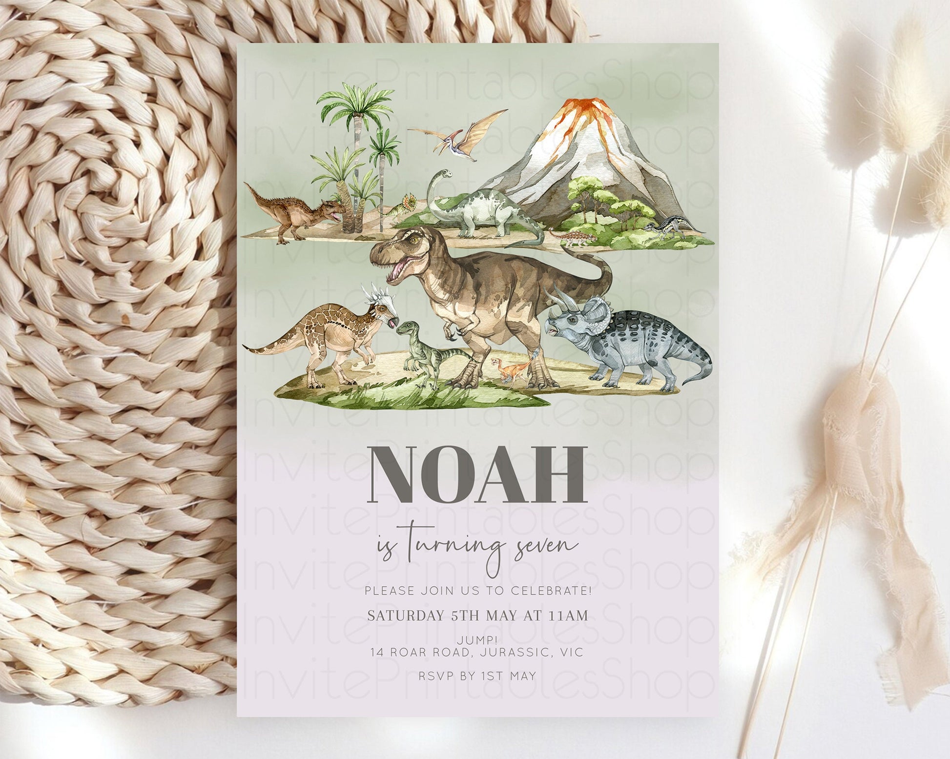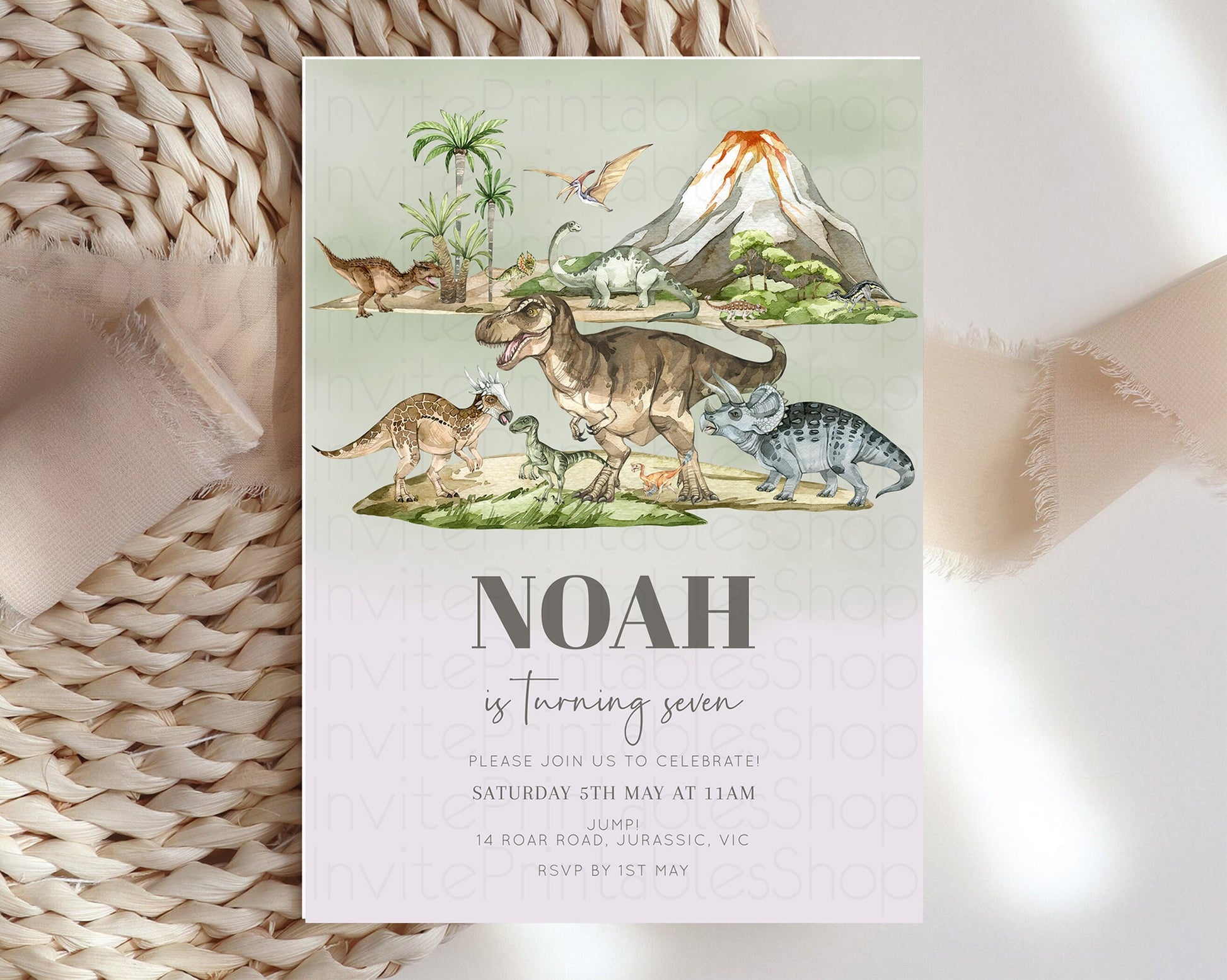 Dinosaur Birthday Invitation Dino Birthday Invitation Watercolor Dinosaur Earthy Volcano T-Rex Jurassic 1st 2nd 3rd 1st 2nd 3rd Birthday