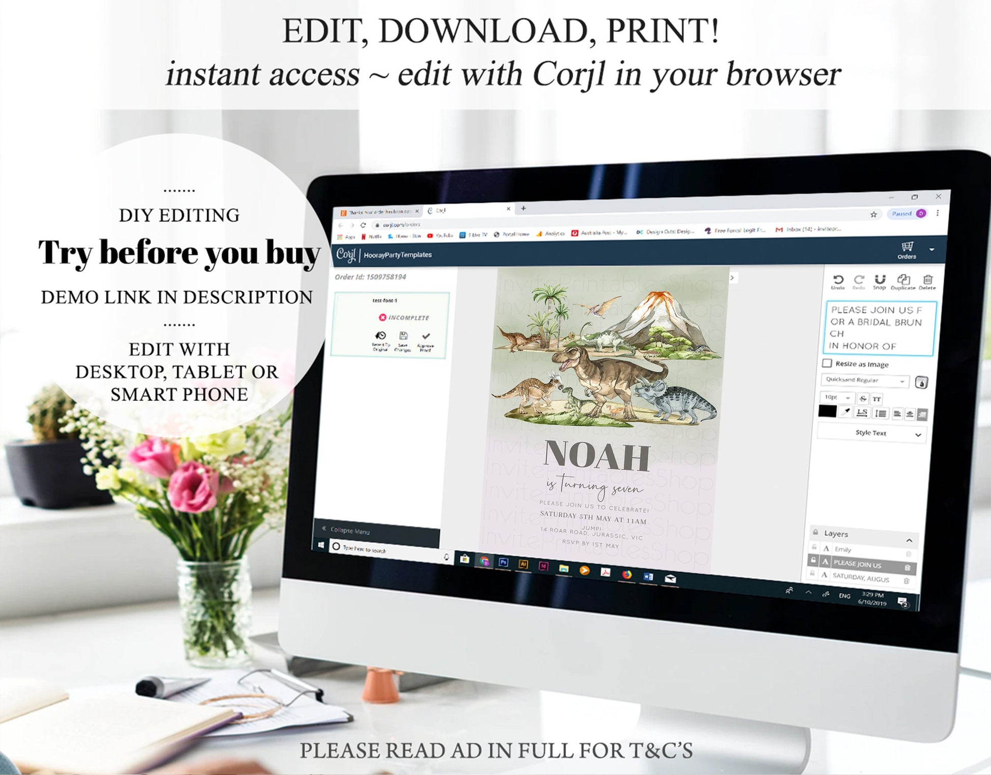 • After purchase, Corjl emails your editing link. Allow up to 15 minutes for delivery.