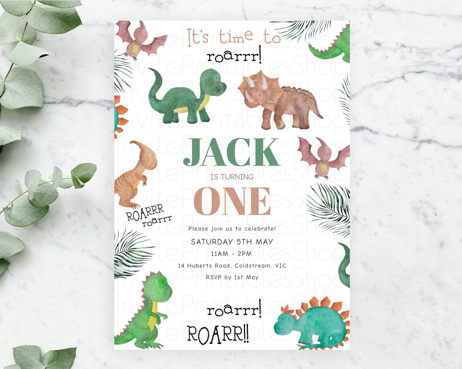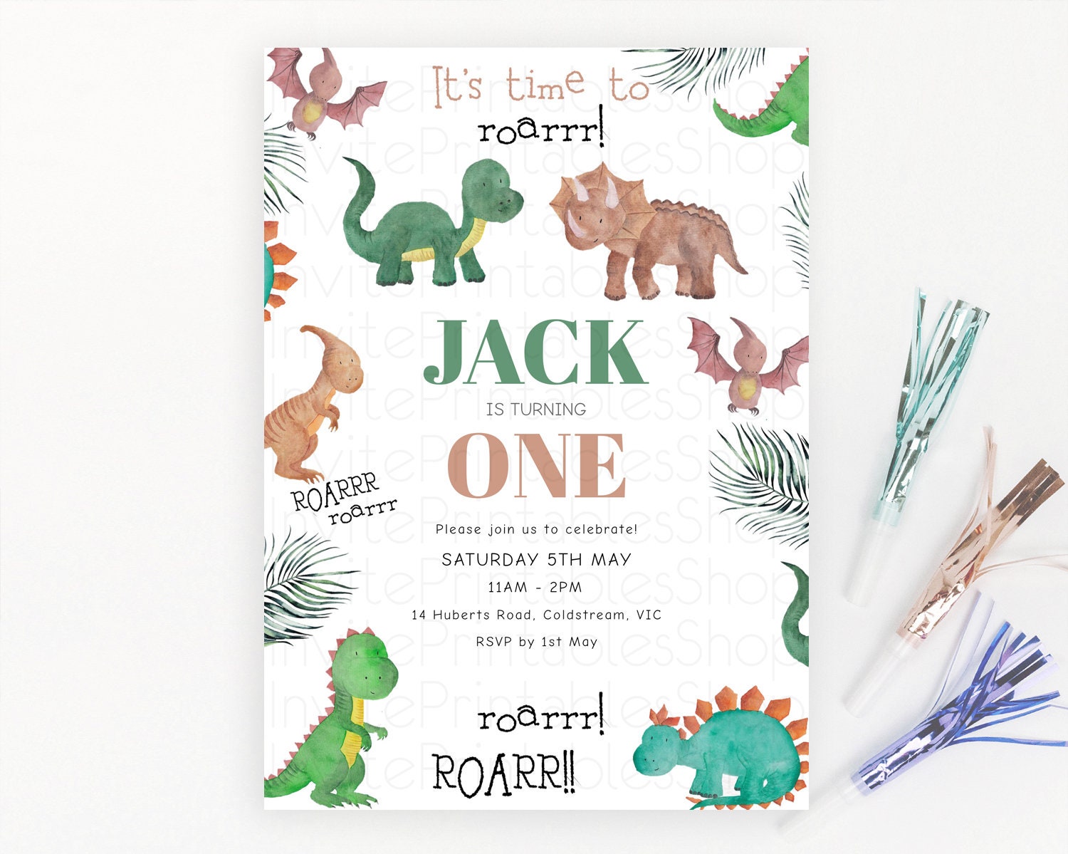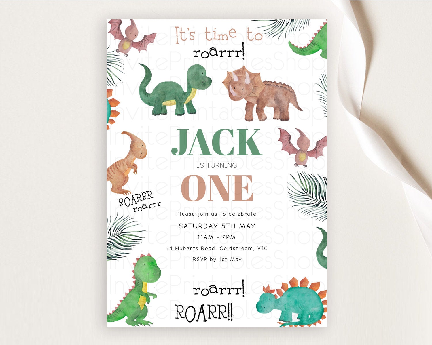 Dinosaur Birthday Invitation Dinosaur Volcano Invitation Watercolor Dinosaur Volcano T-Rex Raptor Jurassic 1st 2nd 3rd Birthday D10153