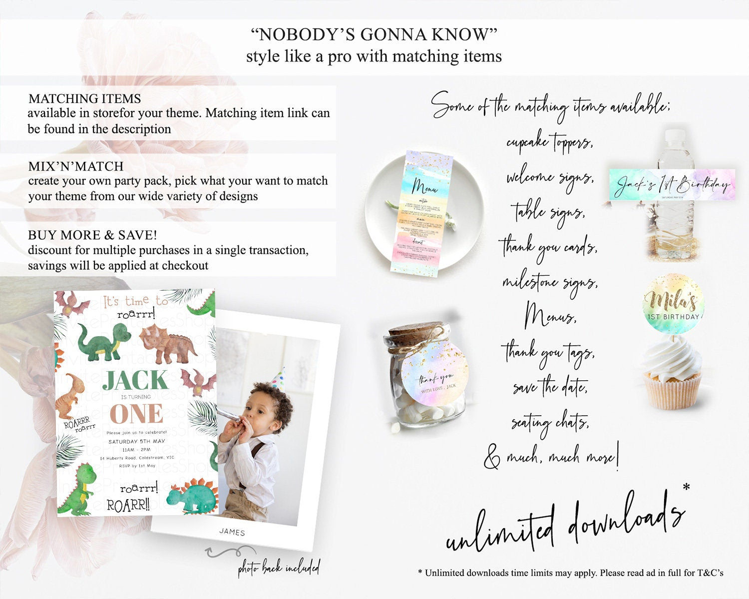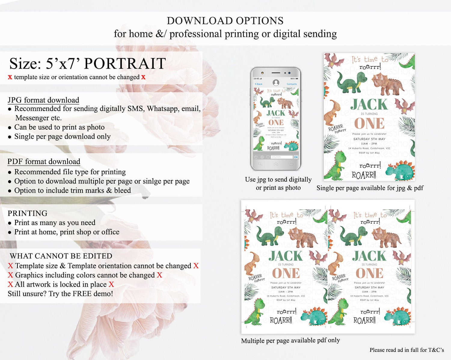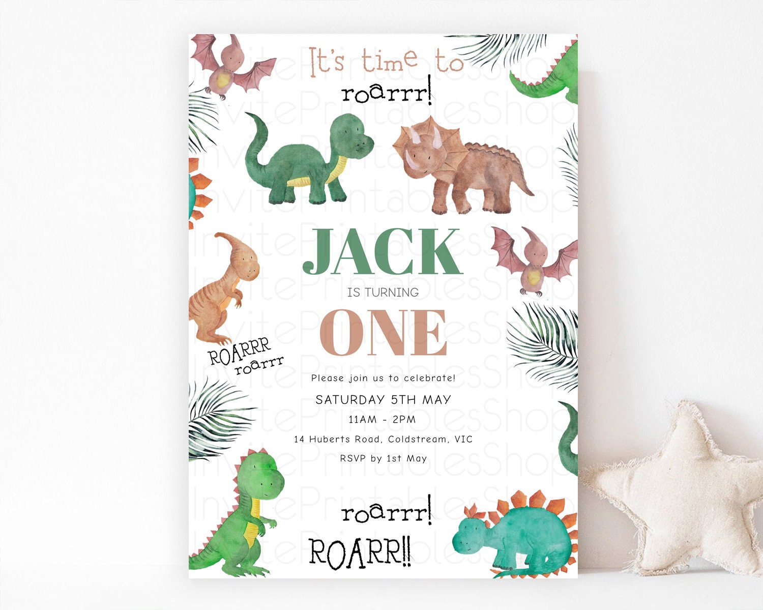 Dinosaur Birthday Invitation Dinosaur Volcano Invitation Watercolor Dinosaur Volcano T-Rex Raptor Jurassic 1st 2nd 3rd Birthday D10153