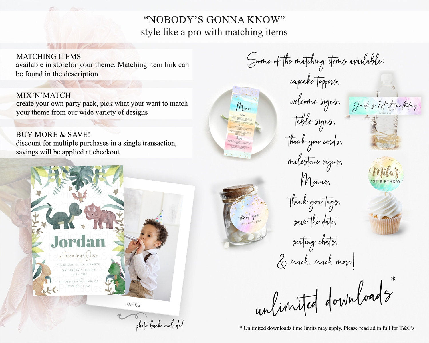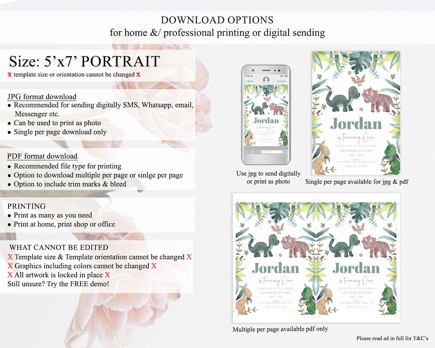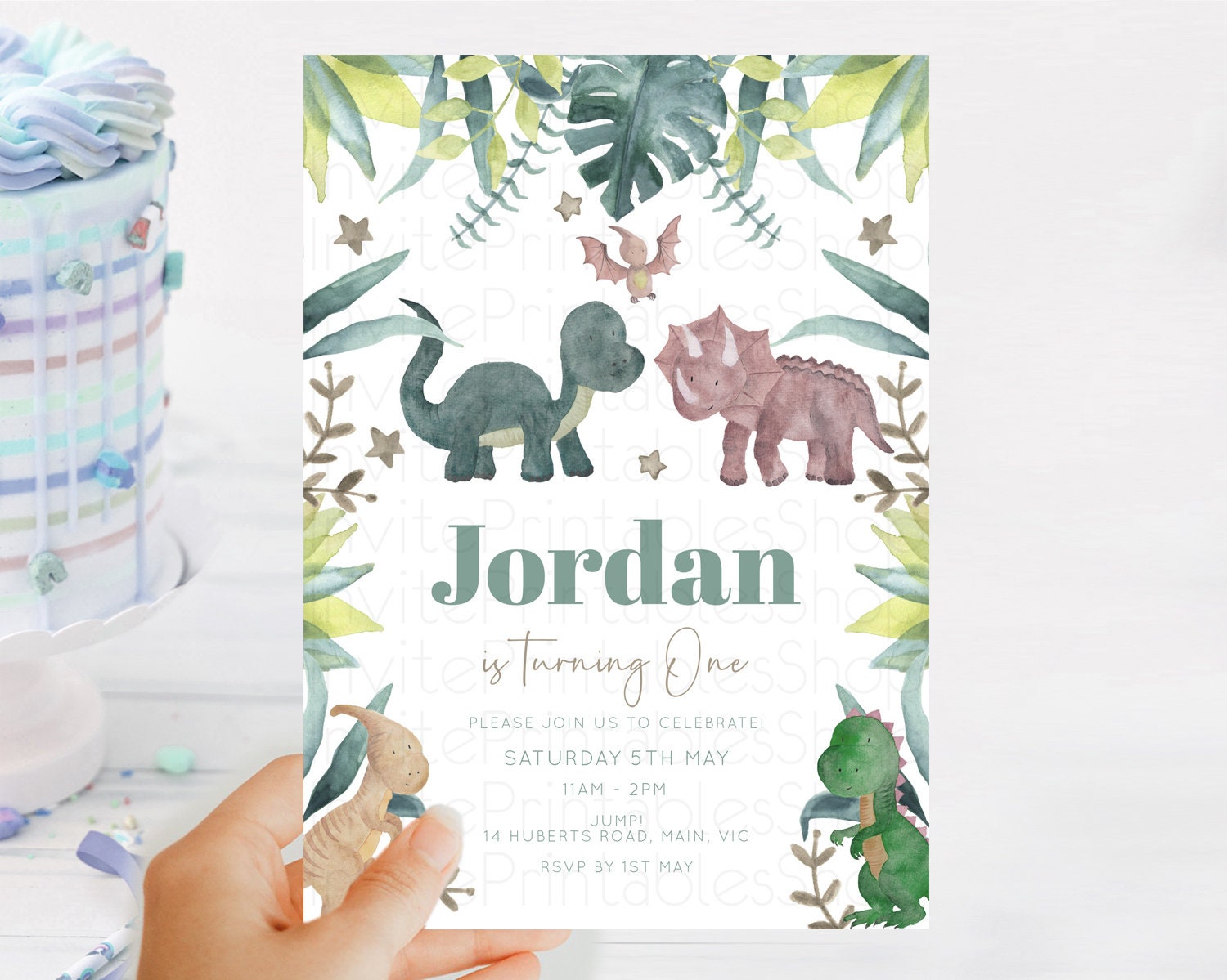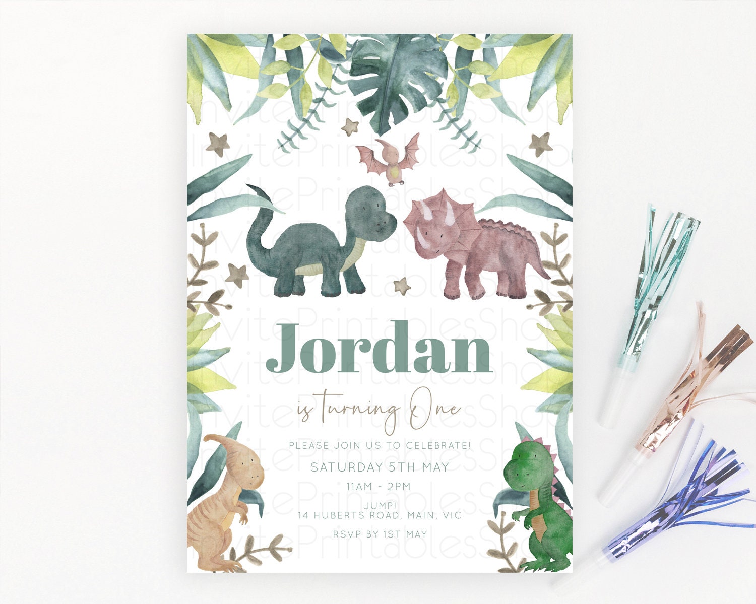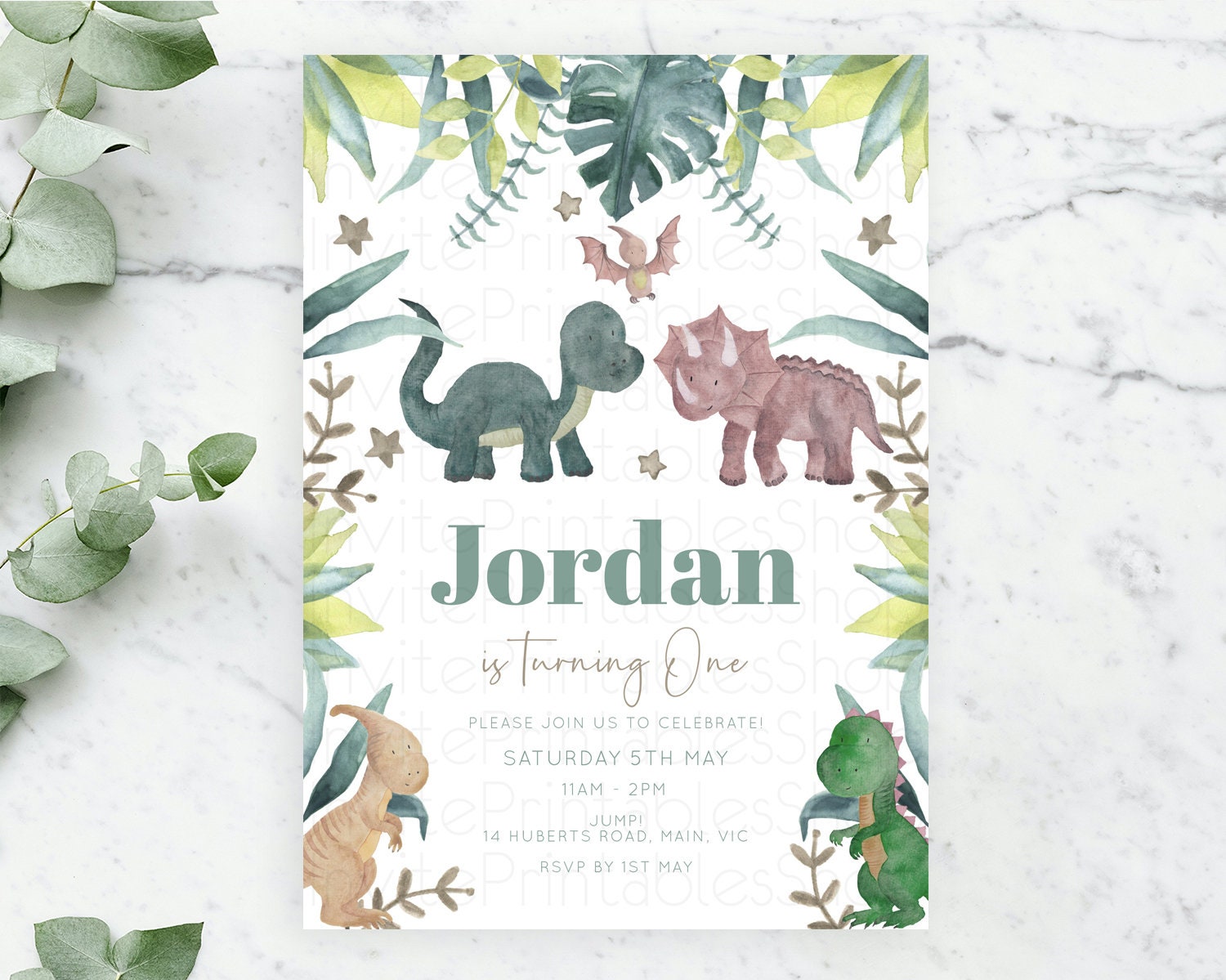 Dinosaur Birthday Invitation Dinosaur Volcano Invitation Watercolor Dinosaur Volcano T-Rex Raptor Jurassic 1st 2nd 3rd Birthday D10597