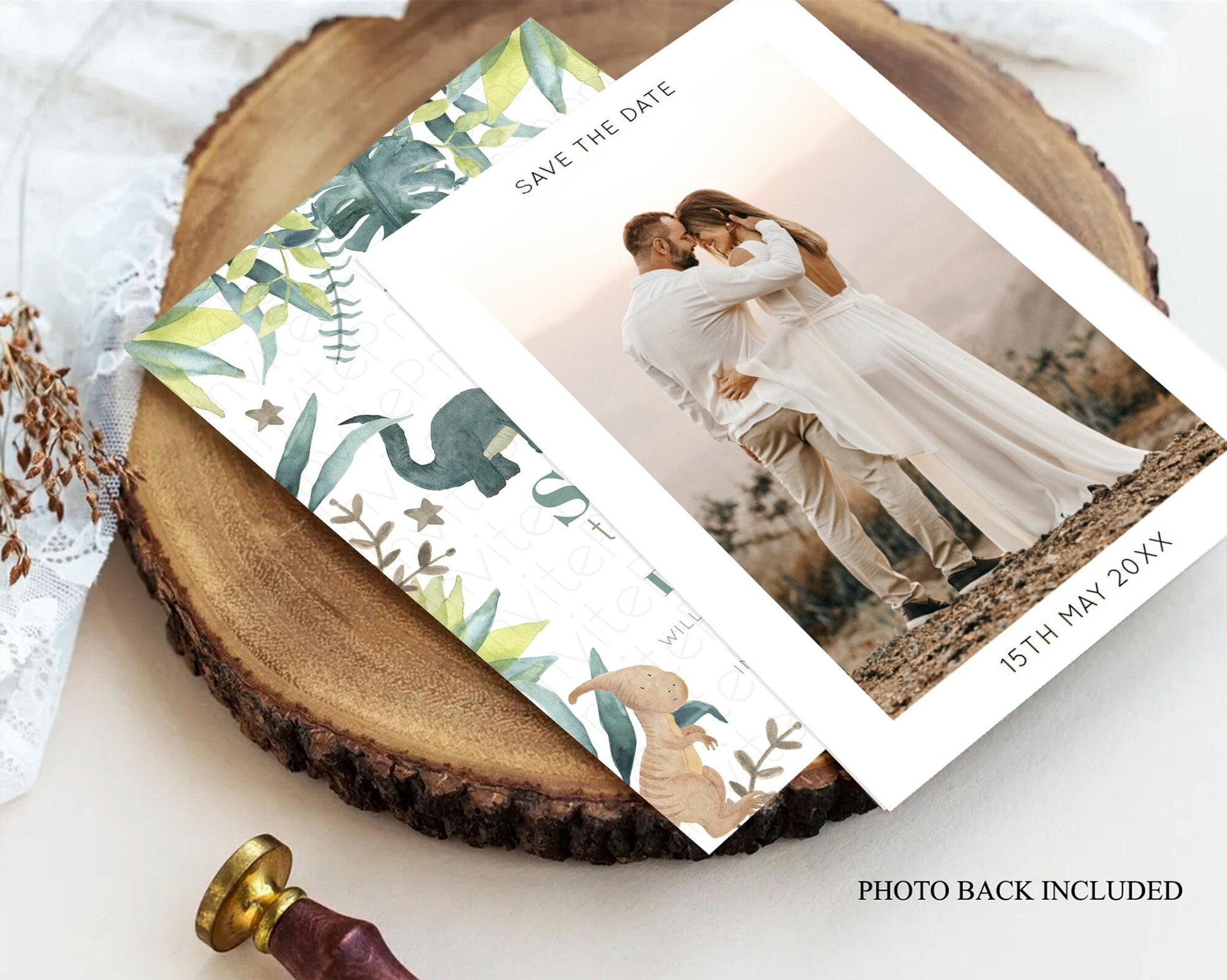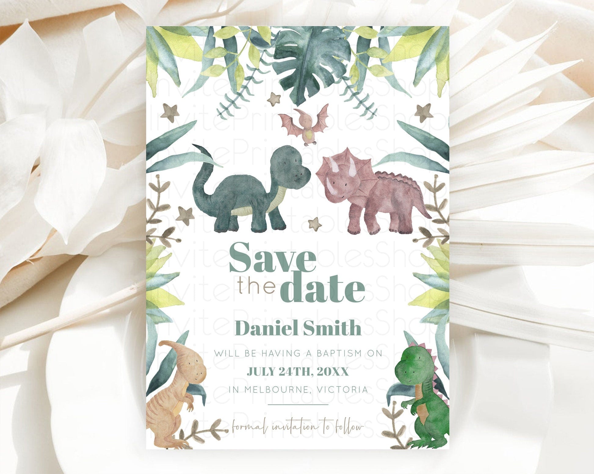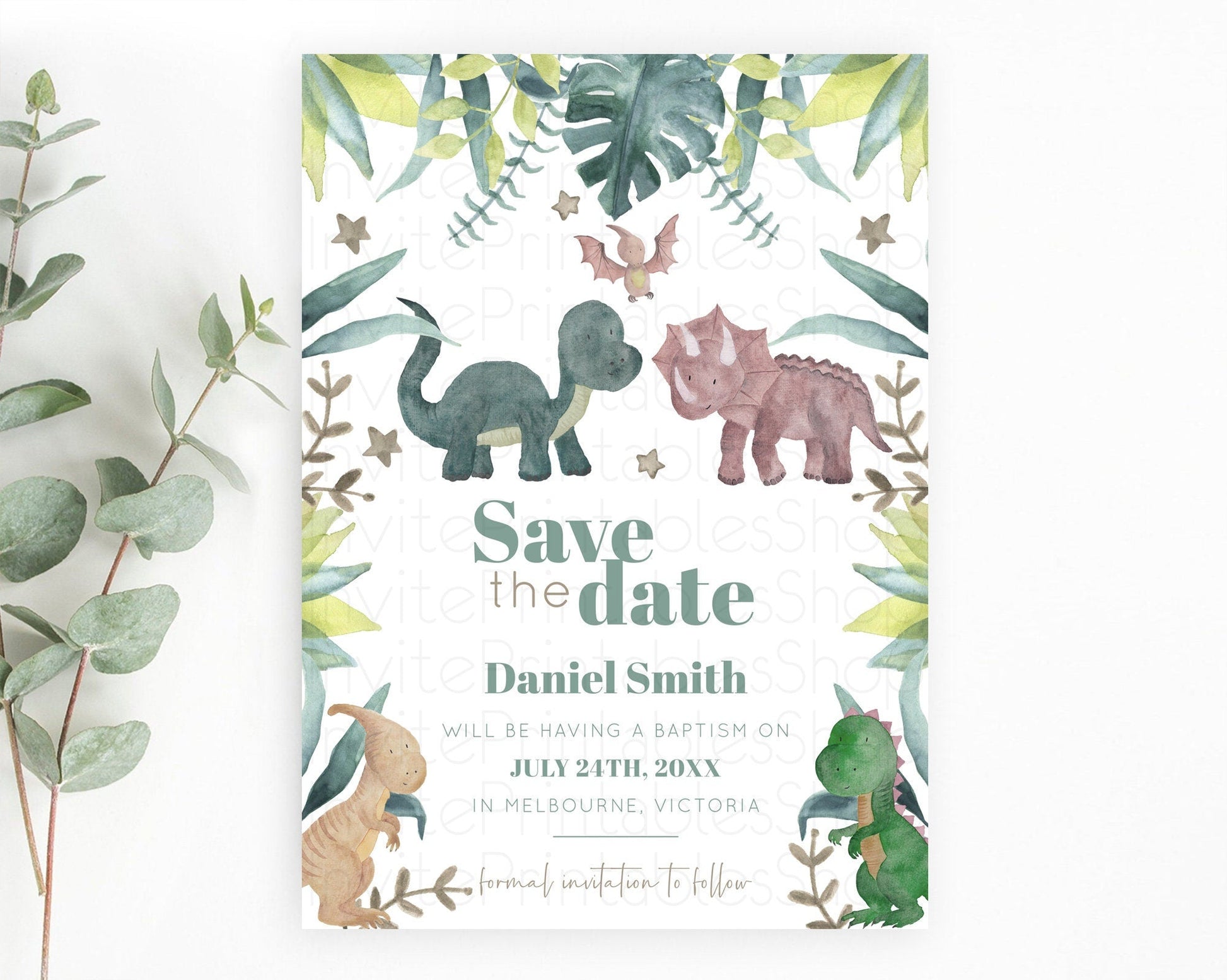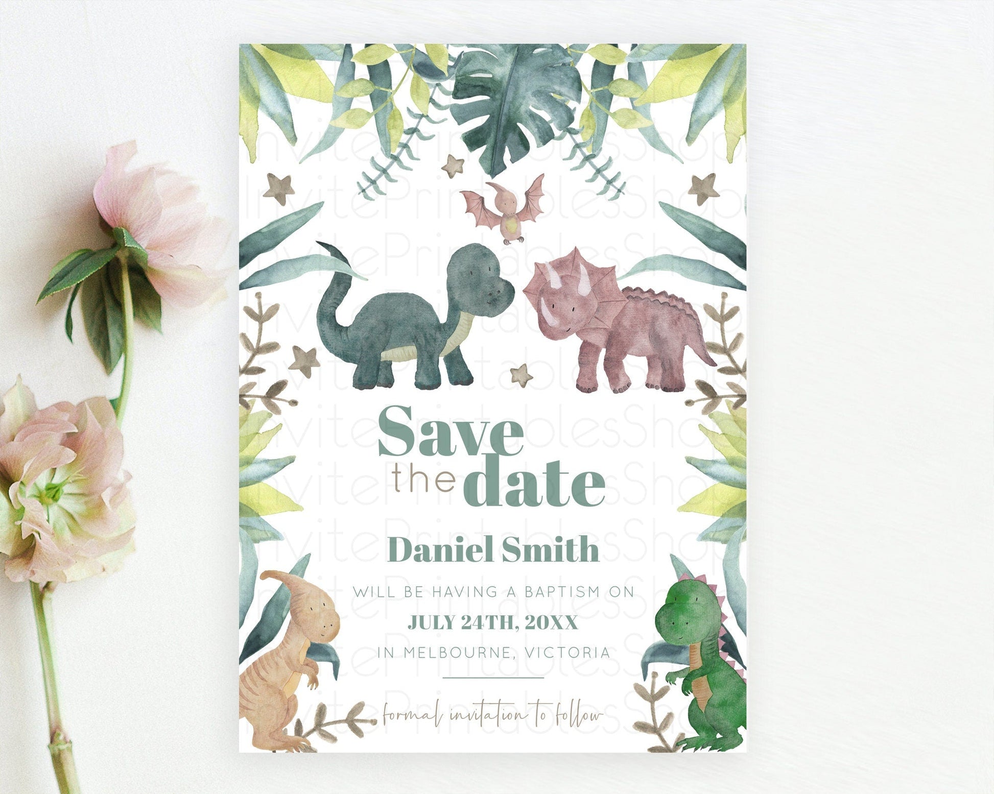 Dinosaur Save The Date Template Dinosaur Volcano Watercolor Volcano T-Rex Raptor Jurassic Party 1st Birthday Baptism Baby Shower D10597