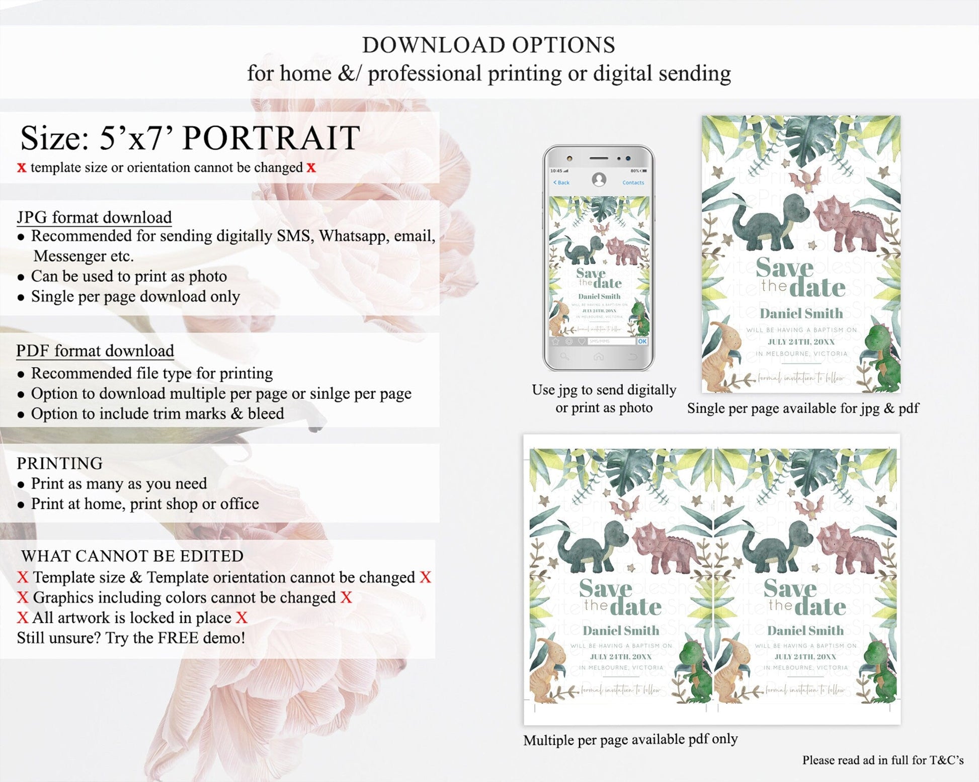 • Template size & orientation cannot be changed. Please use the demo link to confirm this product suits your needs.