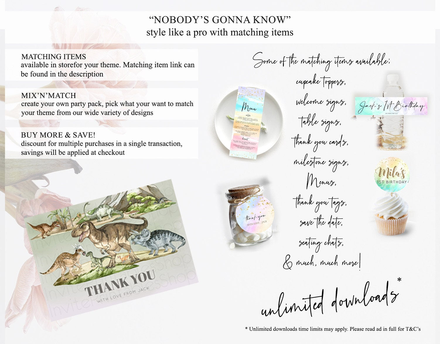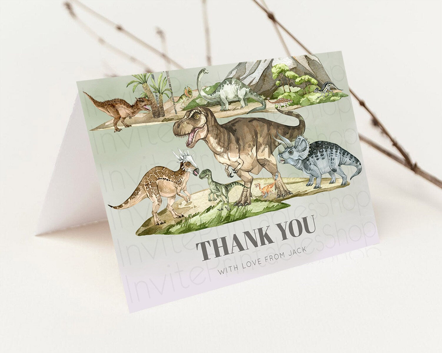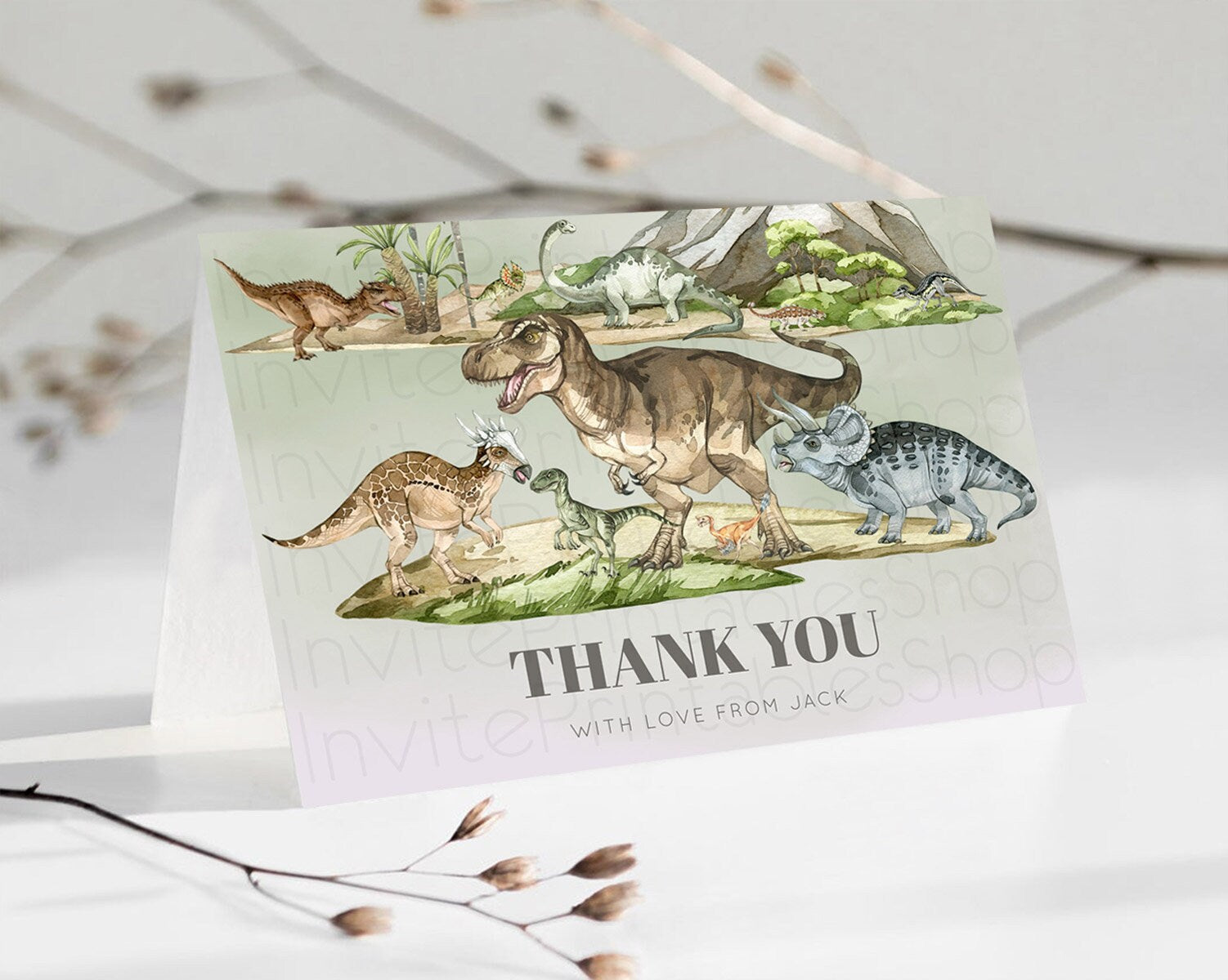 Dinosaur Thank You Dinosaur Volcano Thank You Card Dinosaur Birthday Card Watercolor Volcano T-Rex Raptor Jurassic Teacher Thank You D10671