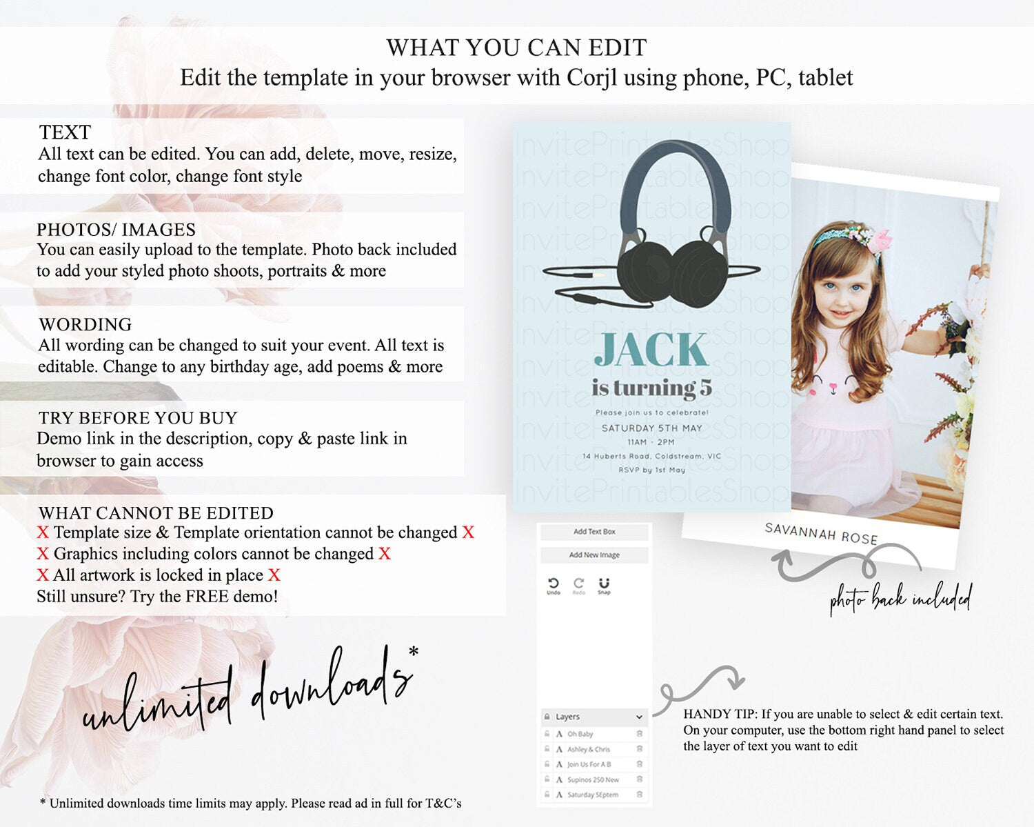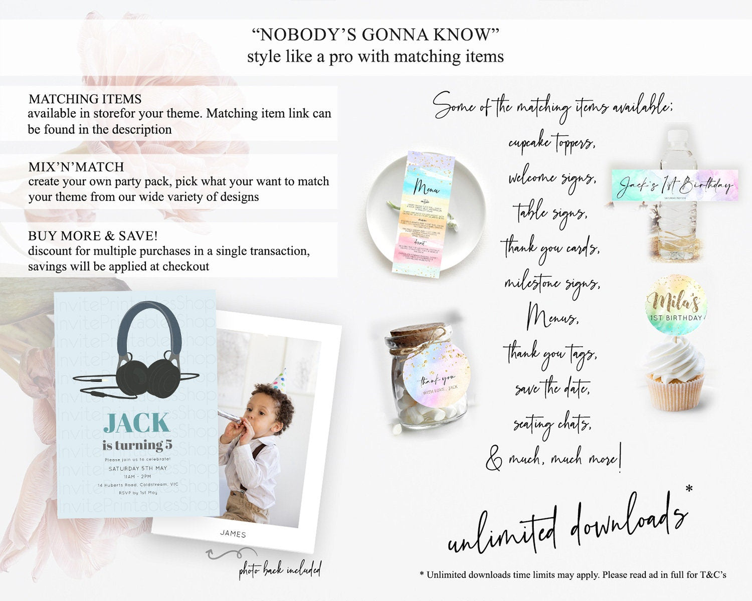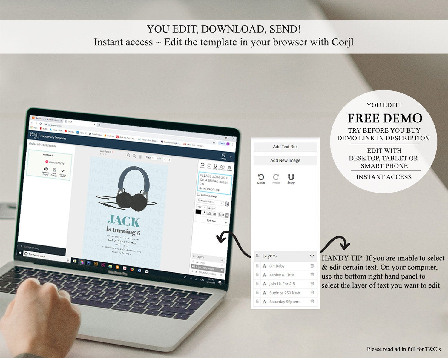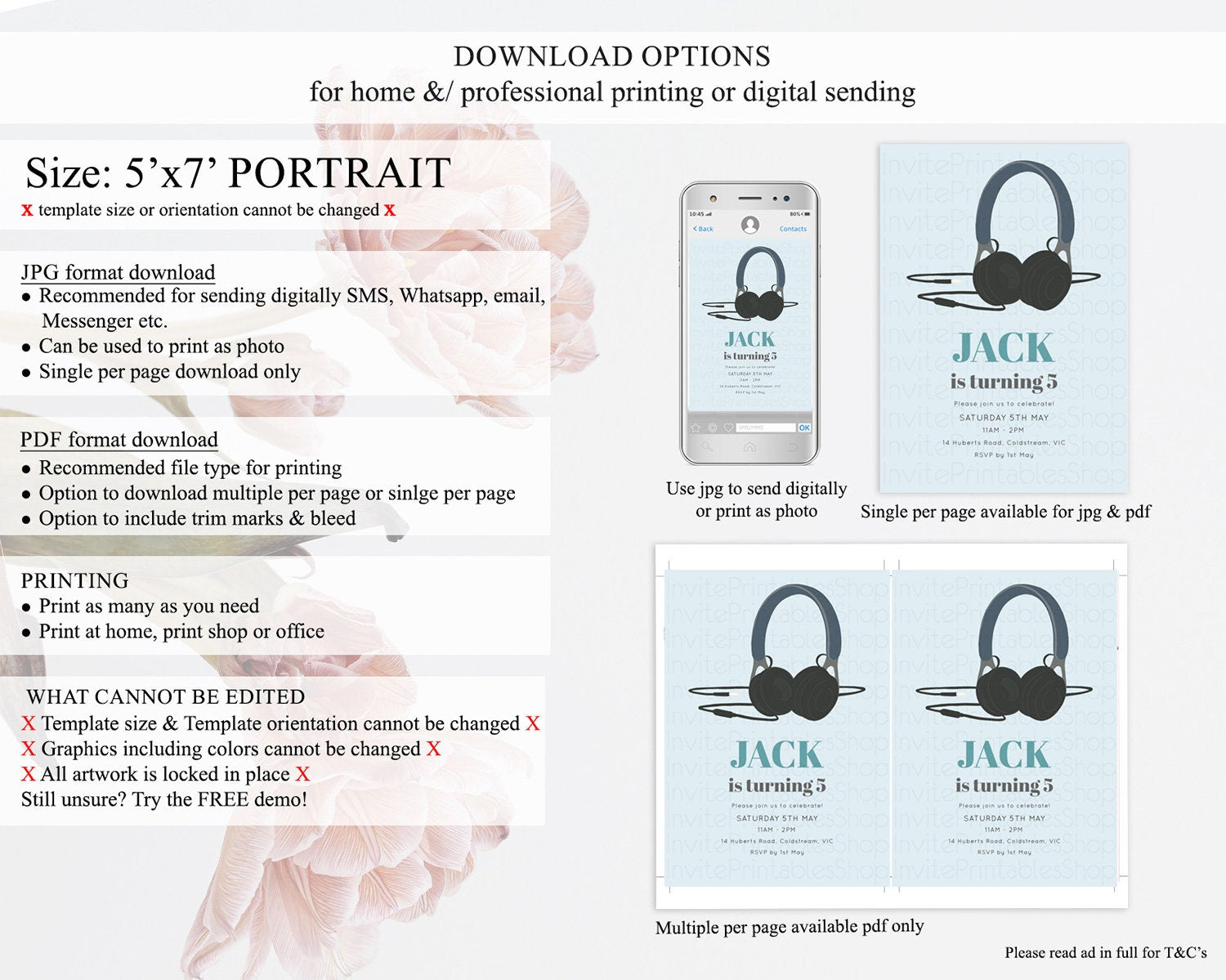 DJ Birthday Invitation DJ Headphones Birthday Invitation Zoom Party Invitation Techno House Dance Music Club Disco Electro Party D10866