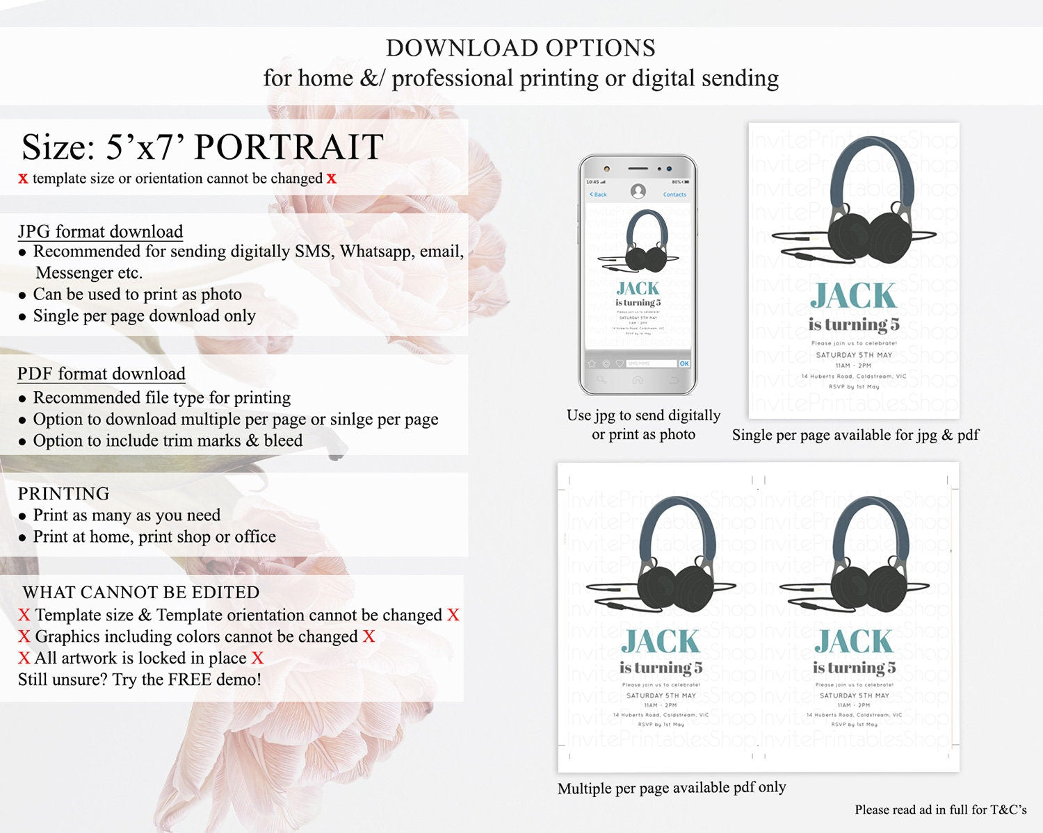 • Template size & orientation cannot be changed. Please use the demo link to confirm this product suits your needs.