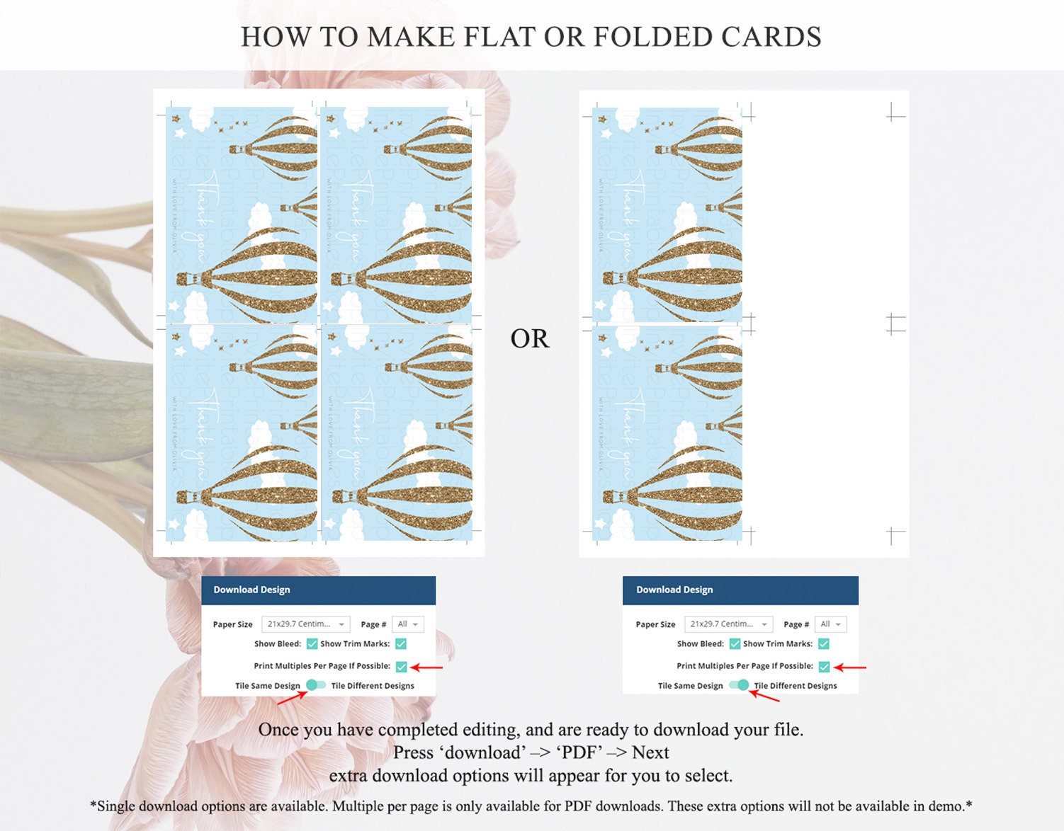 • Custom changes to artwork are not provided on existing templates.