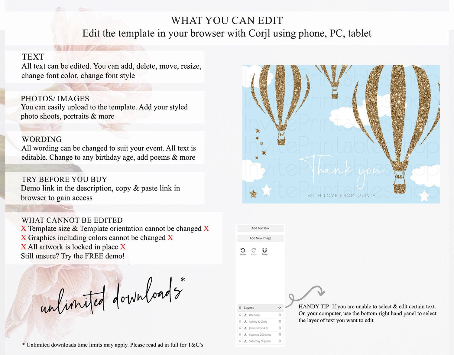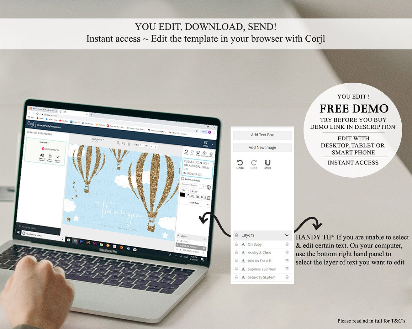 • After purchase, Corjl emails your editing link. Allow up to 15 minutes for delivery.