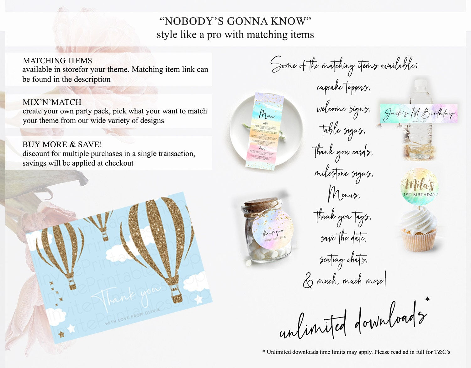 • Content shown in your gallery images is the source of truth for what’s included.