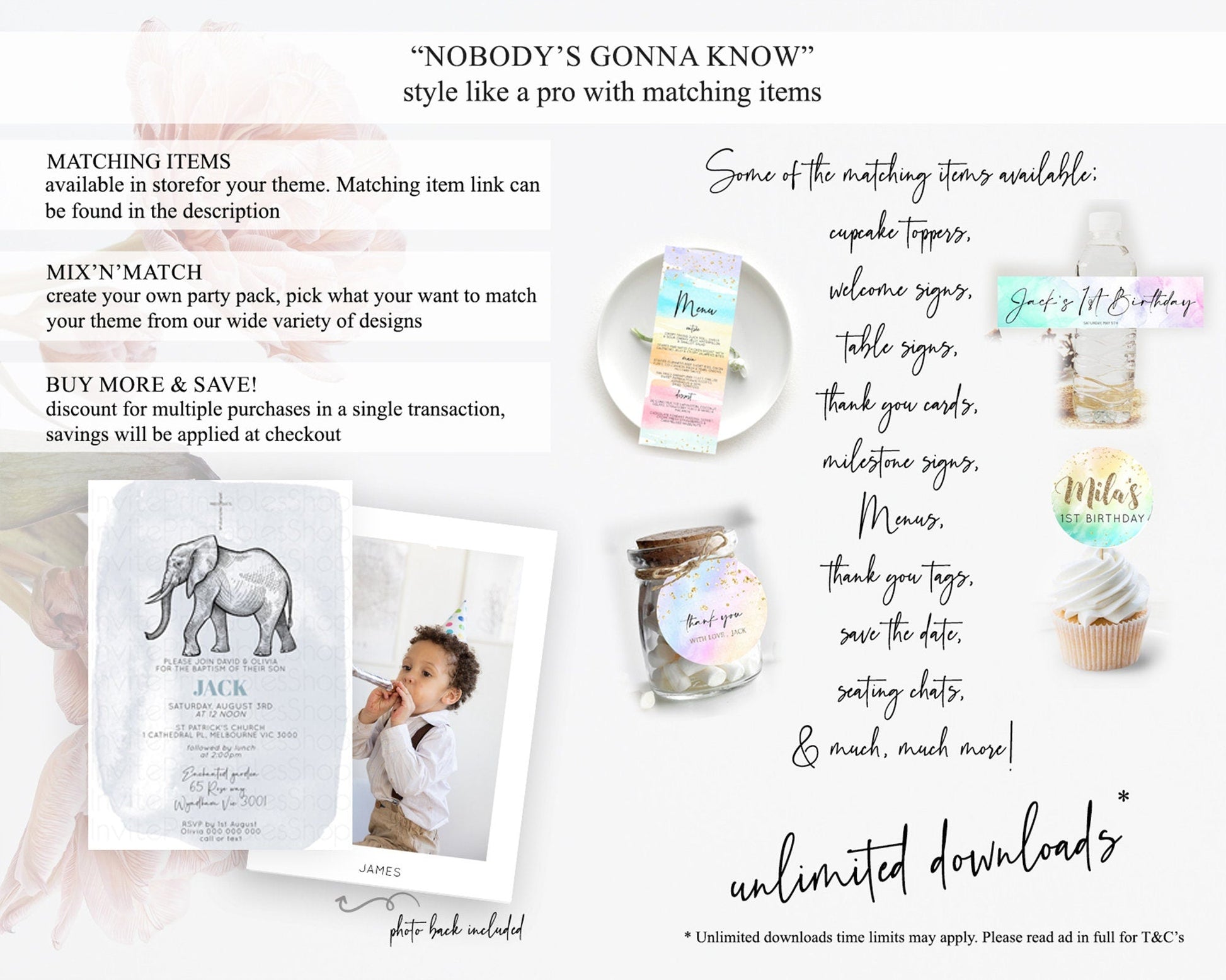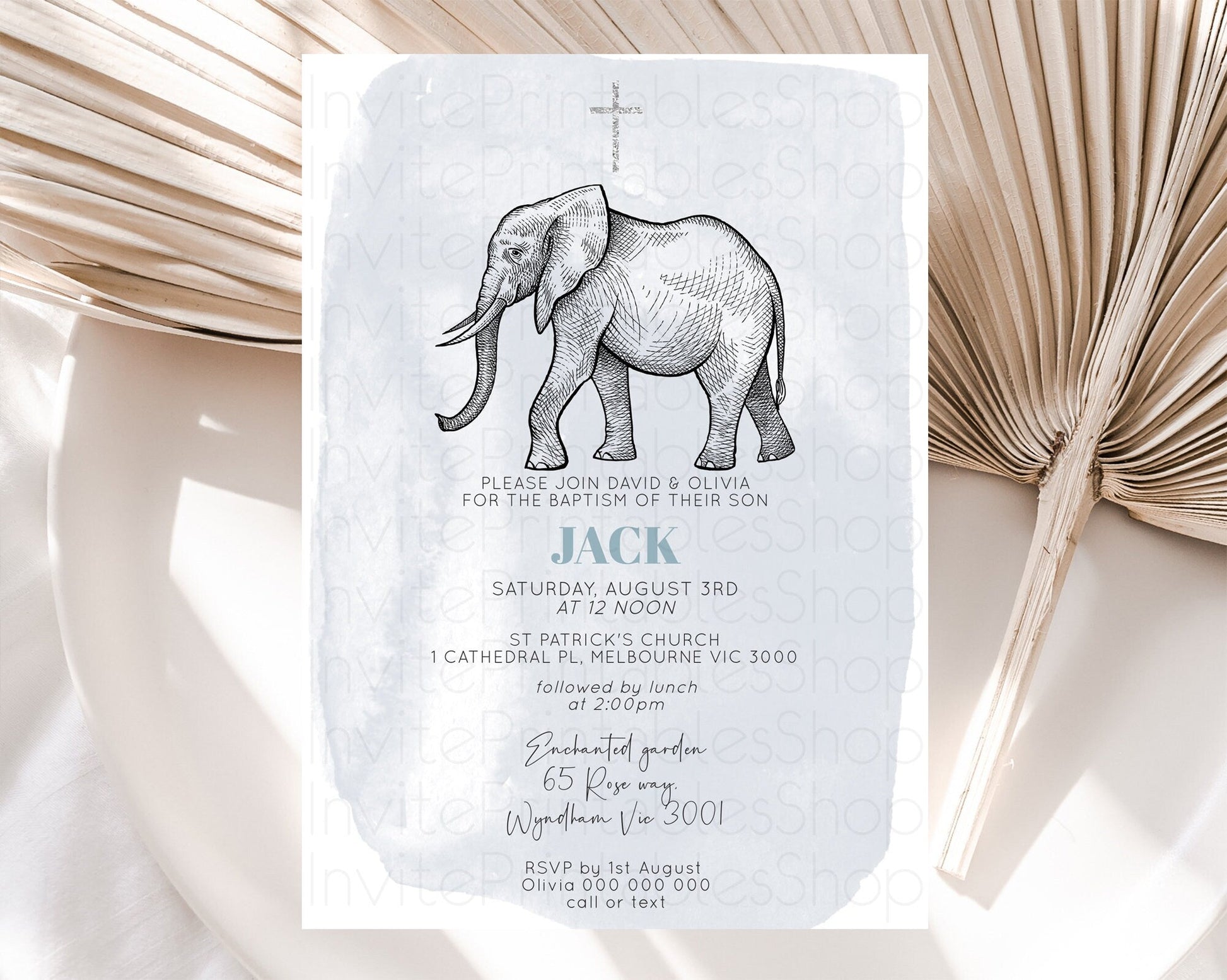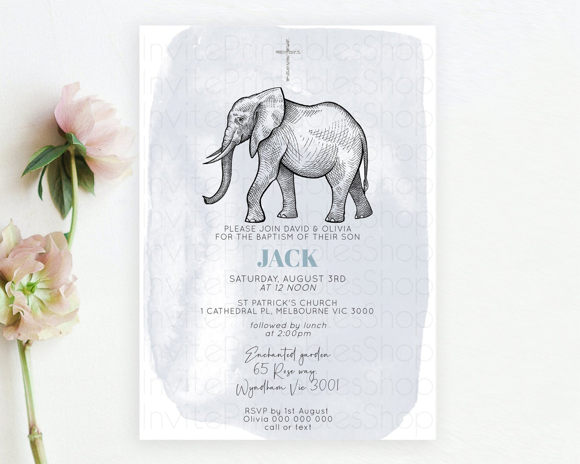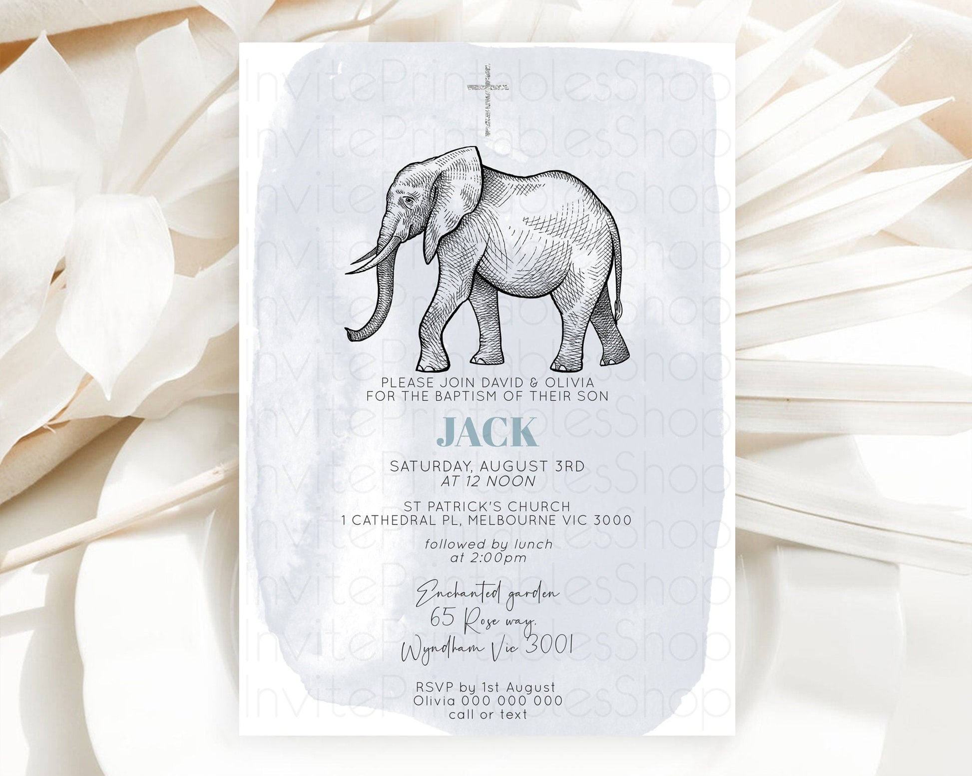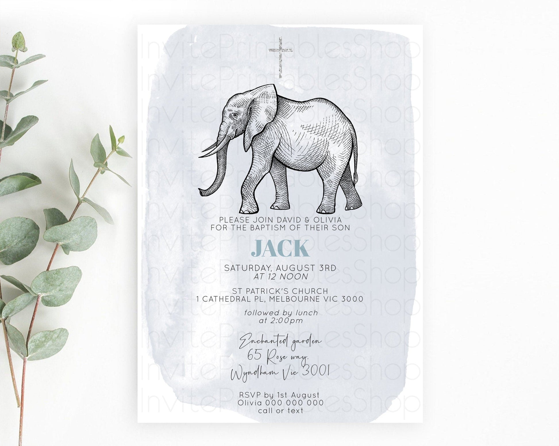 Elephant Baptism Invitation Elephant Baptism 1st Birthday Invitation Safari Christening Invitation TWO Wild ONE Jungle Adventure Zoo D10811