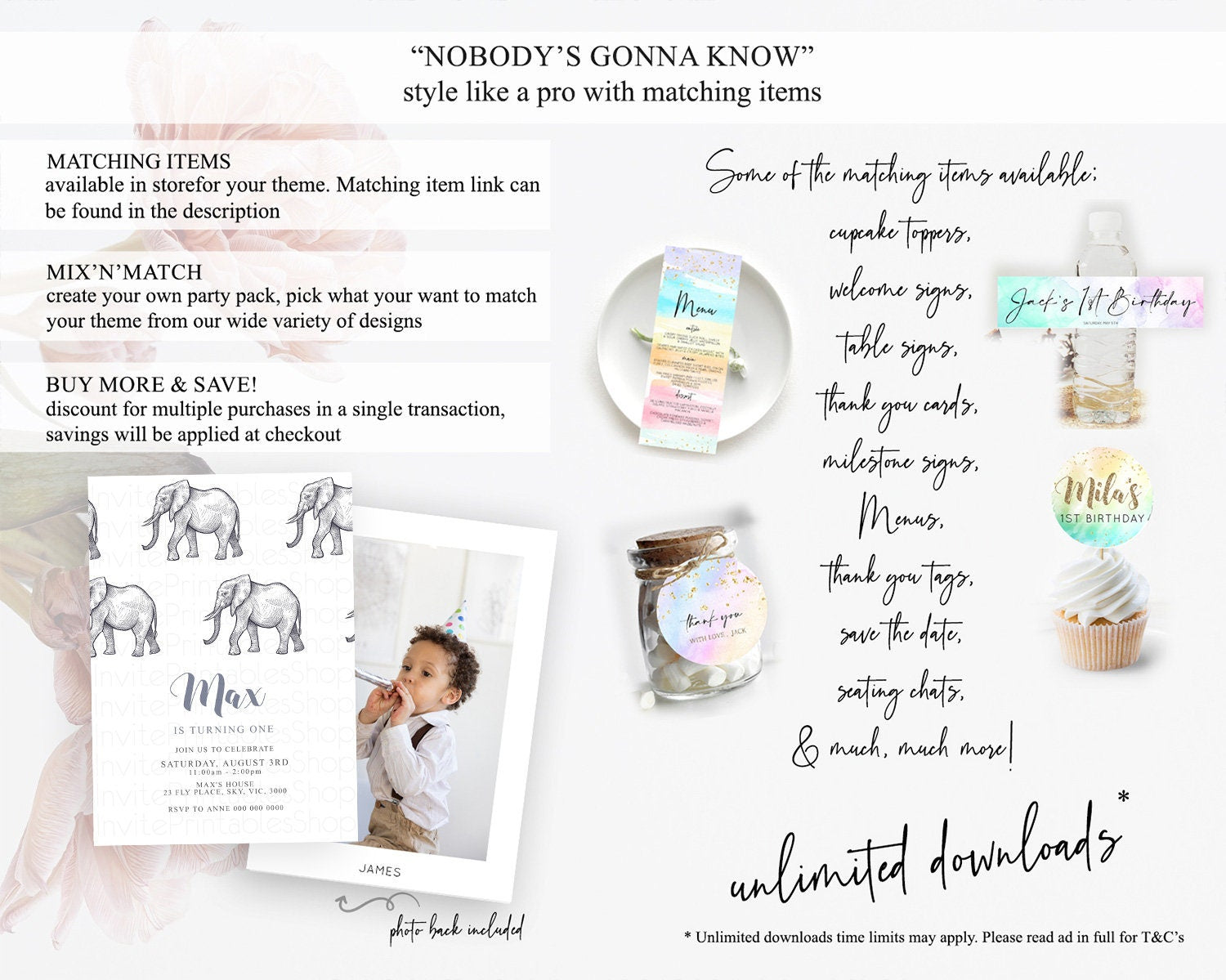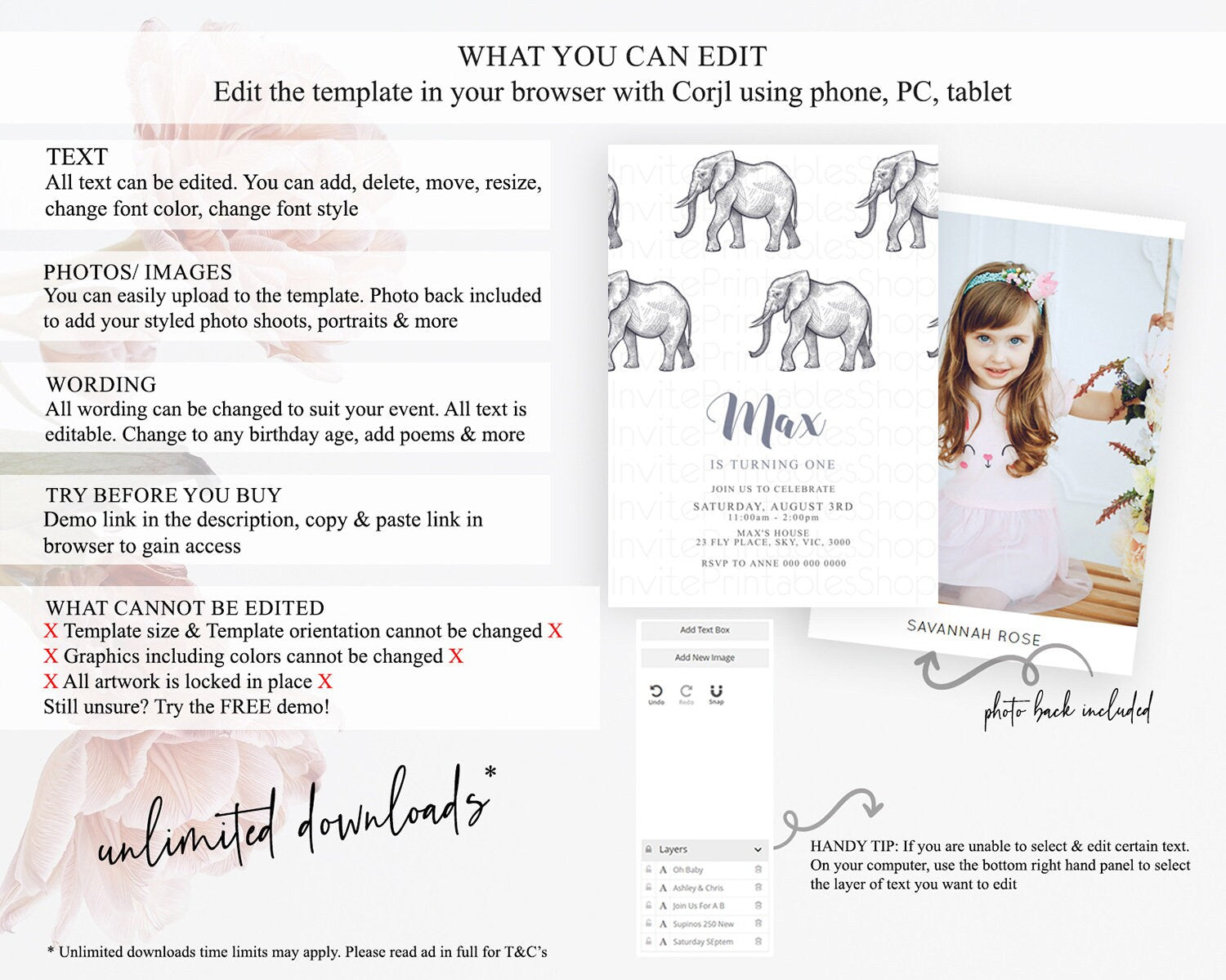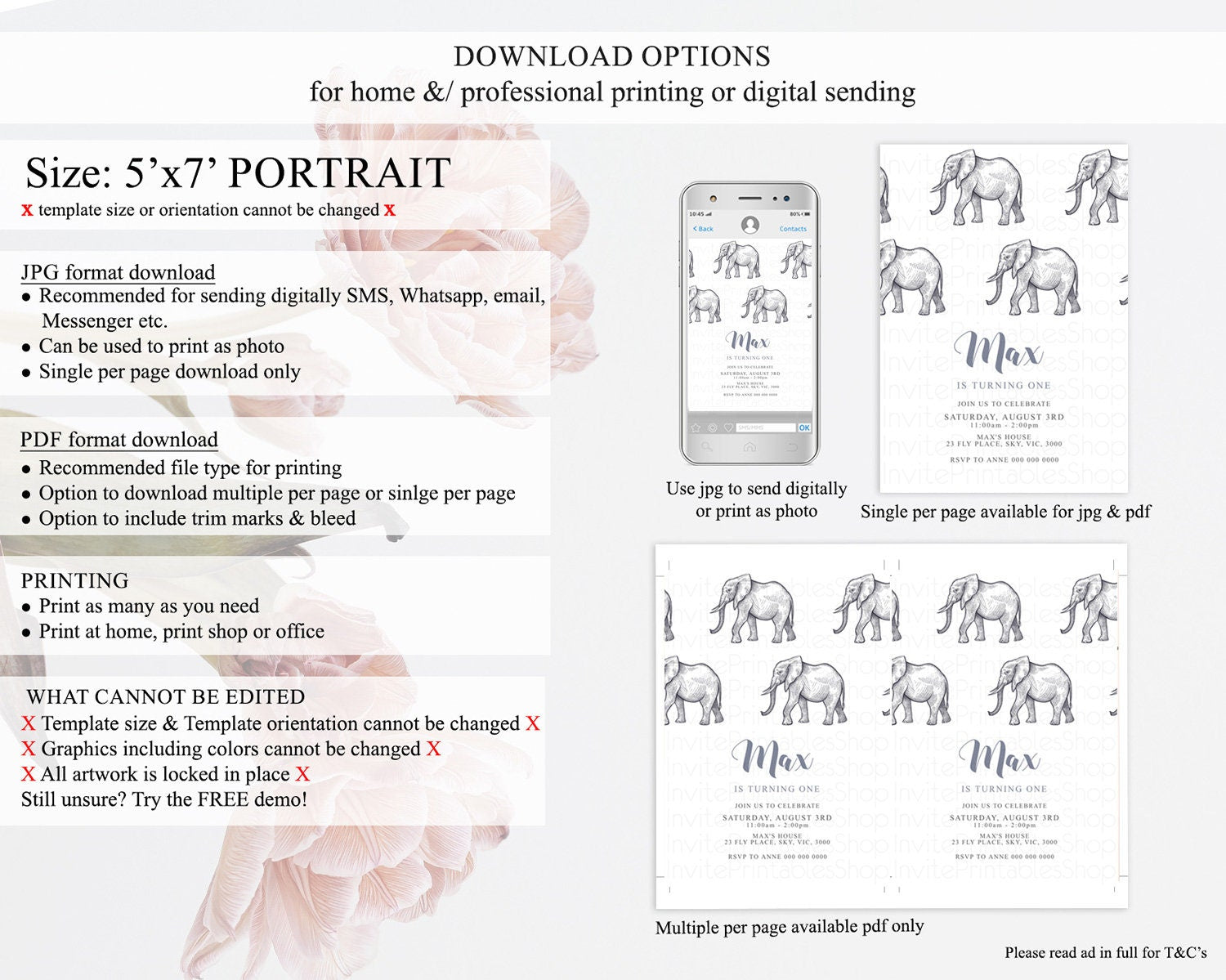 Elephant Birthday Invitation Elephant Invitation Elephant Birthday Safari Elephant Party TWO Wild ONE Jungle Adventure Zoo Birthday D10248