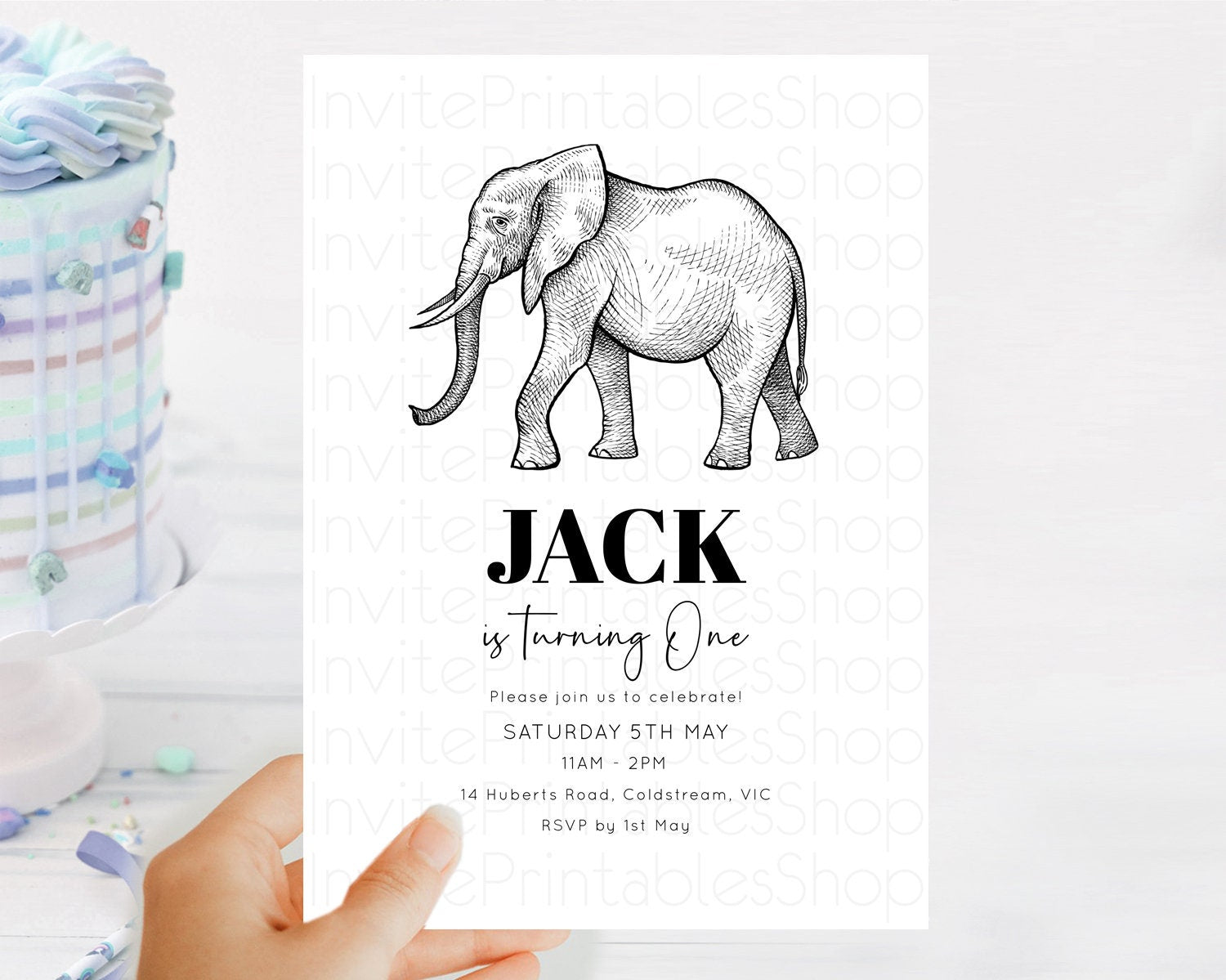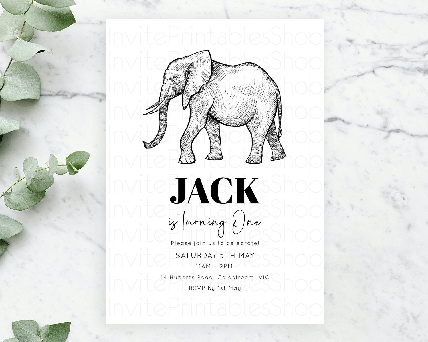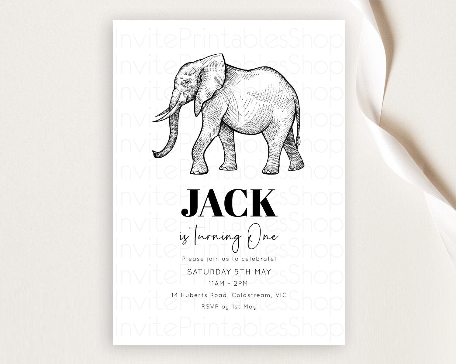 Elephant Birthday Invitation Elephant Invitation Elephant Birthday Safari Elephant Party TWO Wild ONE Jungle Adventure Zoo Birthday D10248