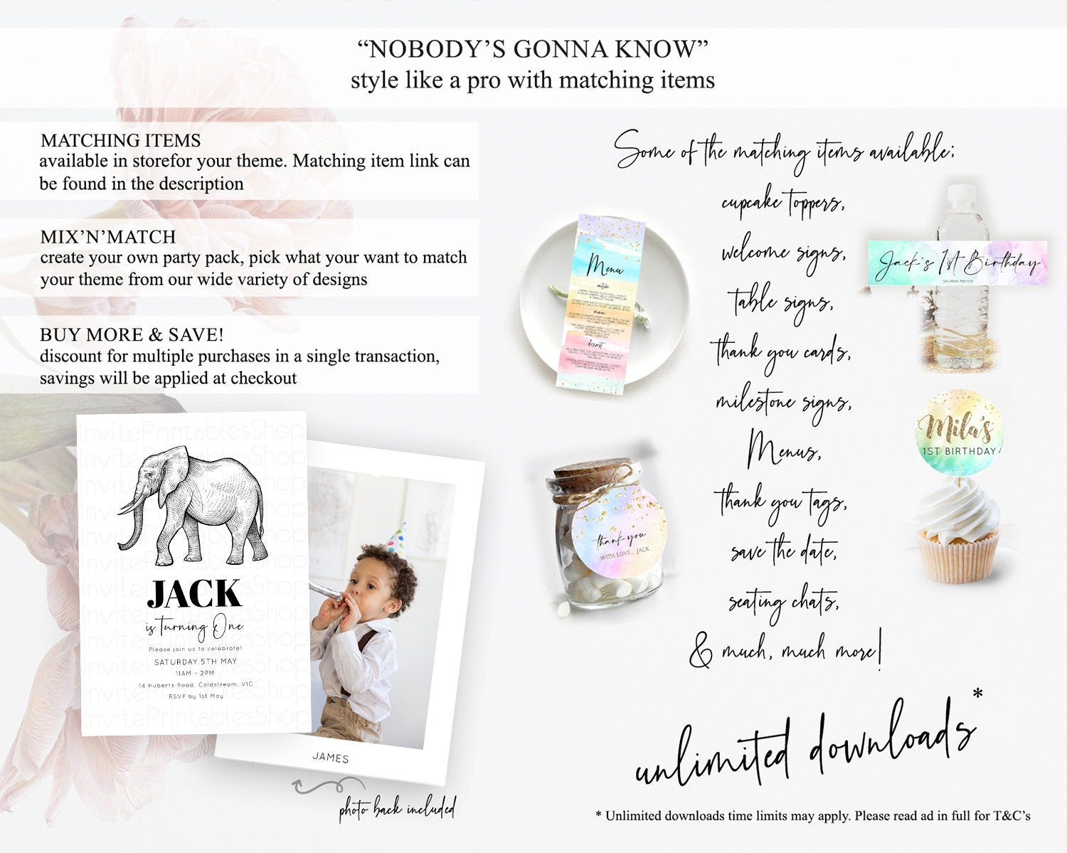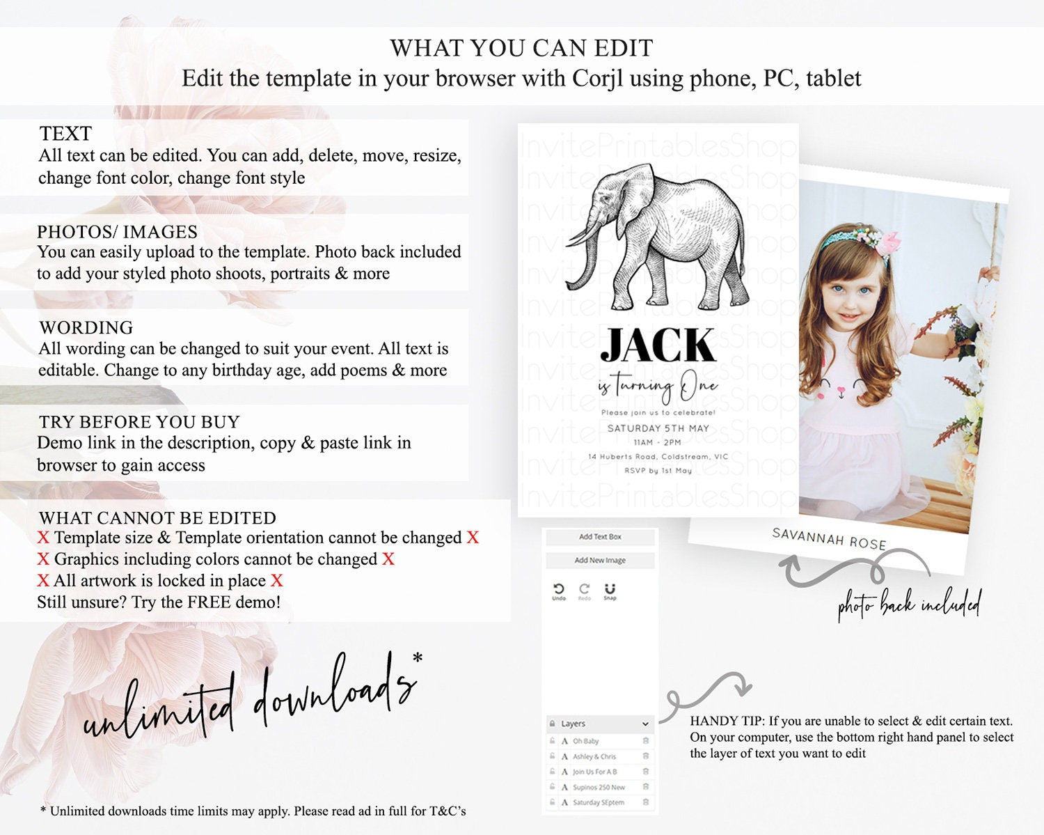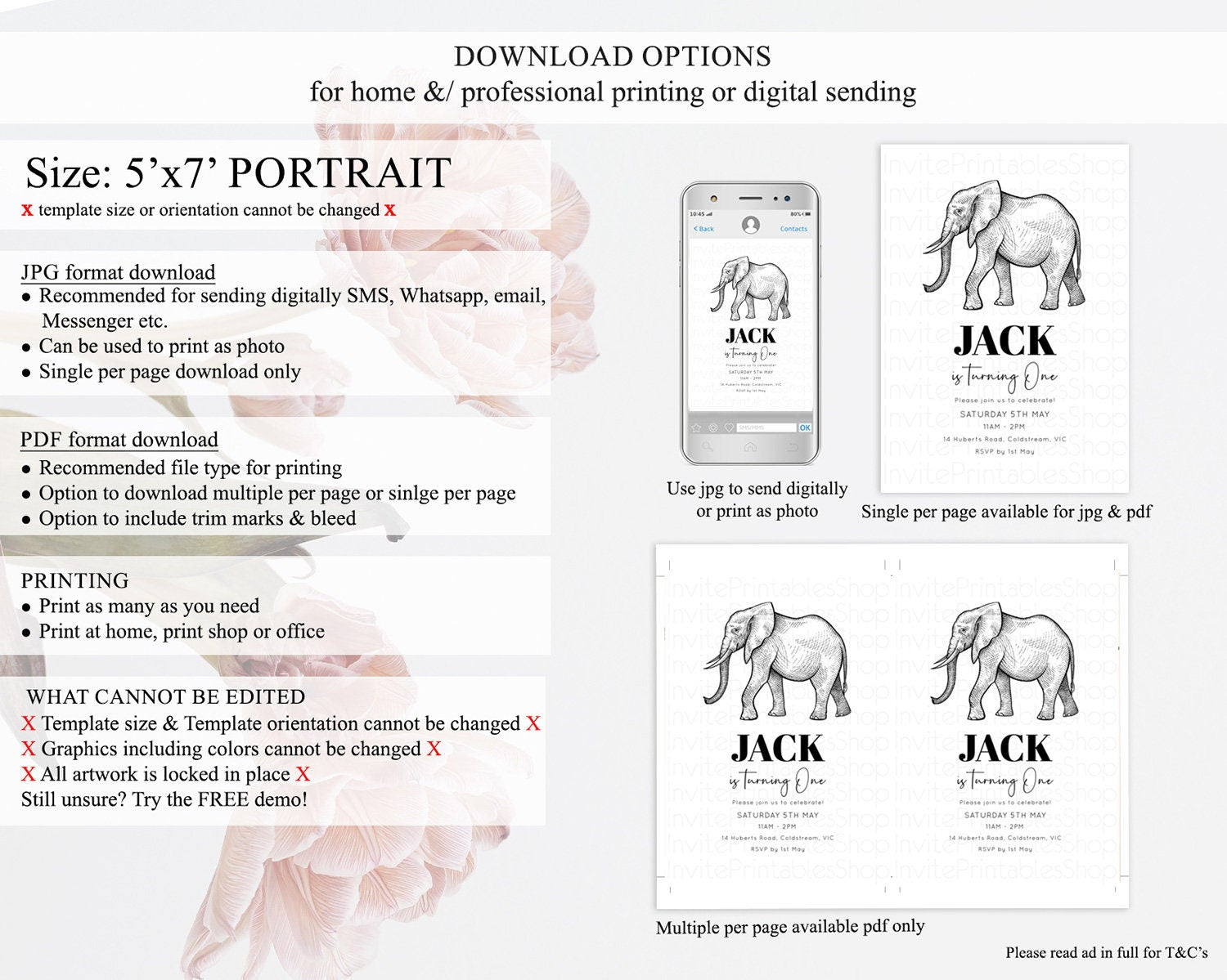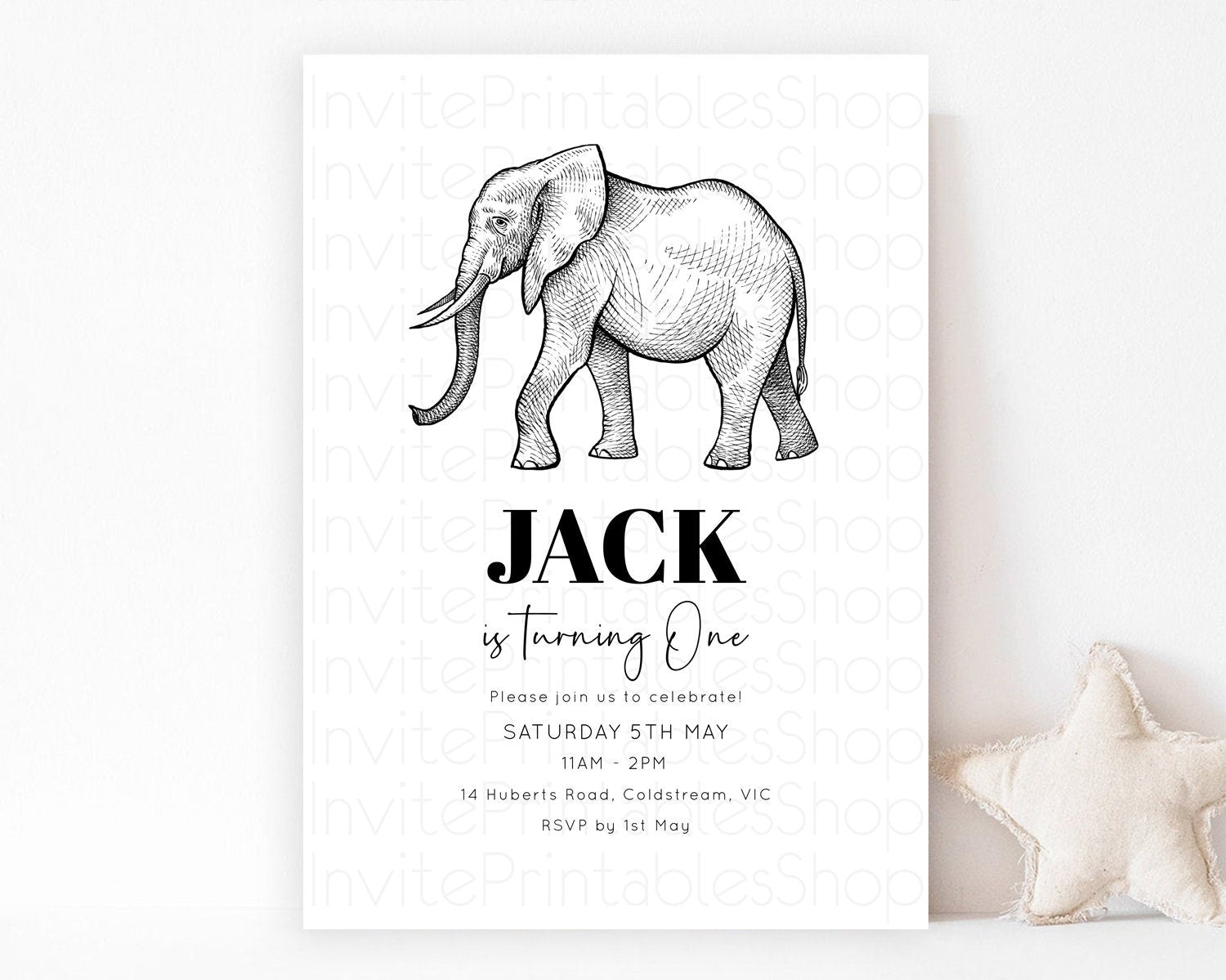 Elephant Birthday Invitation Elephant Invitation Elephant Birthday Safari Elephant Party TWO Wild ONE Jungle Adventure Zoo Birthday D10248