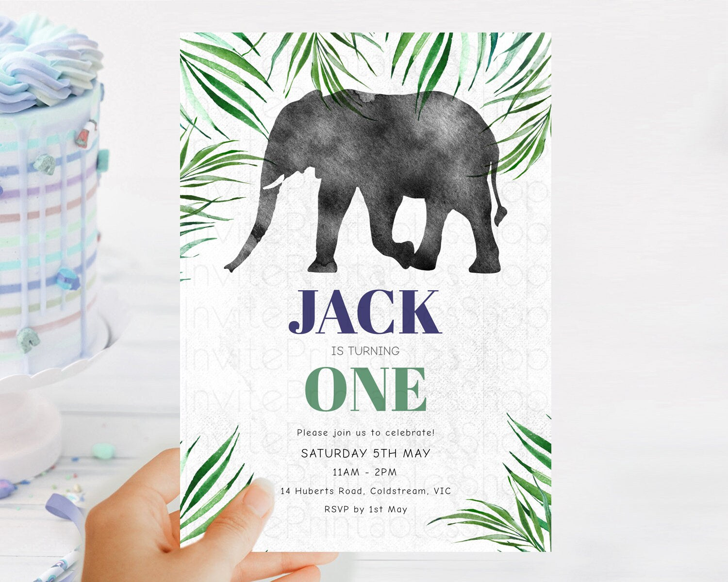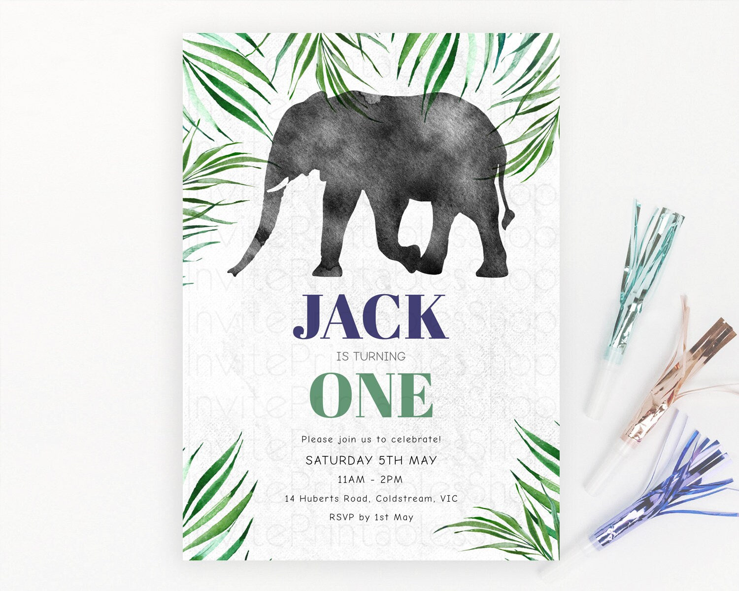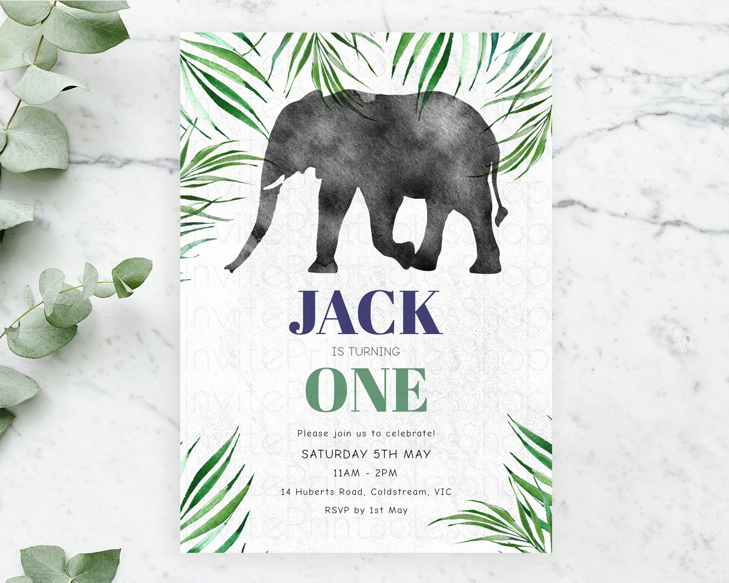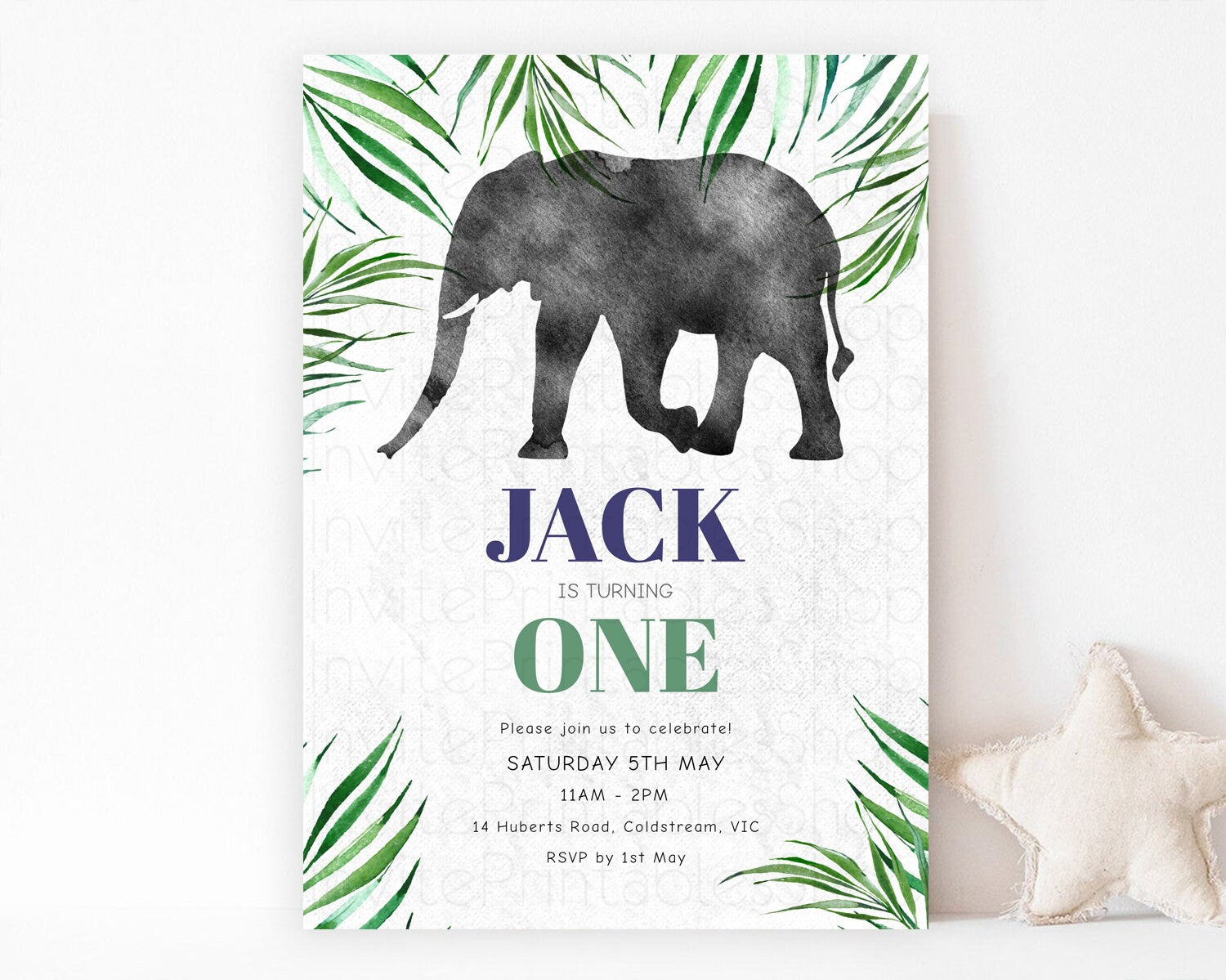 Elephant Birthday Invitation Elephant Invitation Elephant Birthday Safari Elephant Party TWO Wild ONE Jungle Adventure Zoo Birthday D10842