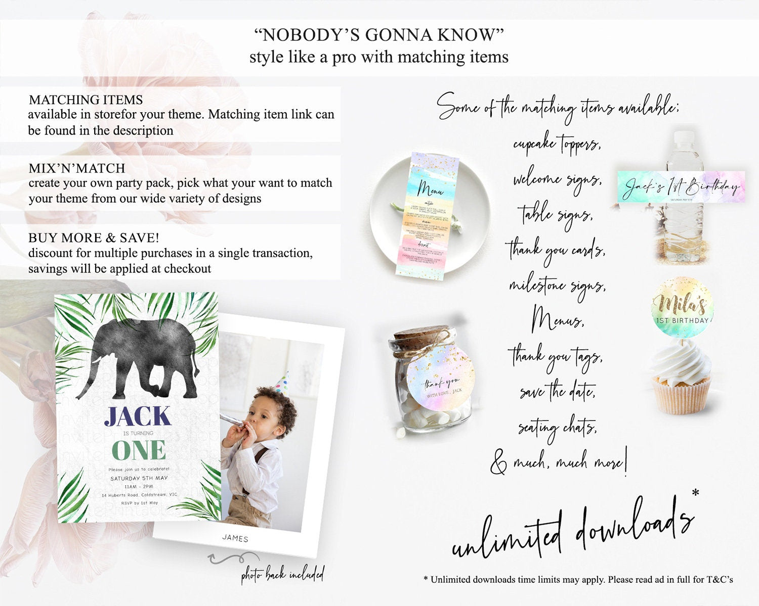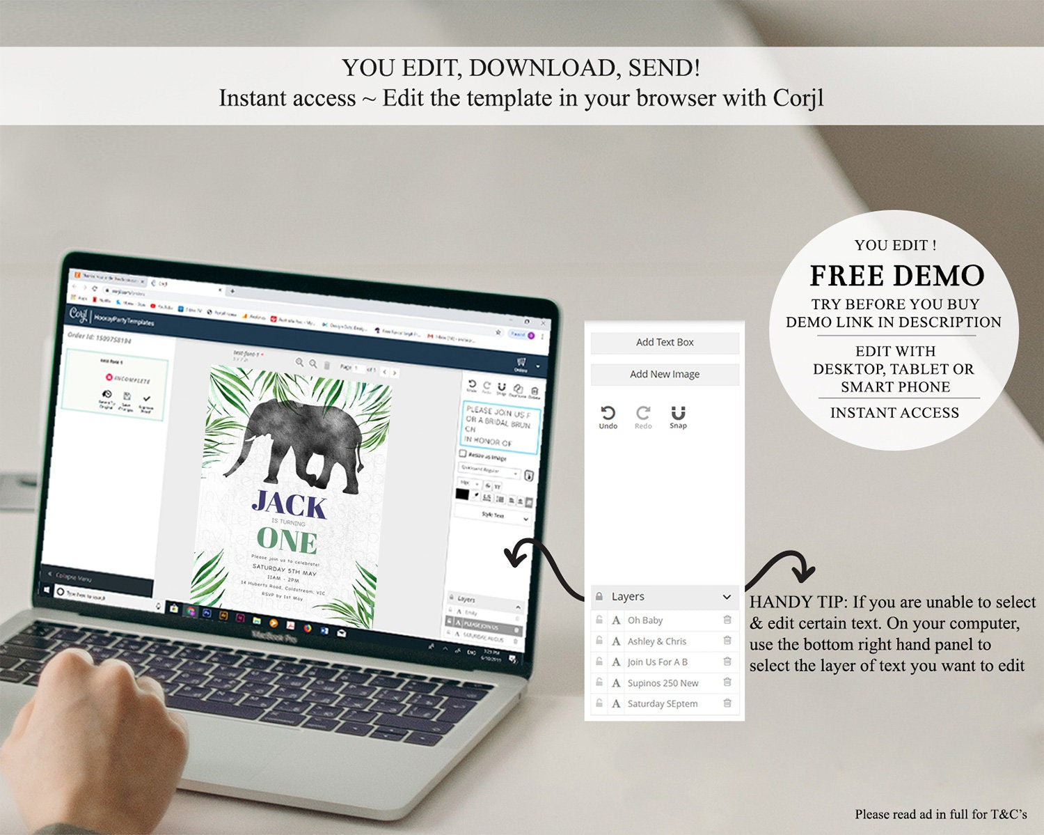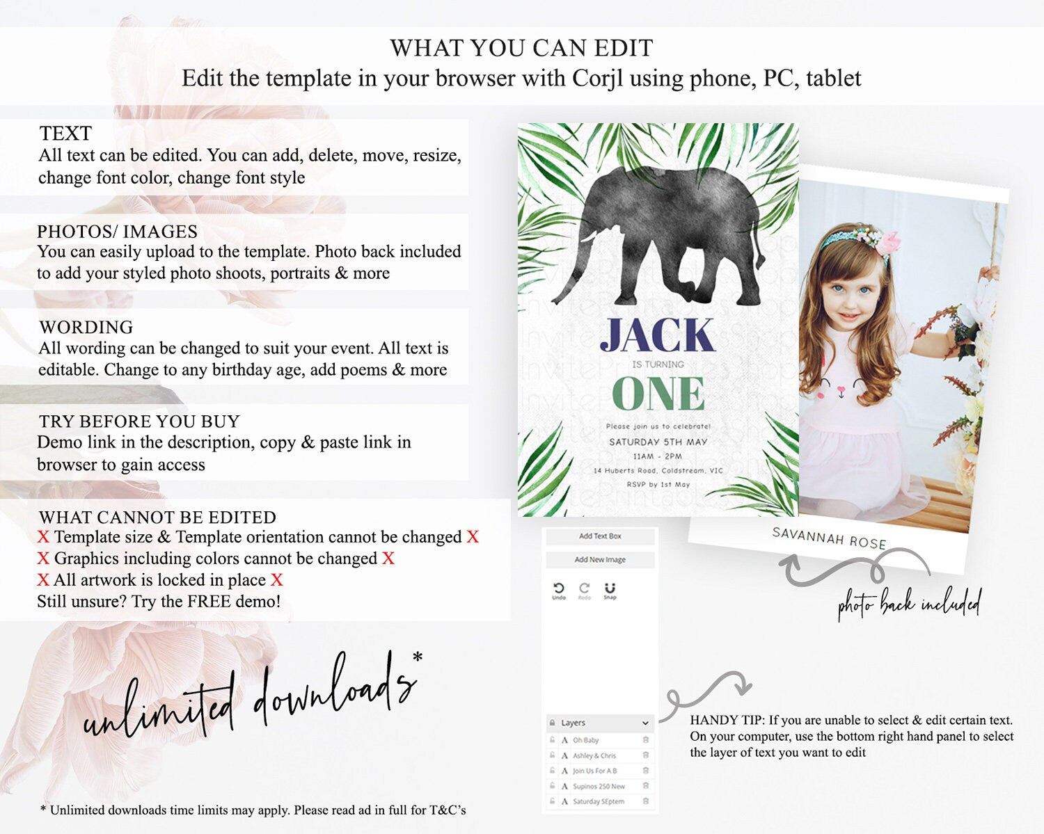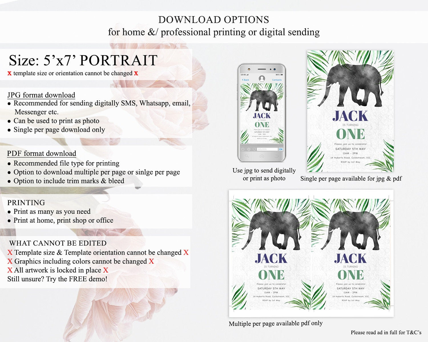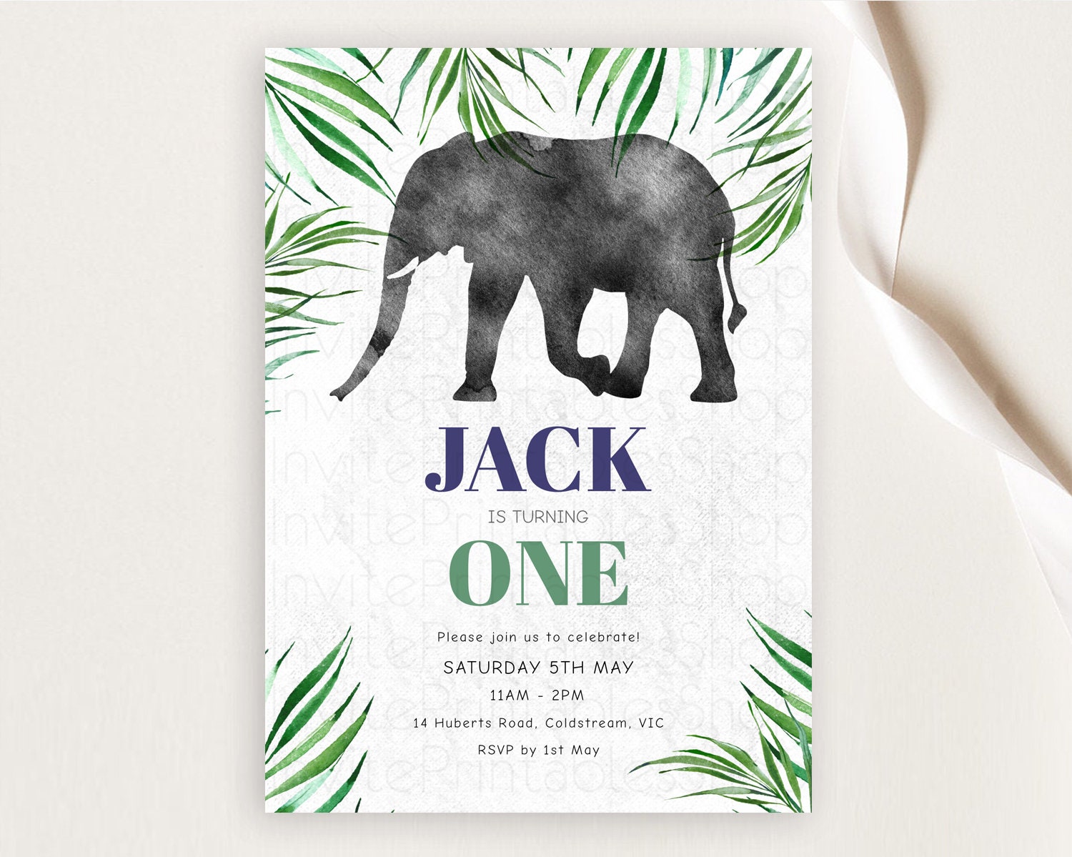 Elephant Birthday Invitation Elephant Invitation Elephant Birthday Safari Elephant Party TWO Wild ONE Jungle Adventure Zoo Birthday D10842