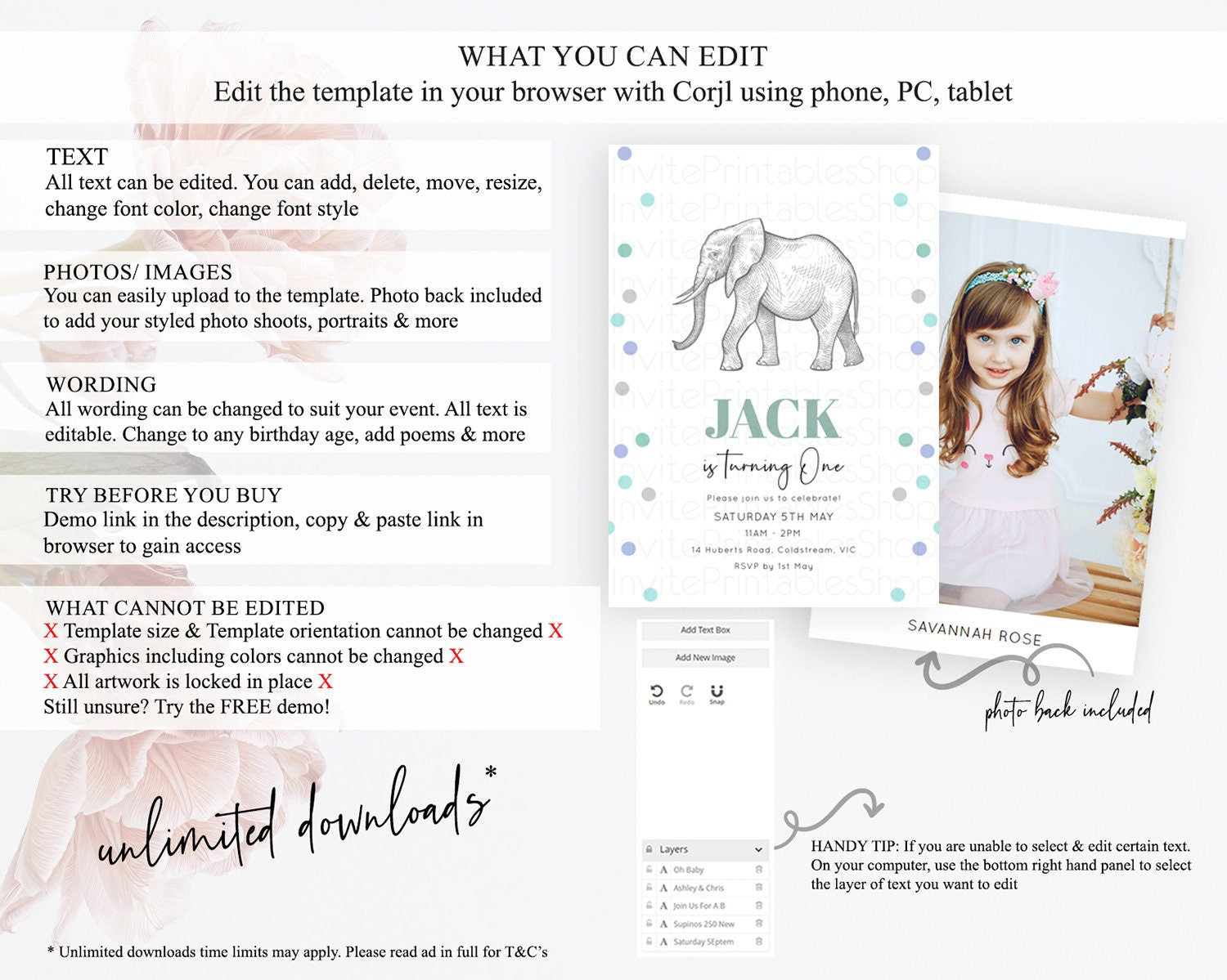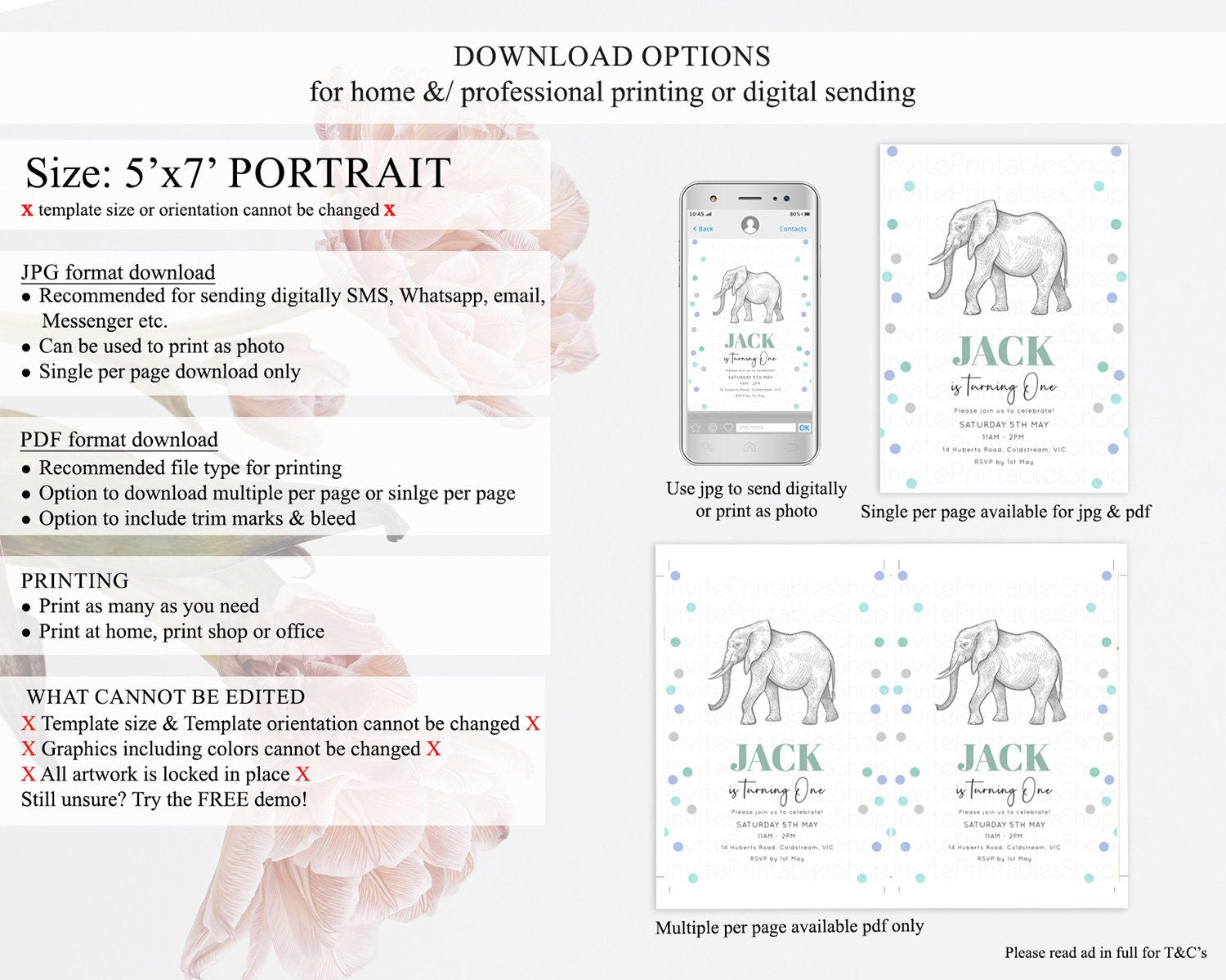 • Template size & orientation cannot be changed. Please use the demo link to confirm this product suits your needs.