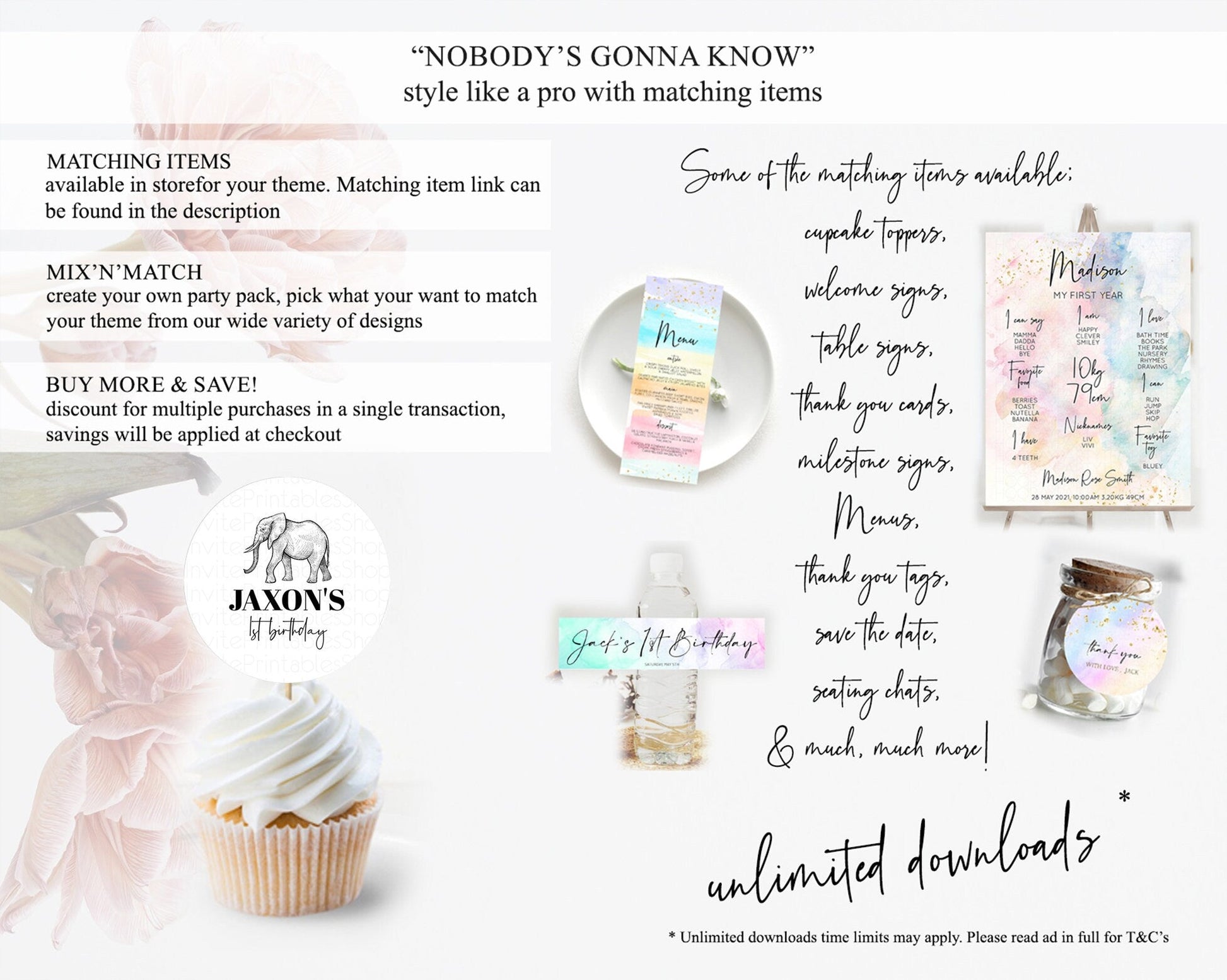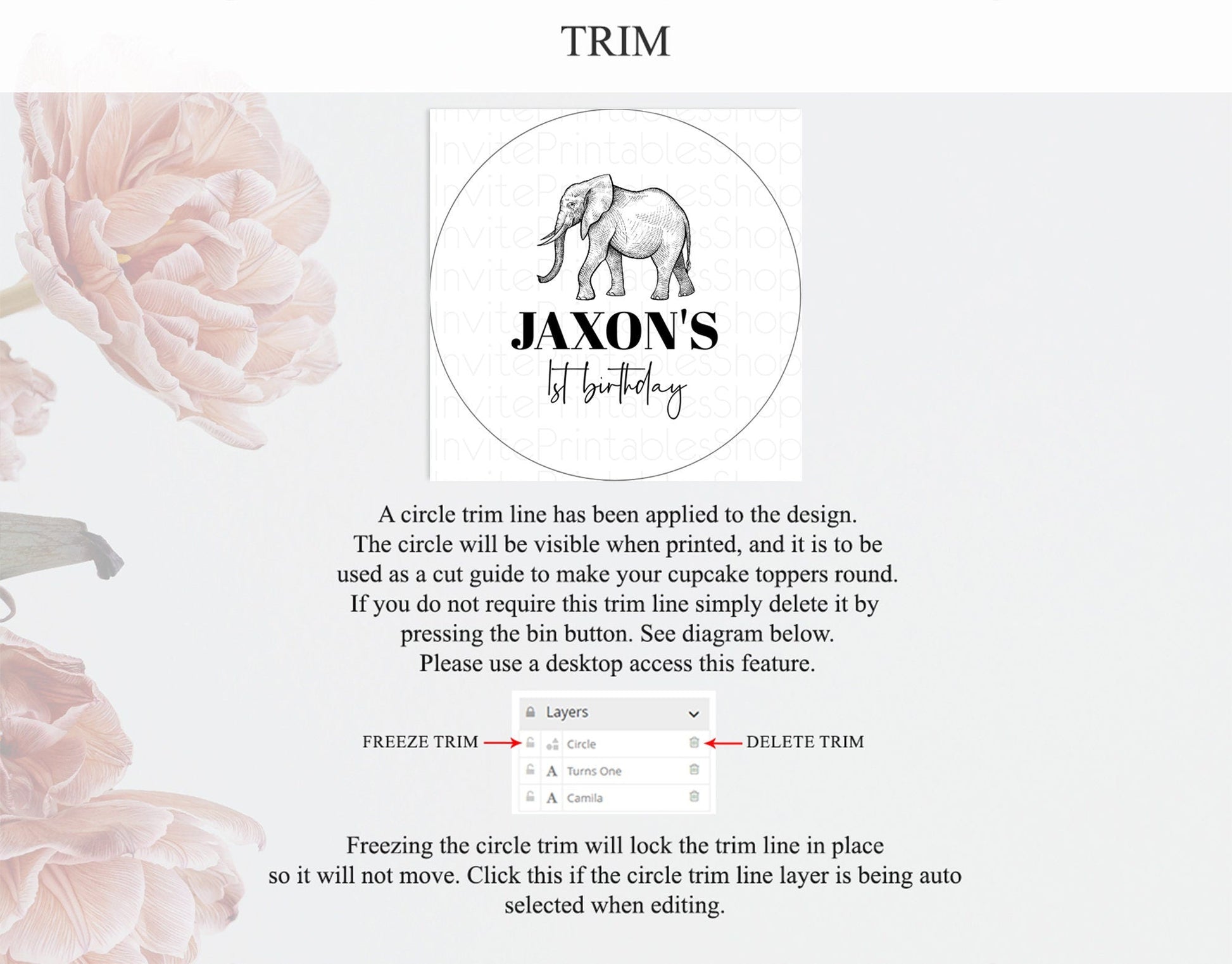 Elephant Cupcake Toppers Elephant Cupcake Elephant Party Safari Adventure Elephant Cupcake Topper Elephant Decor Zoo Fern Palm Leaf D10248