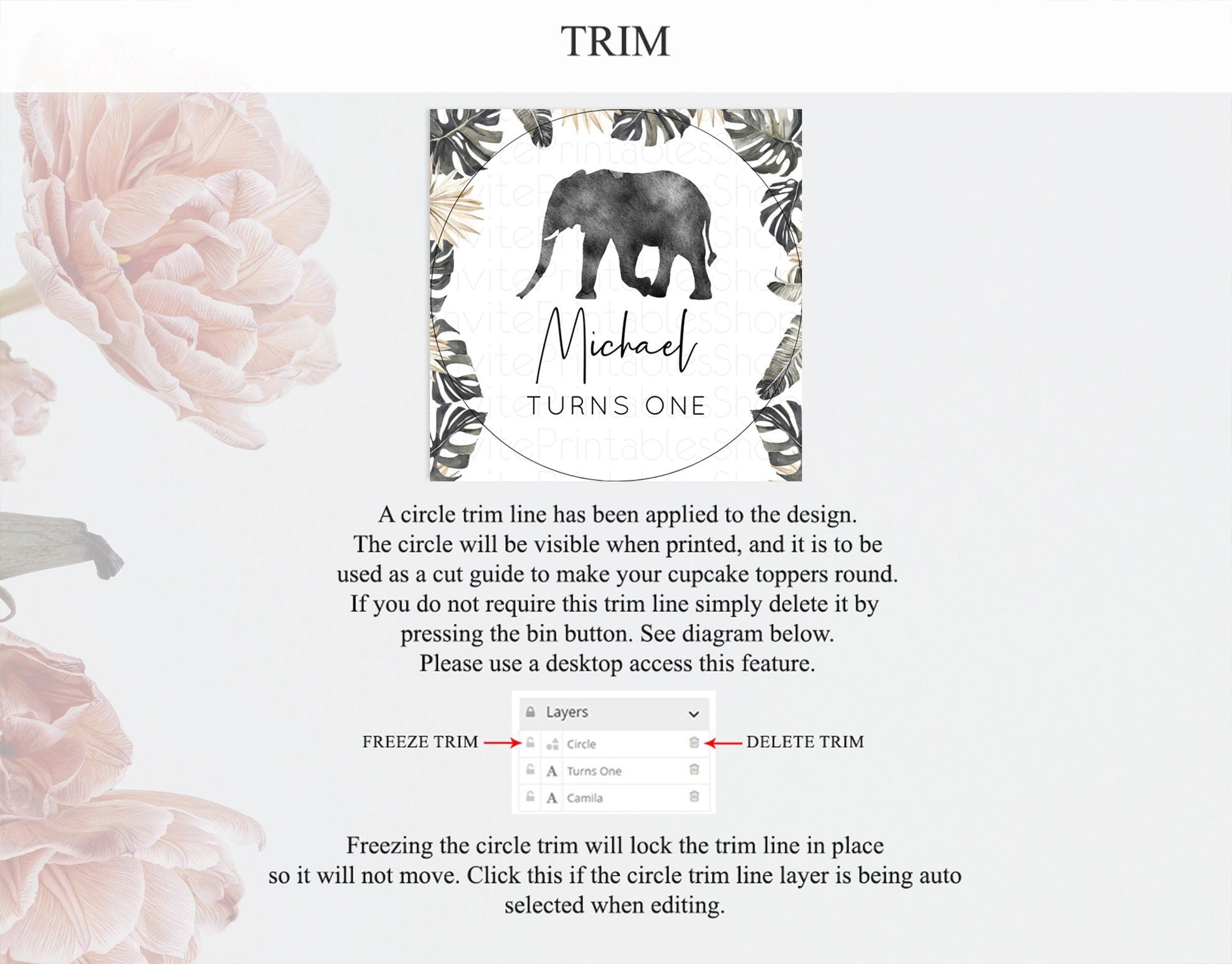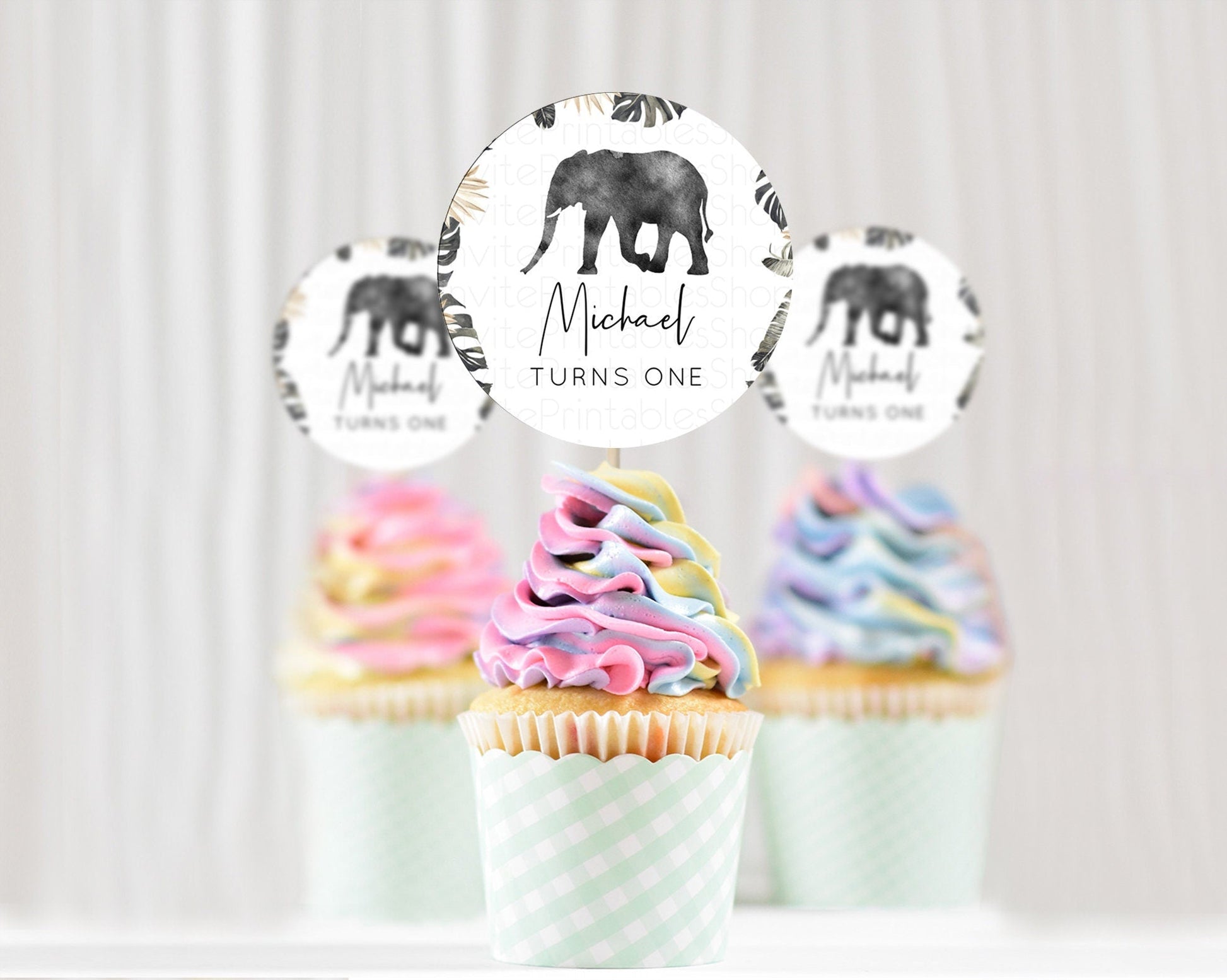Elephant Cupcake Toppers Elephant Cupcake Elephant Party Safari Adventure Elephant Cupcake Topper Elephant Decor Zoo Fern Palm Leaf D10803