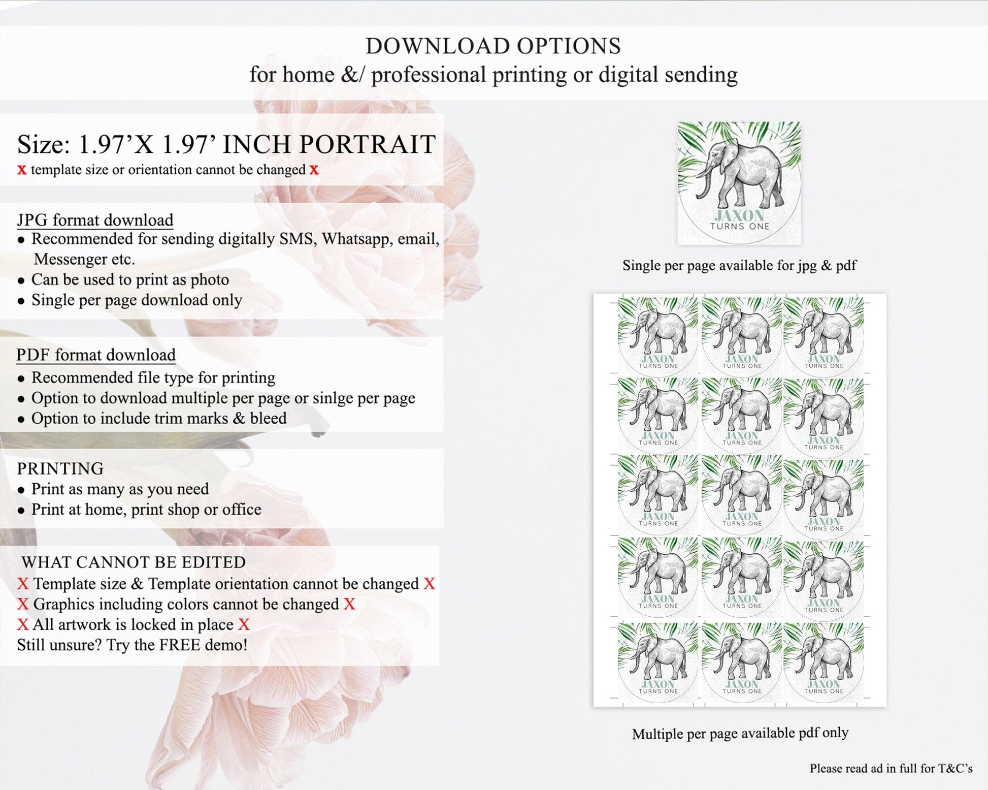 • Template size & orientation cannot be changed. Please use the demo link to confirm this product suits your needs.