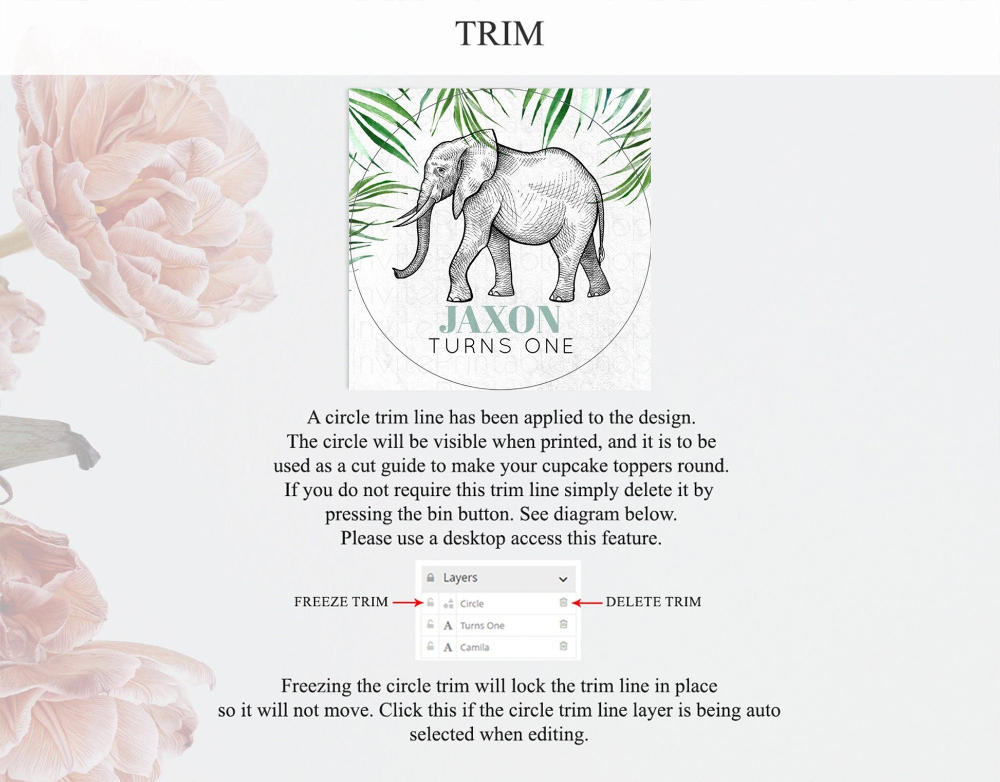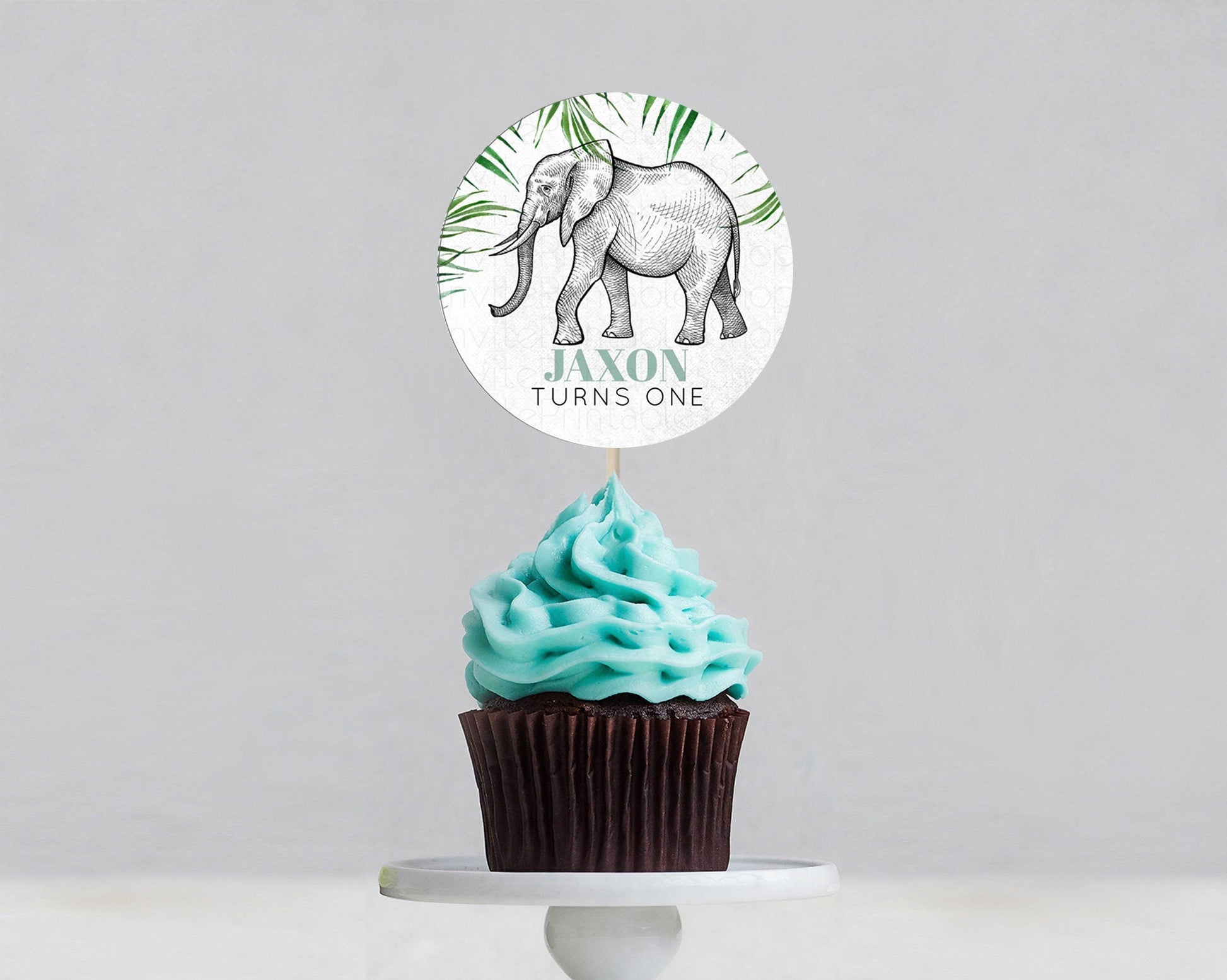 Elephant Cupcake Toppers Elephant Cupcake Elephant Party Safari Adventure Elephant Cupcake Topper Elephant Decor Zoo Fern Palm Leaf D10850