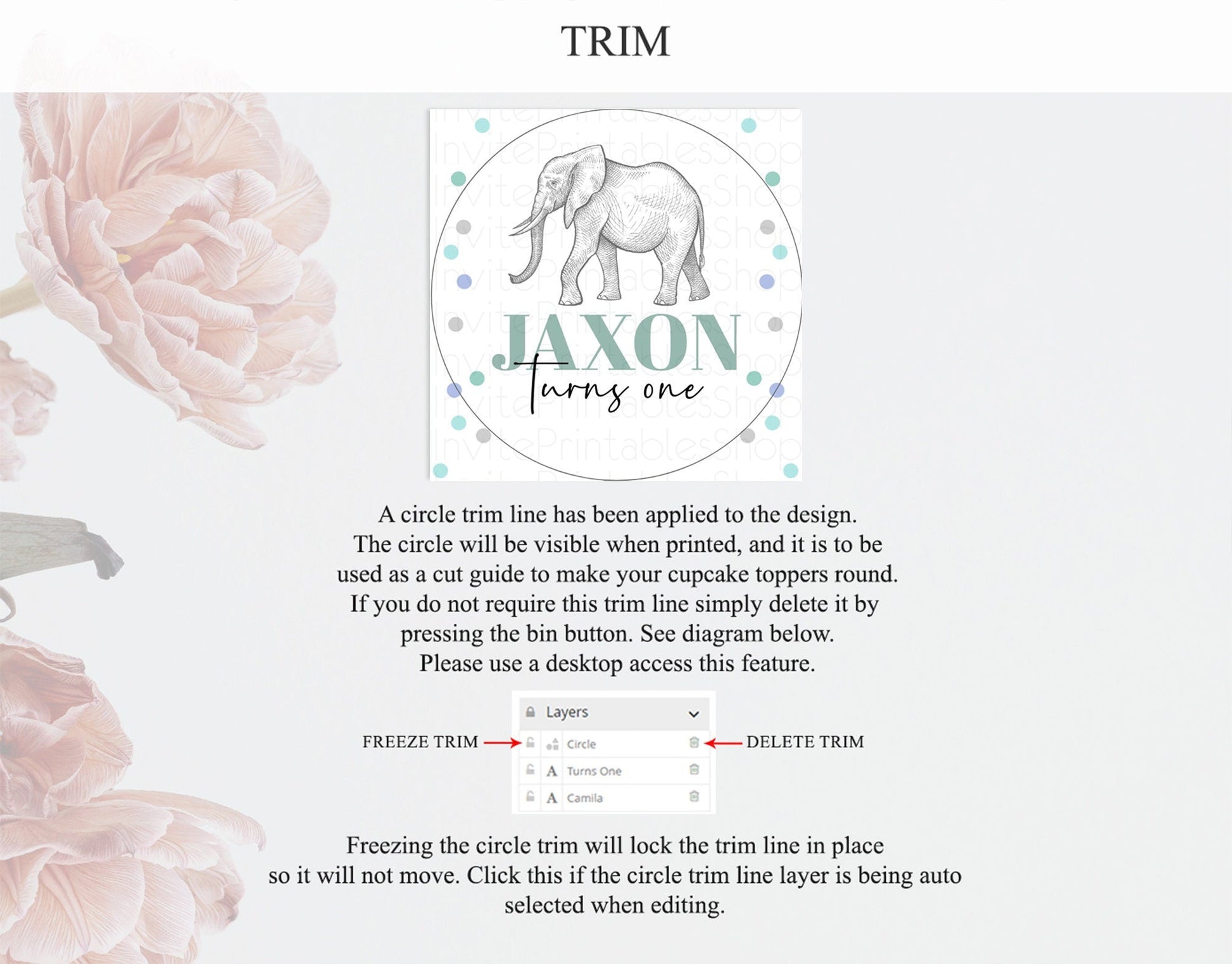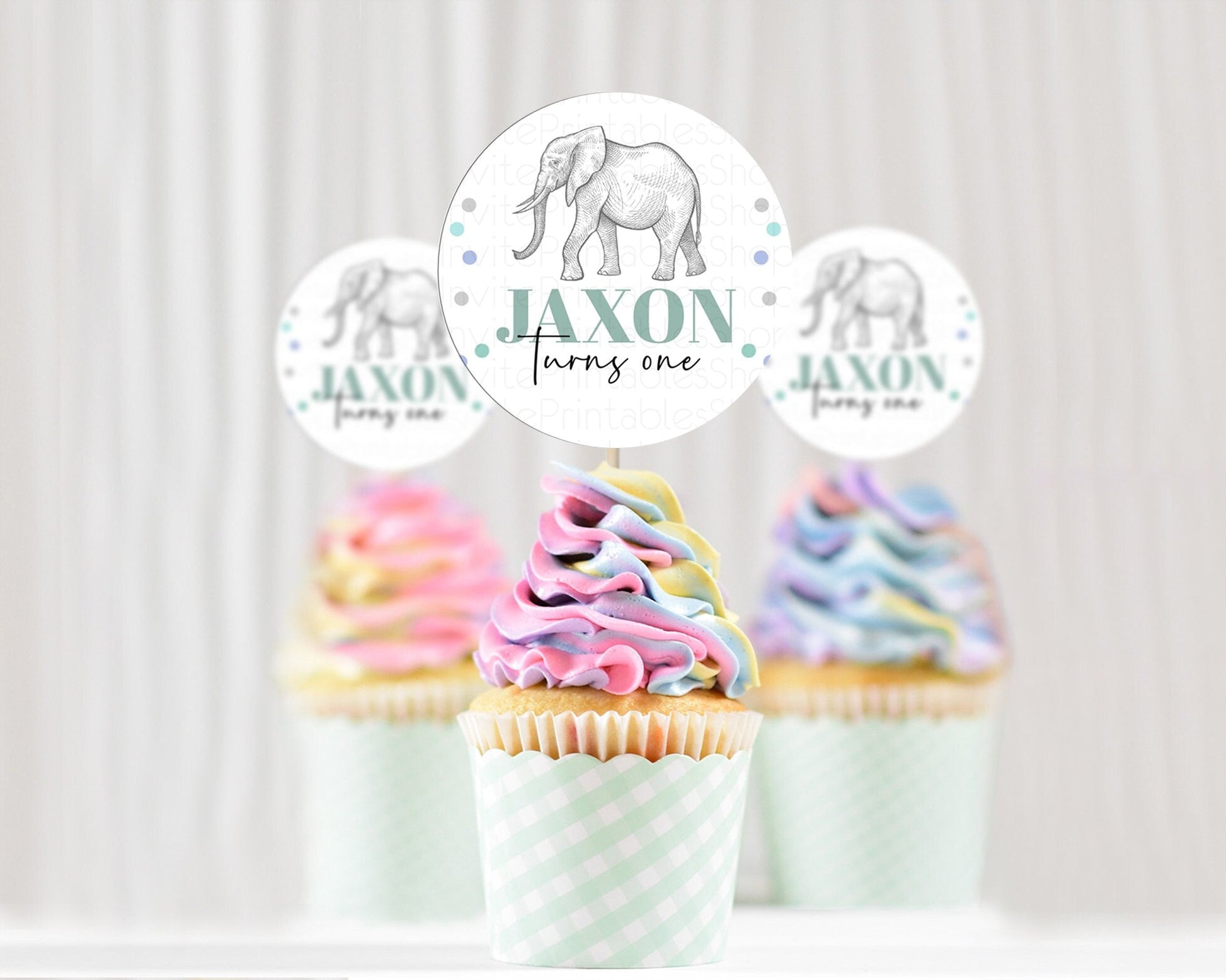 Elephant Cupcake Toppers Elephant Cupcake Elephant Party Safari Adventure Elephant Cupcake Topper Elephant Decor Zoo Fern Palm Leaf D10859