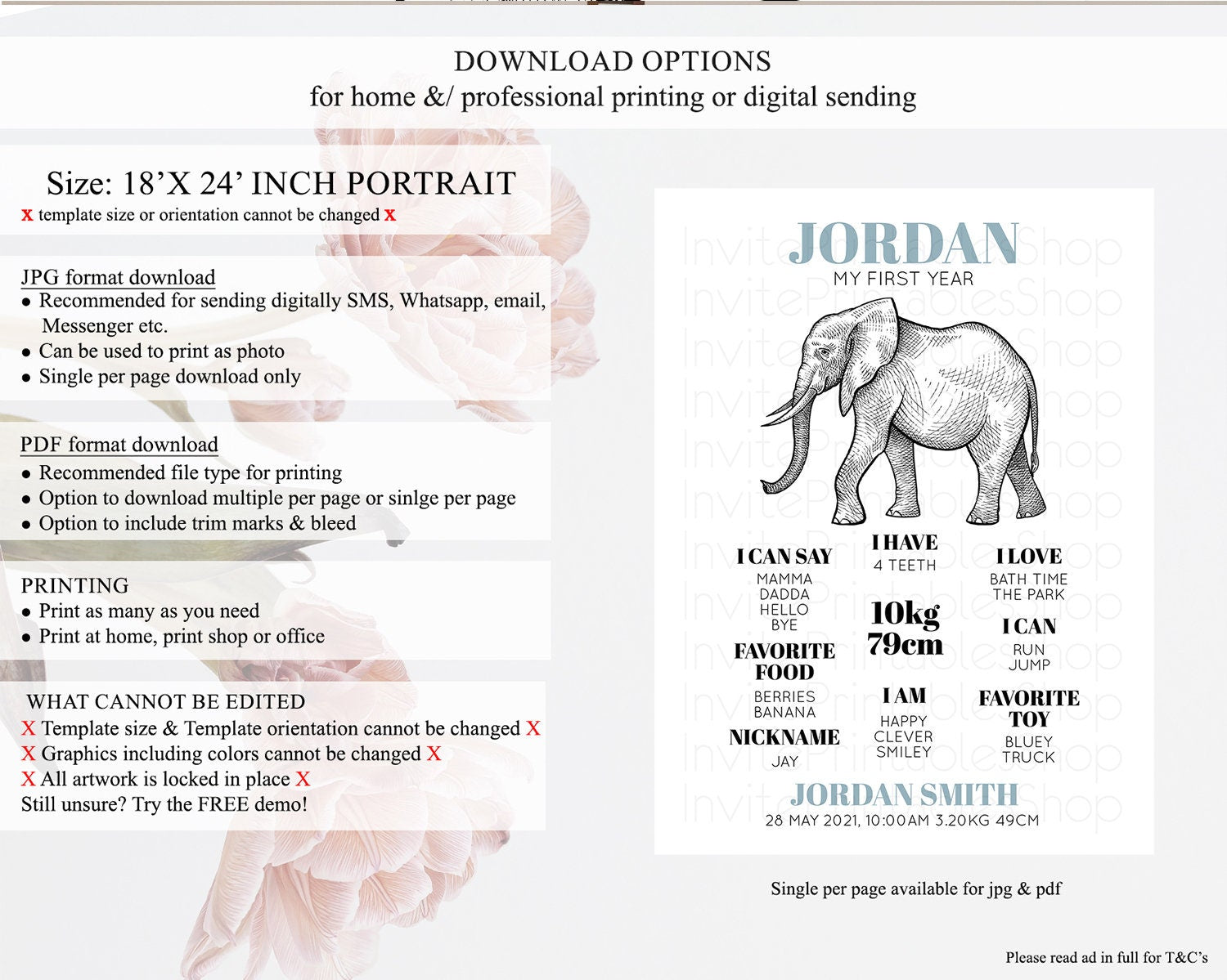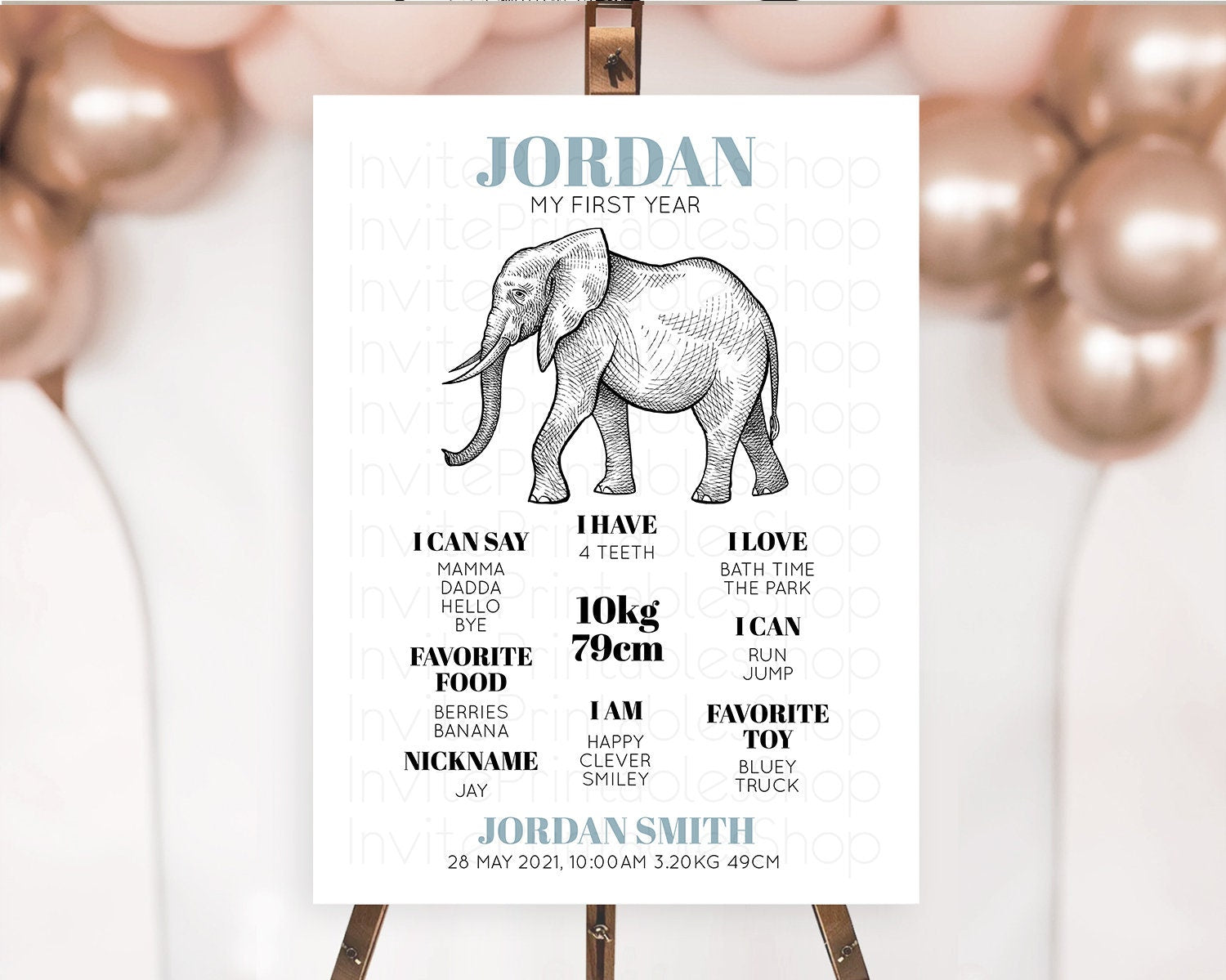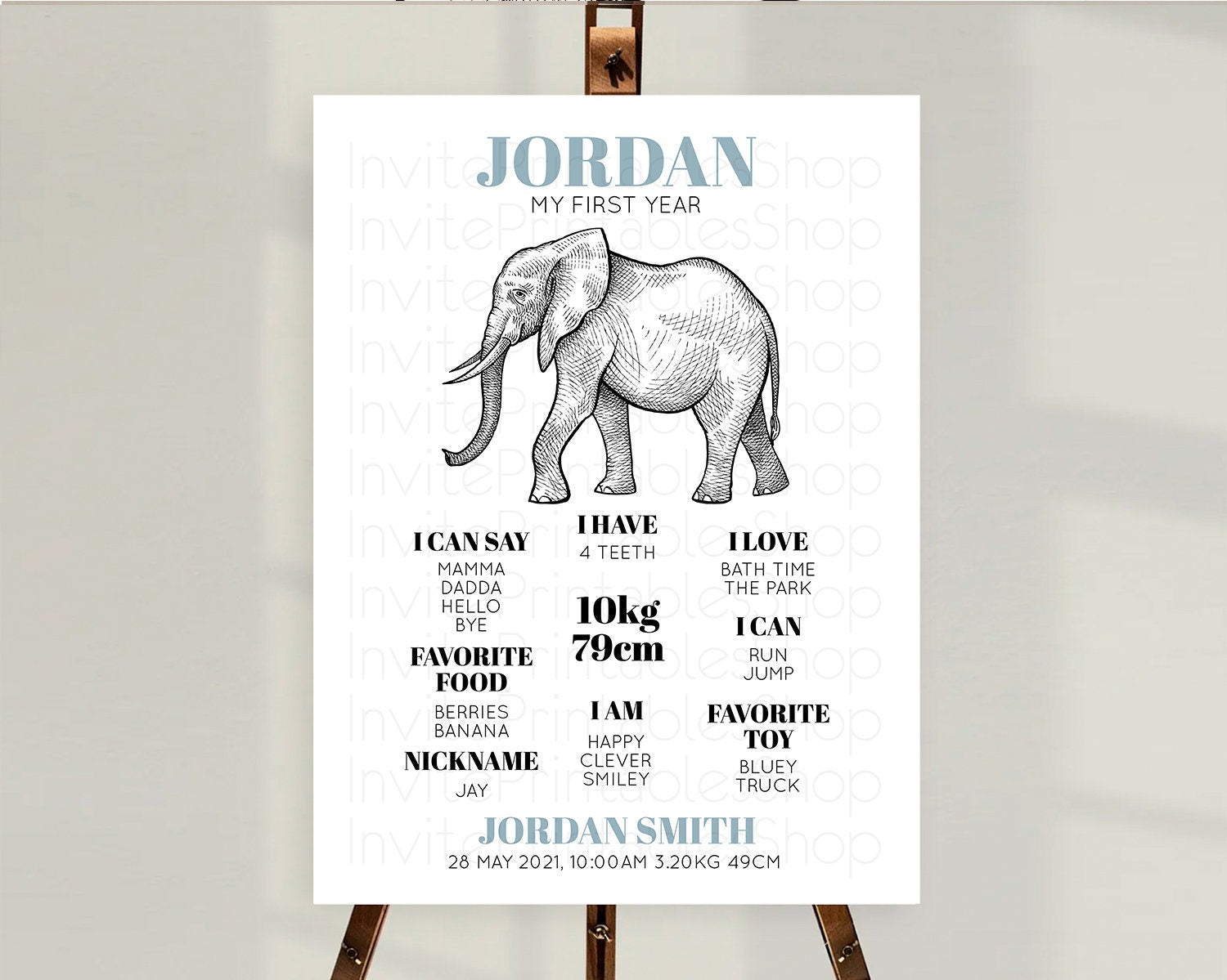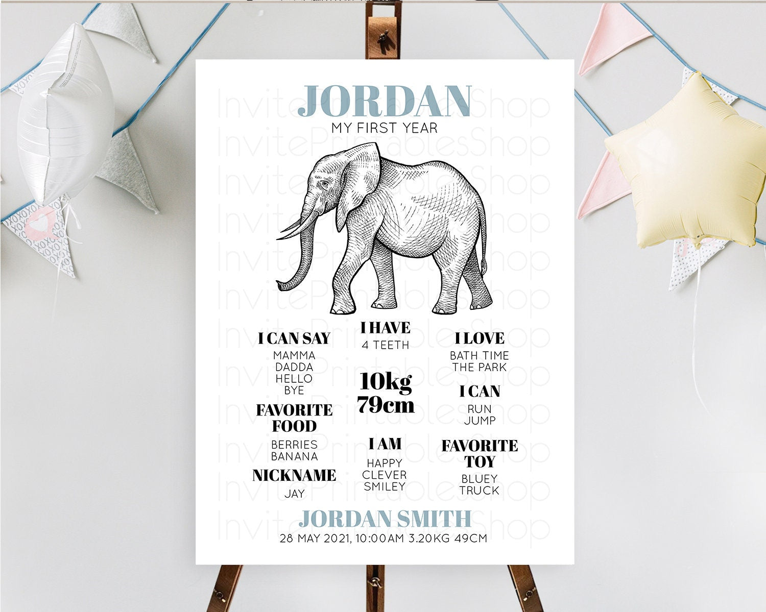 Elephant First Birthday Milestone Board Elephant Milestone Poster One Wild Year Safari Adventure Elephant Zoo Birthday Welcome Sign D10248