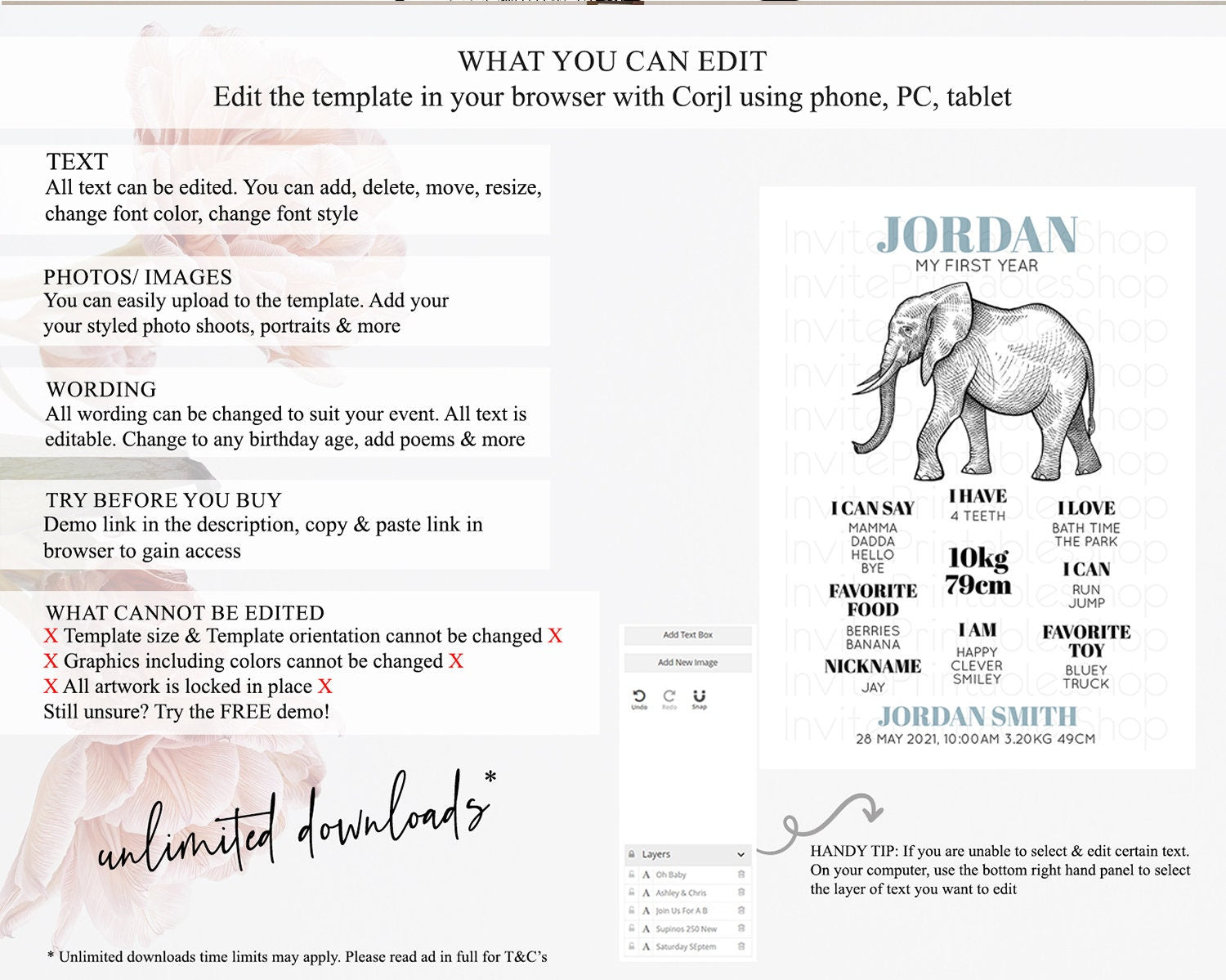• After purchase, Corjl emails your editing link. Allow up to 15 minutes for delivery.