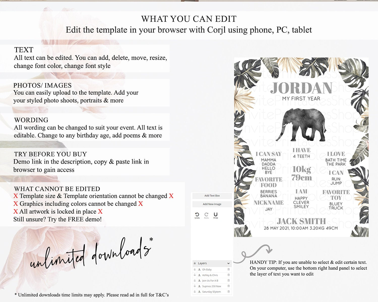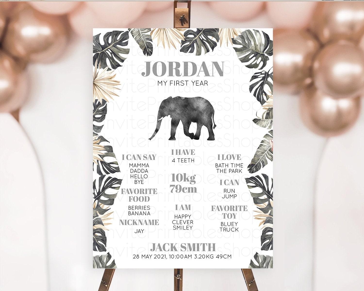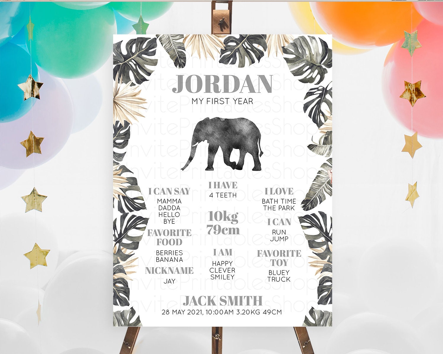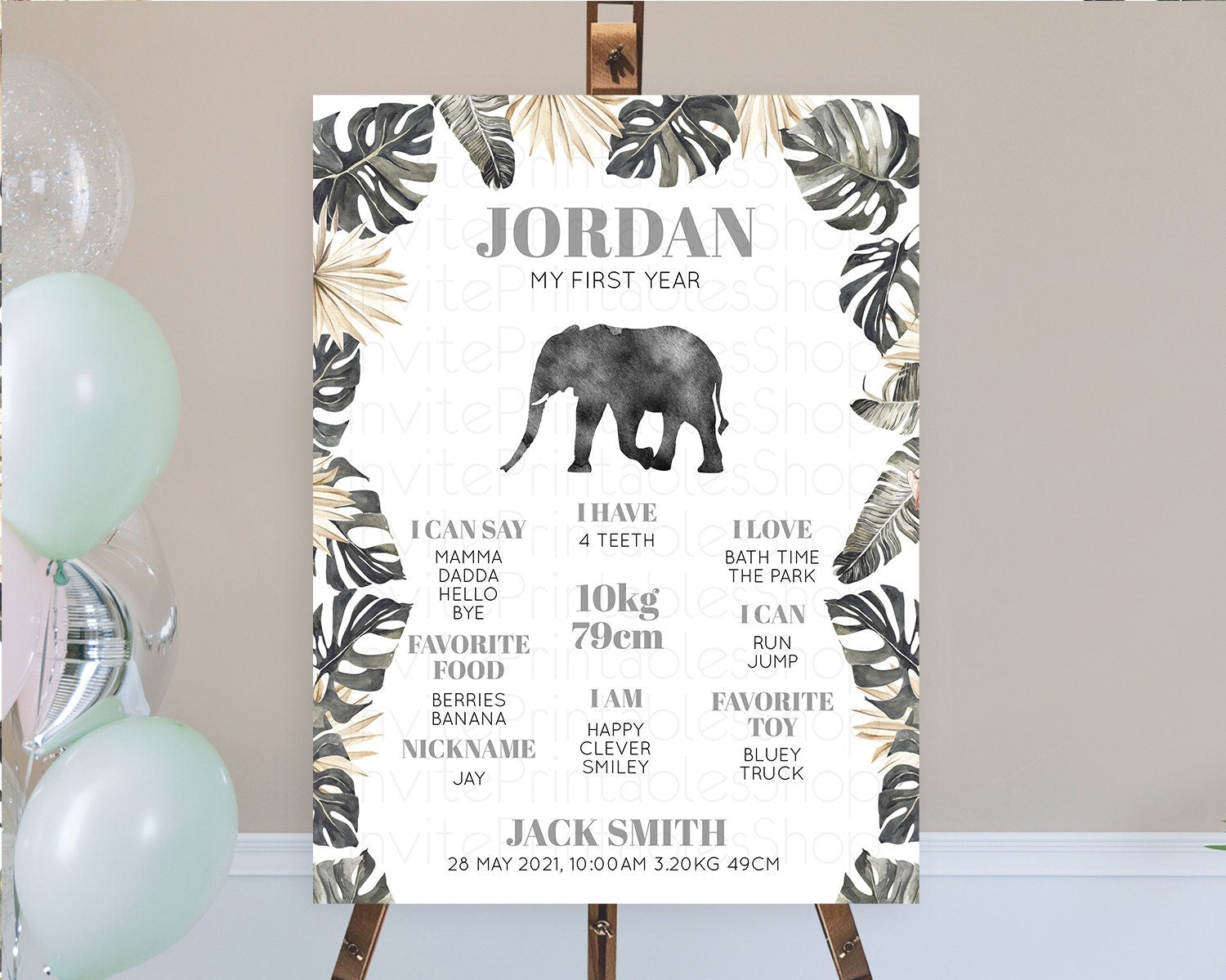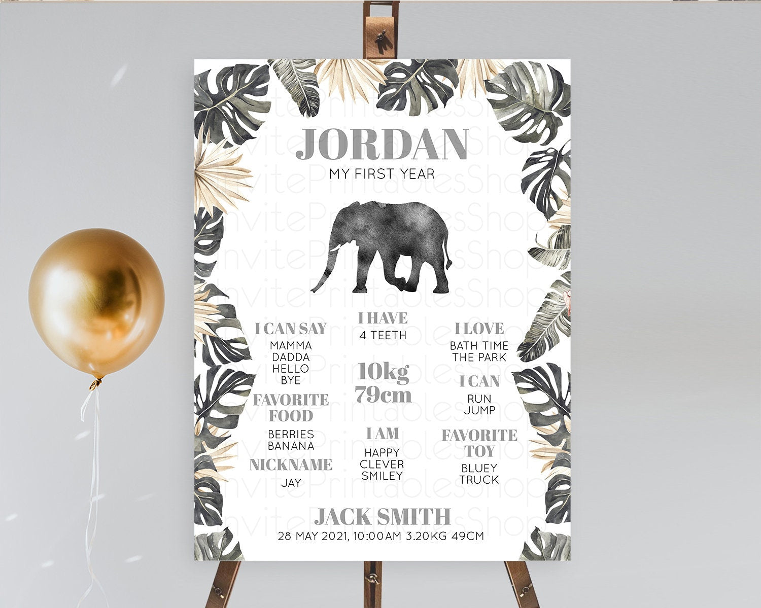 Elephant First Birthday Milestone Board Elephant Milestone Poster One Wild Year Safari Adventure Elephant Zoo Birthday Welcome Sign D10803