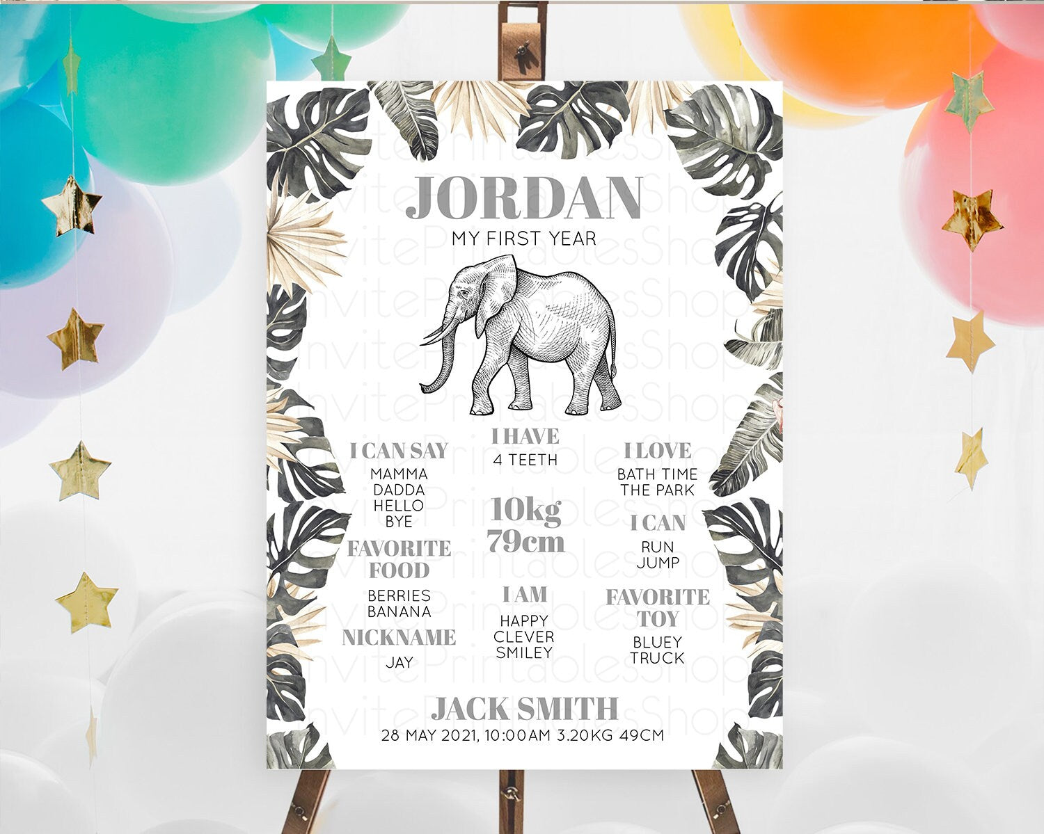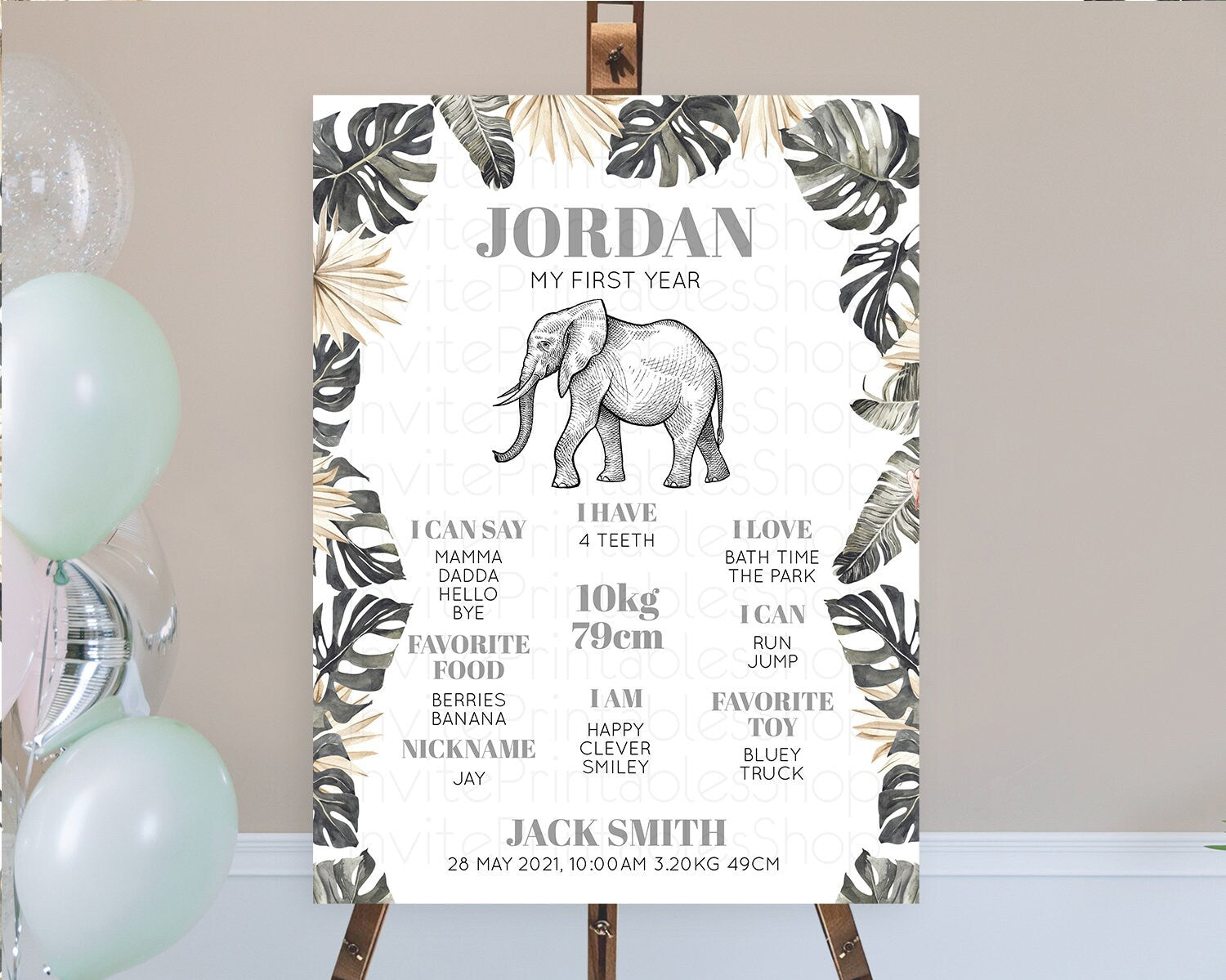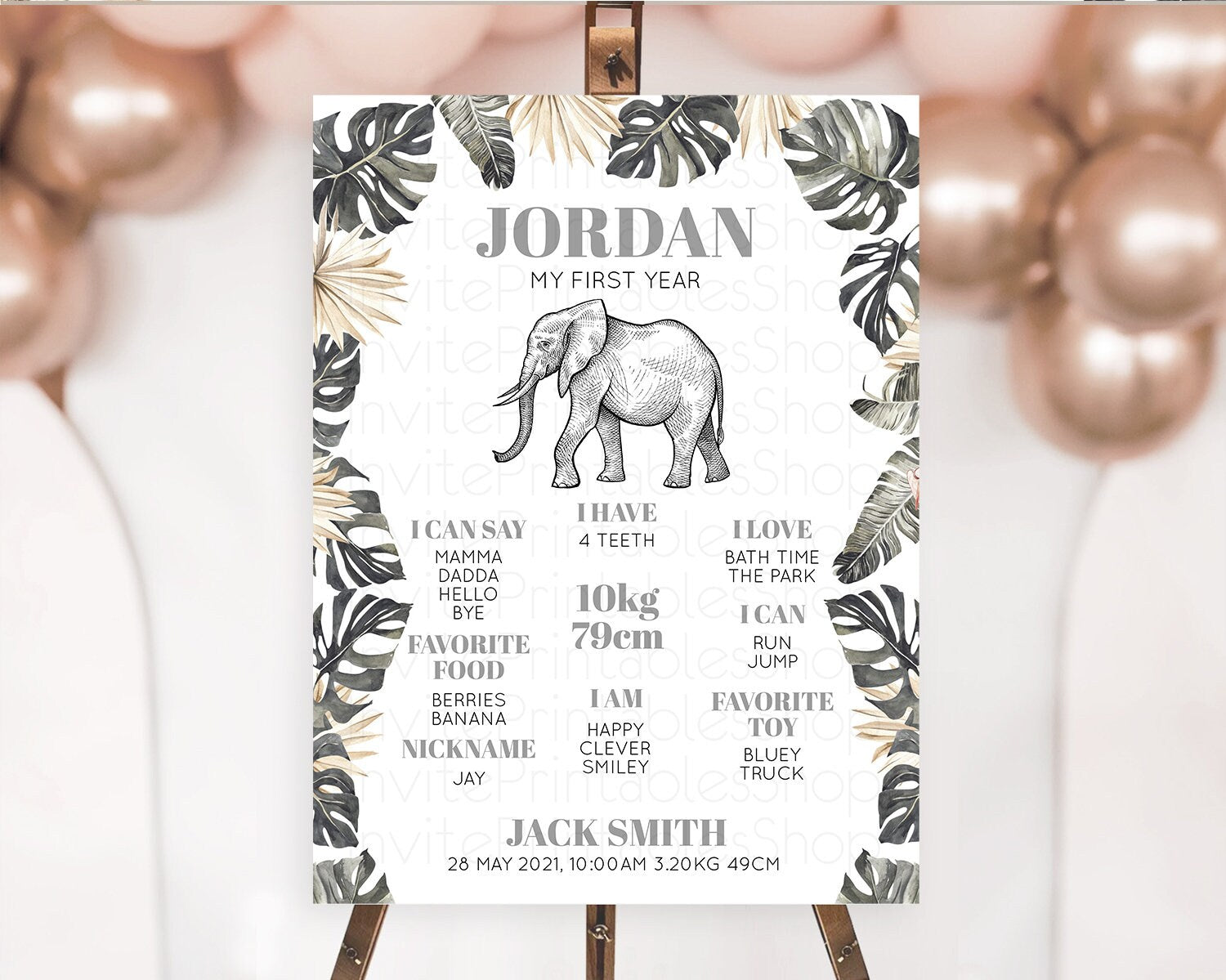 Elephant First Birthday Milestone Board Elephant Milestone Poster One Wild Year Safari Adventure Elephant Zoo Birthday Welcome Sign D10806