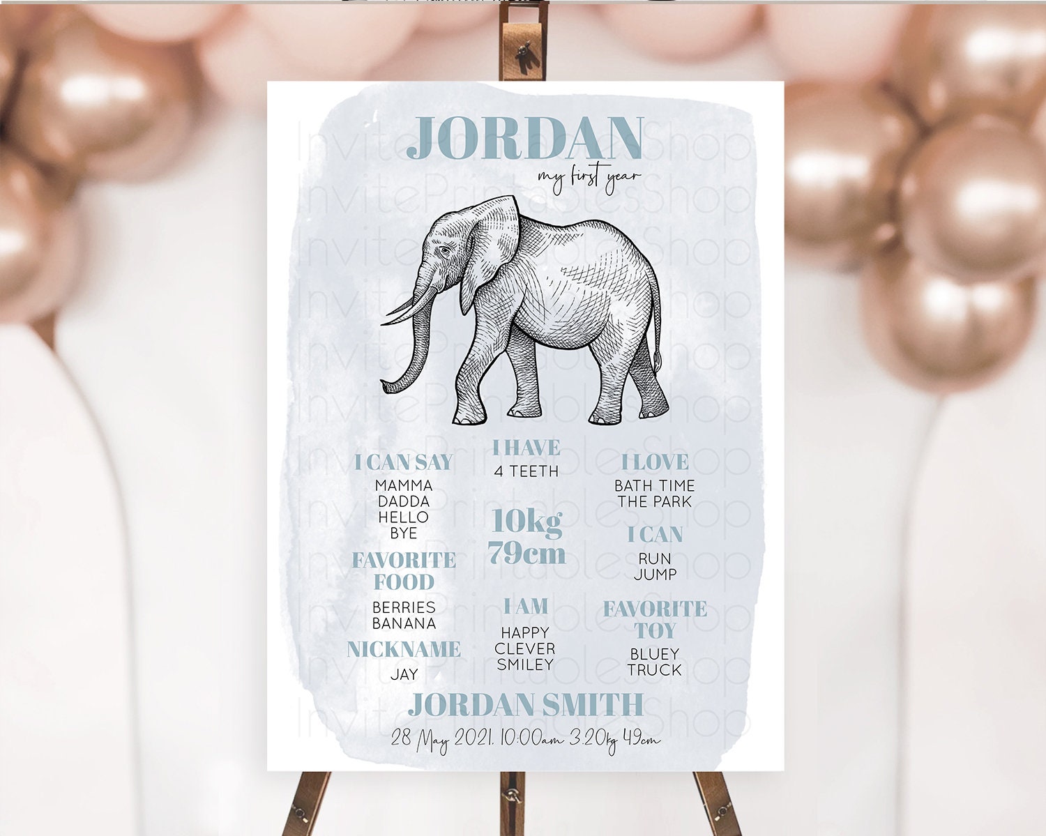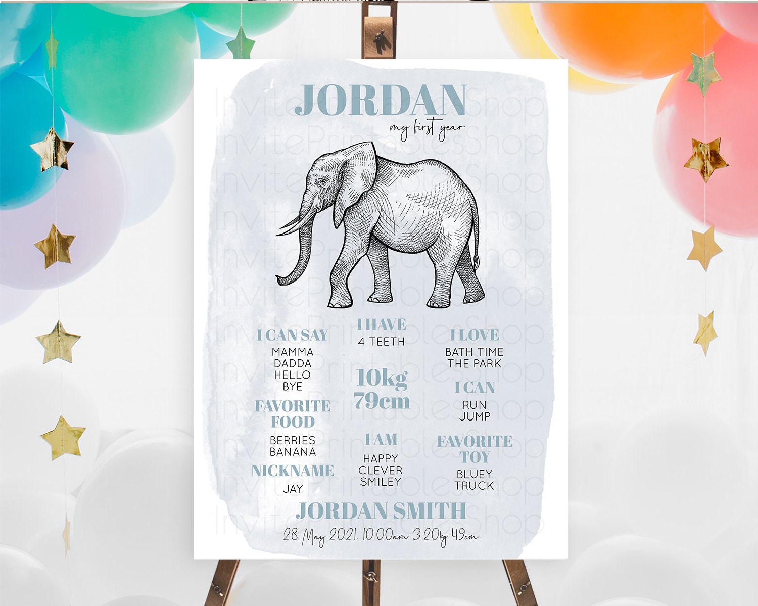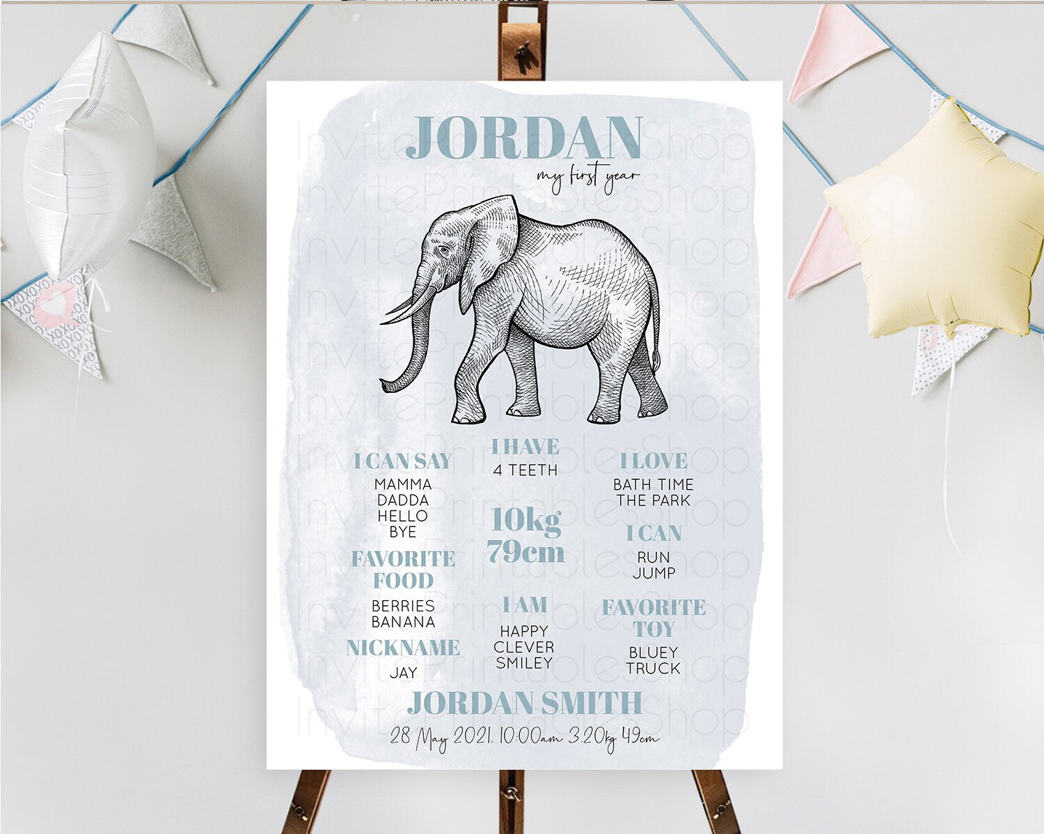 Elephant First Birthday Milestone Board Elephant Milestone Poster One Wild Year Safari Adventure Elephant Zoo Birthday Welcome Sign D10811