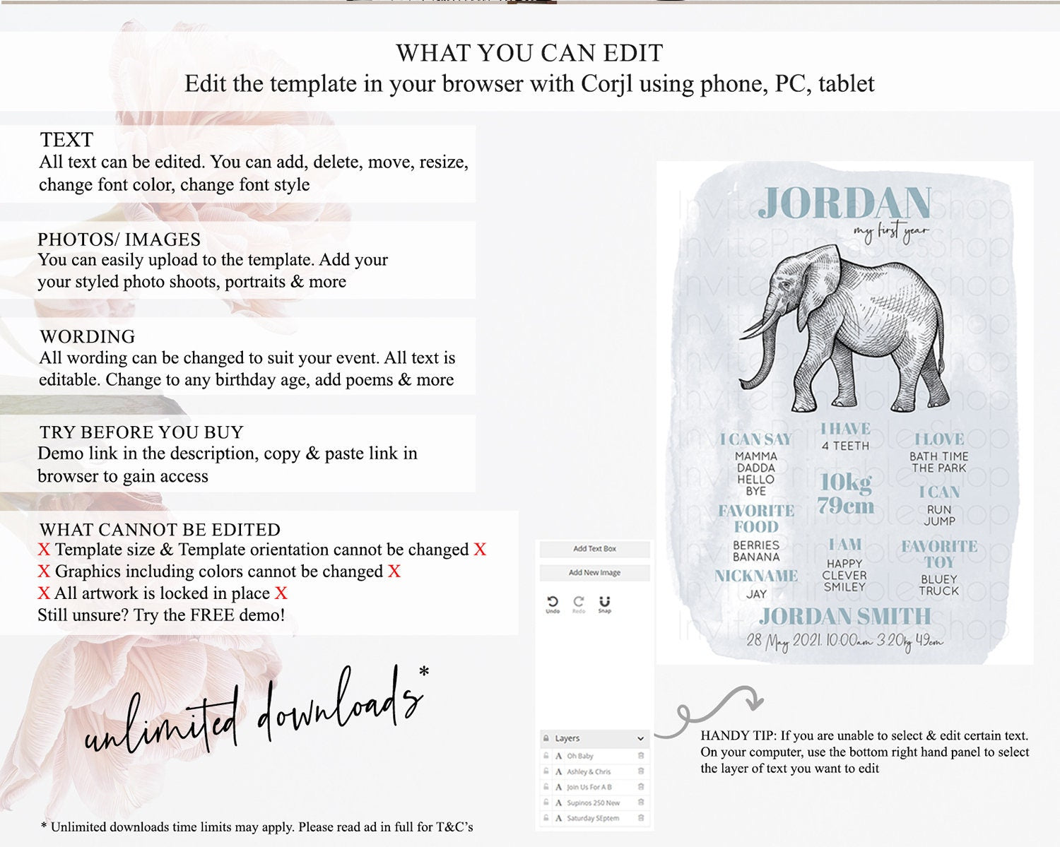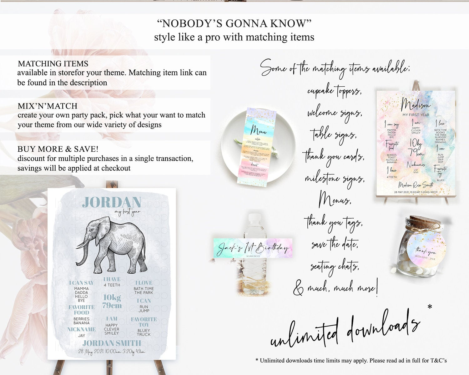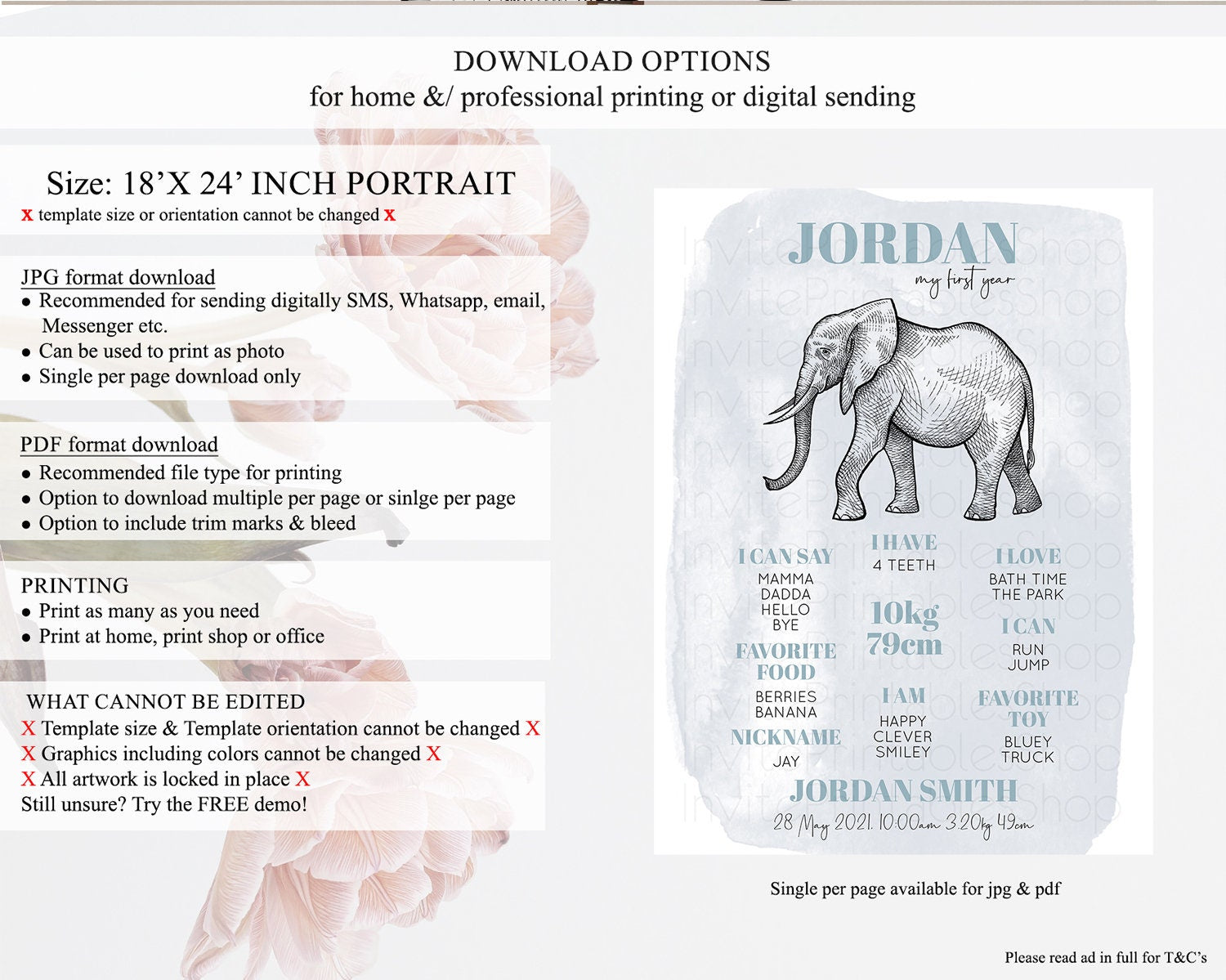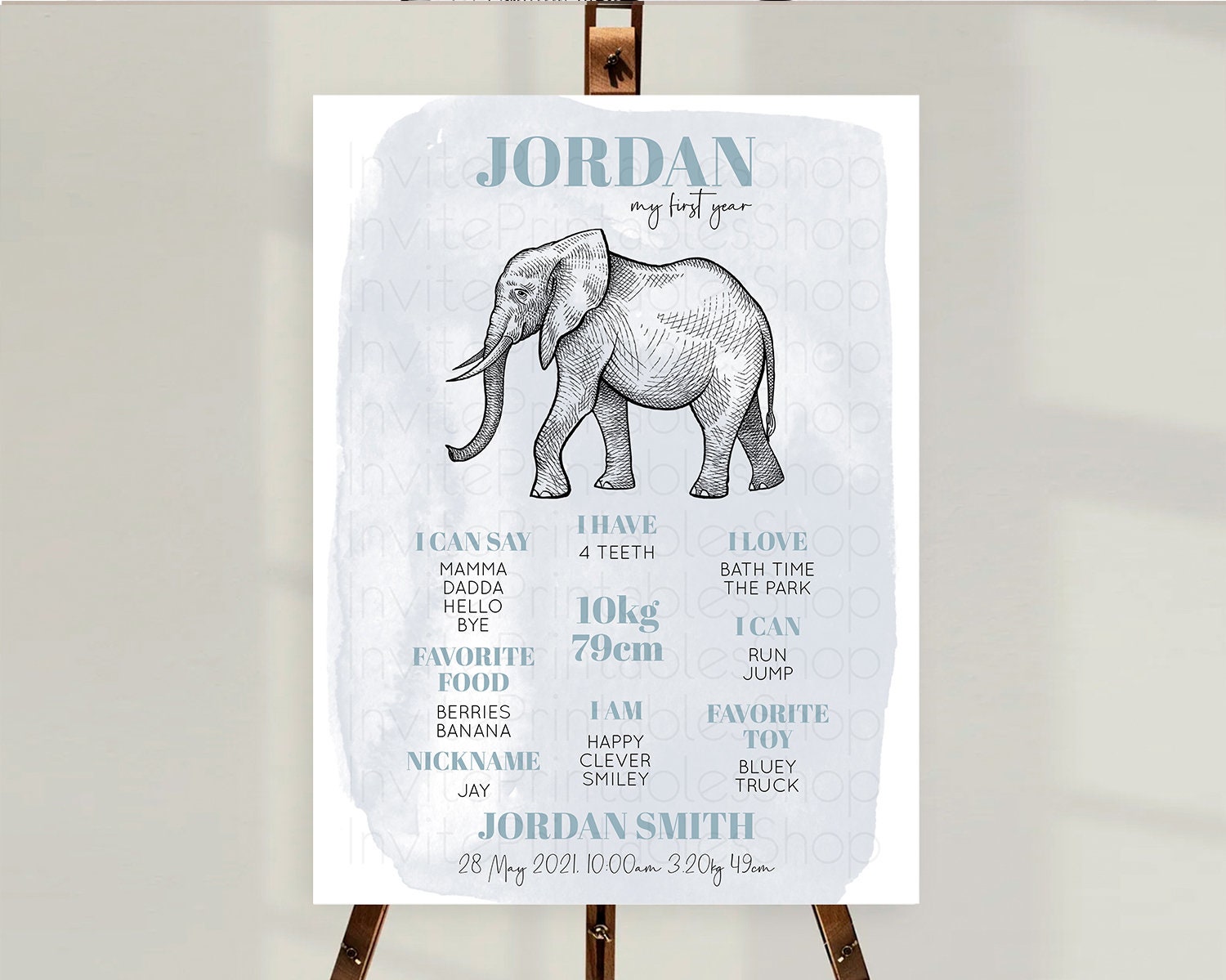 Elephant First Birthday Milestone Board Elephant Milestone Poster One Wild Year Safari Adventure Elephant Zoo Birthday Welcome Sign D10811