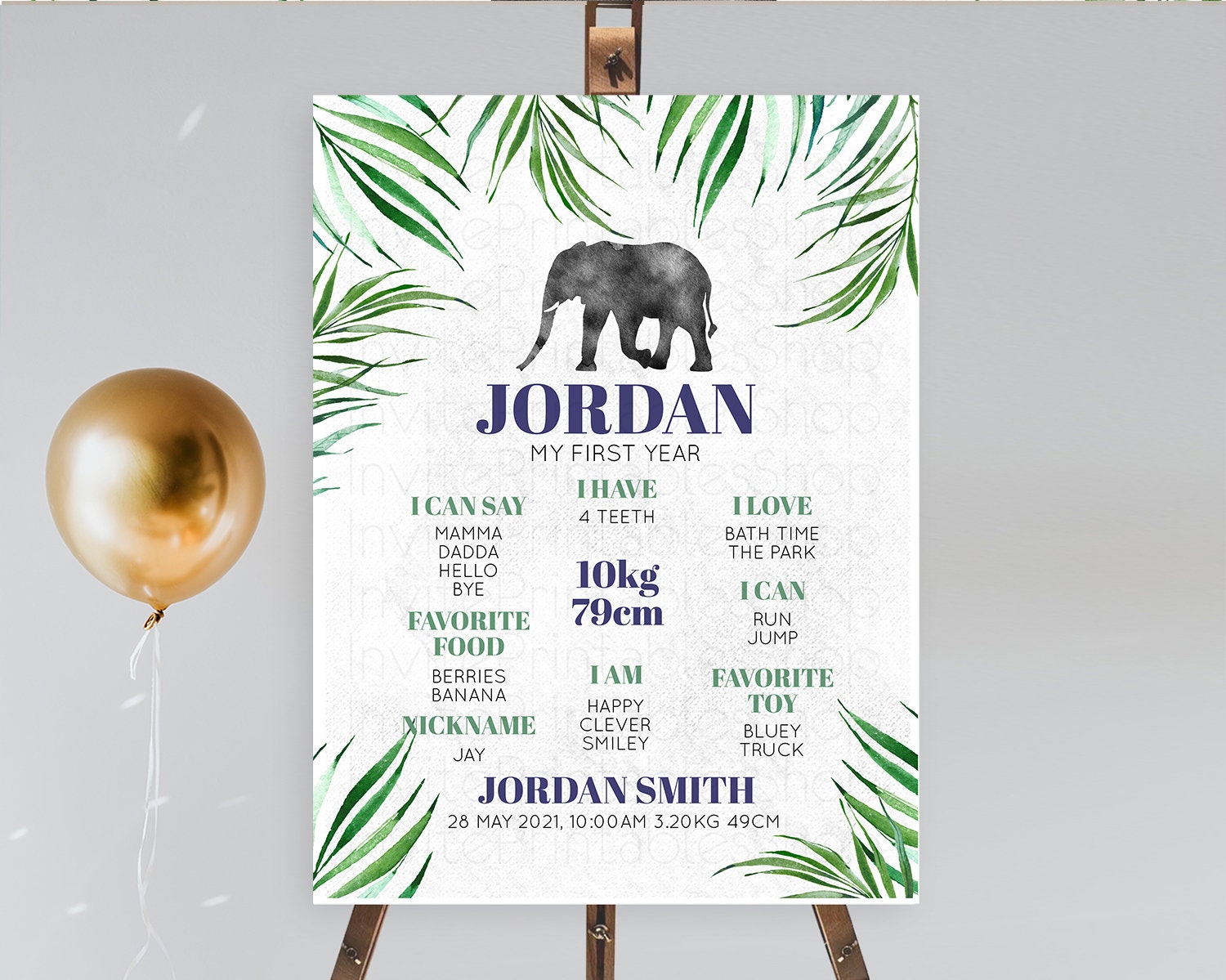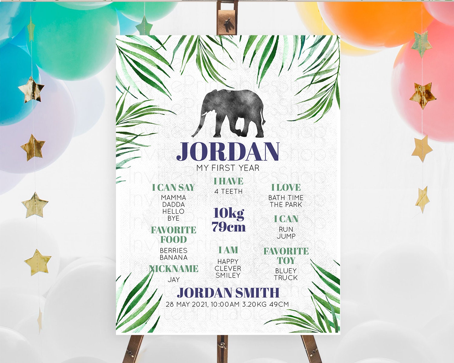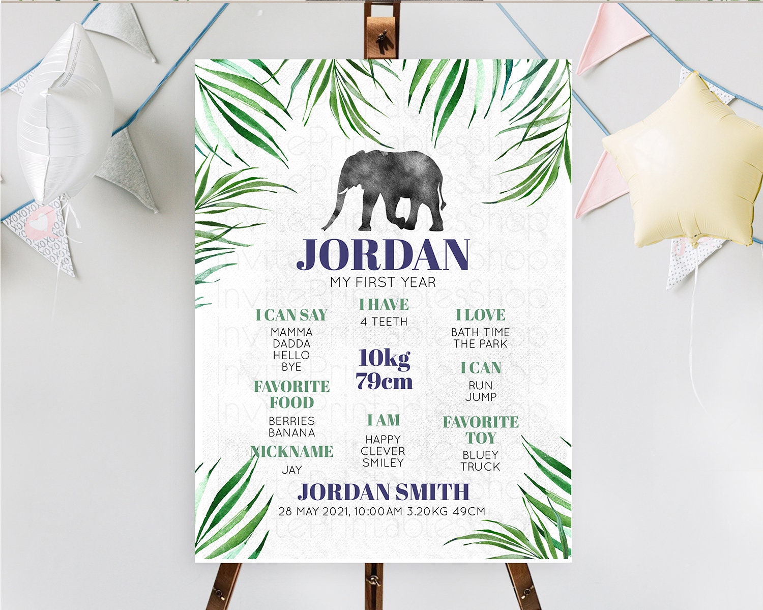 Elephant First Birthday Milestone Board Elephant Milestone Poster One Wild Year Safari Adventure Elephant Zoo Birthday Welcome Sign D10842