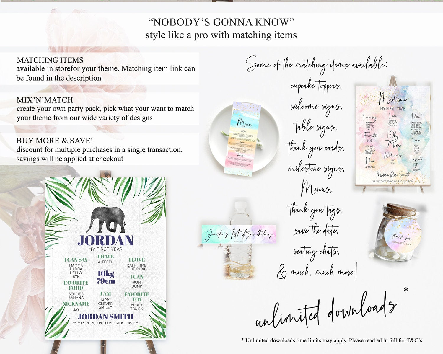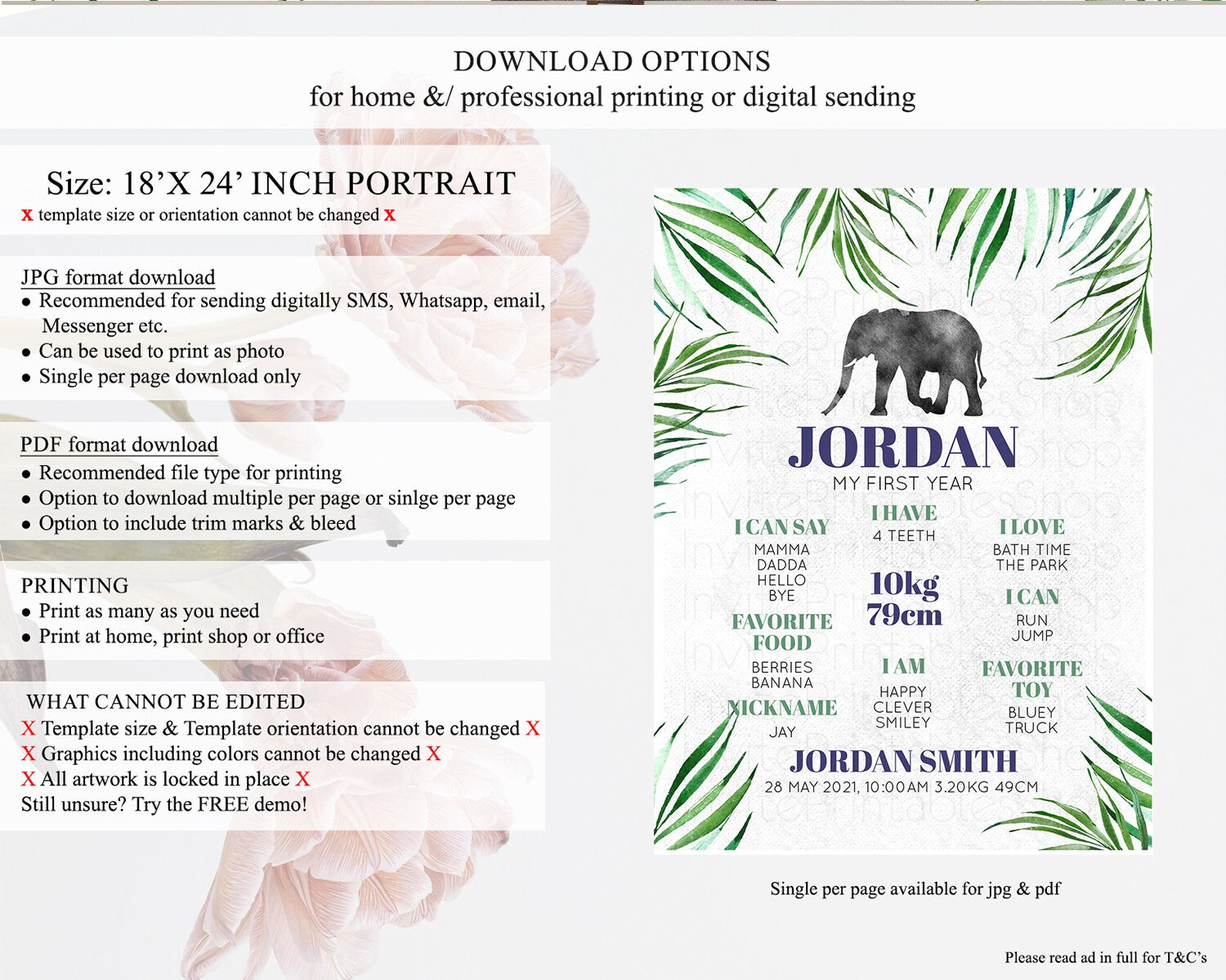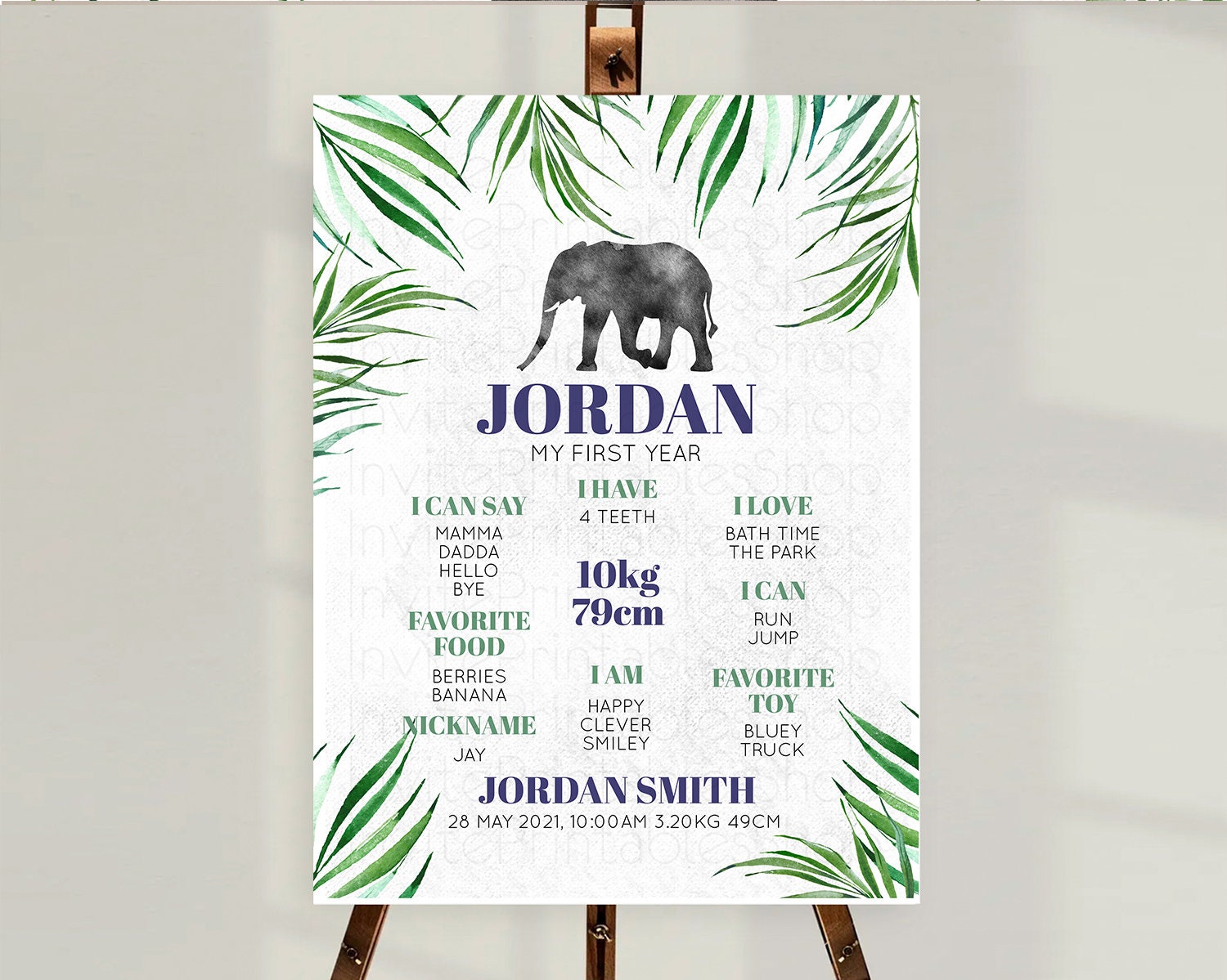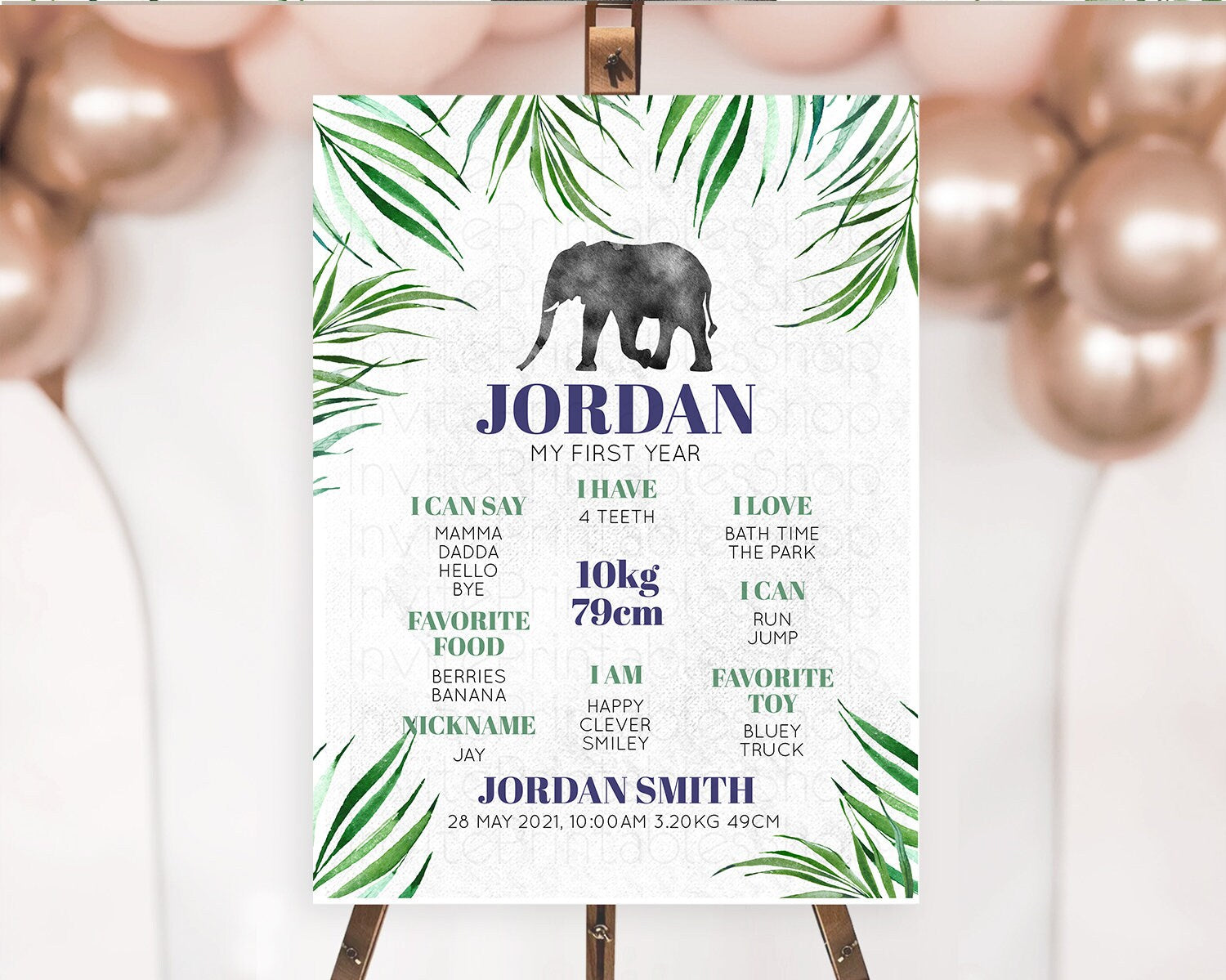 Elephant First Birthday Milestone Board Elephant Milestone Poster One Wild Year Safari Adventure Elephant Zoo Birthday Welcome Sign D10842