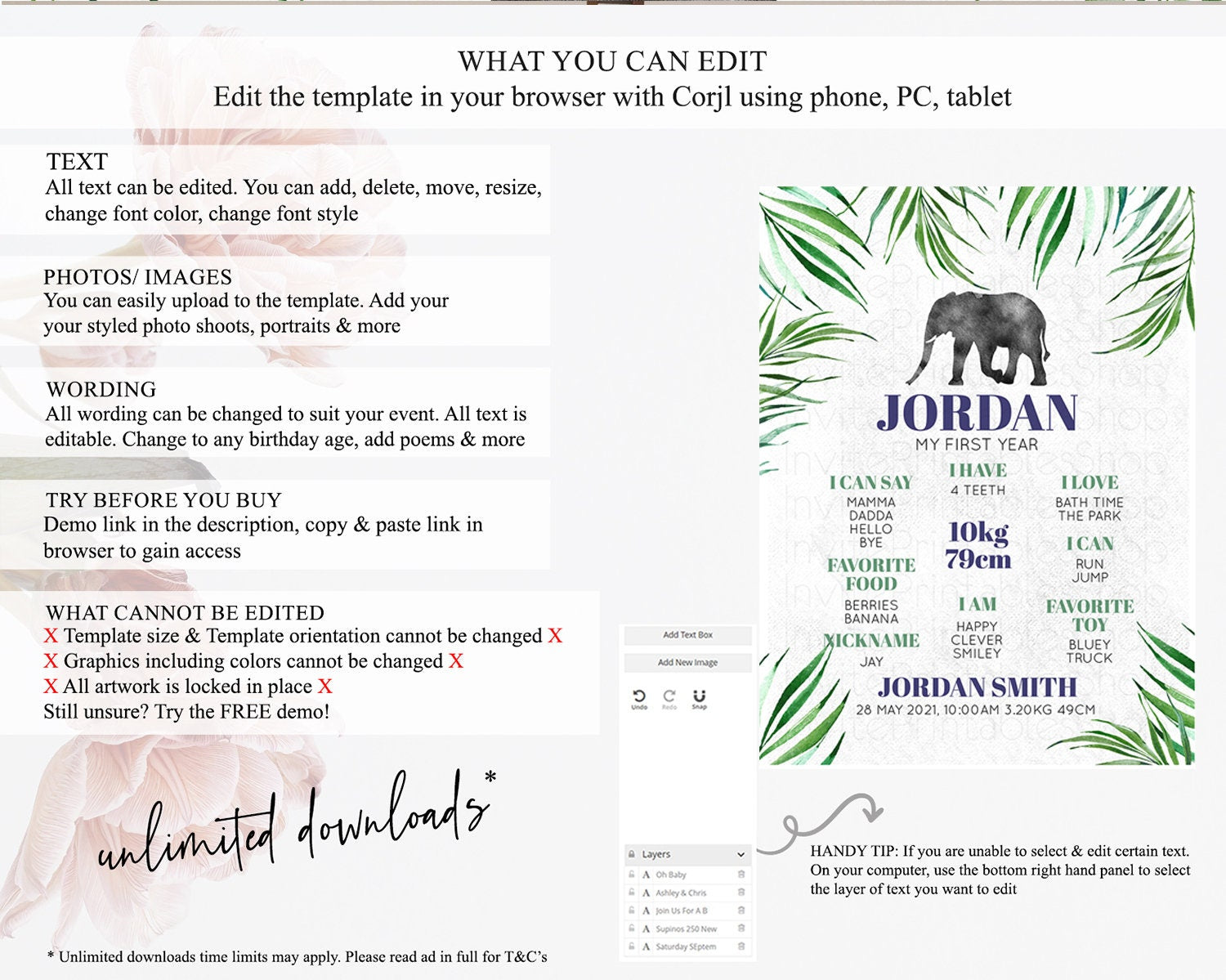 • After purchase, Corjl emails your editing link. Allow up to 15 minutes for delivery.