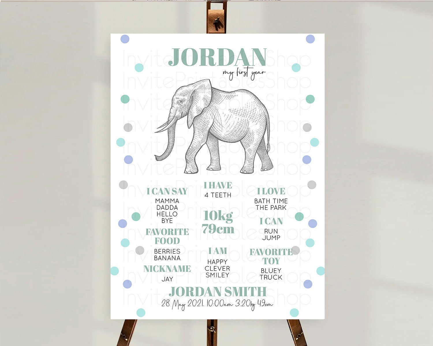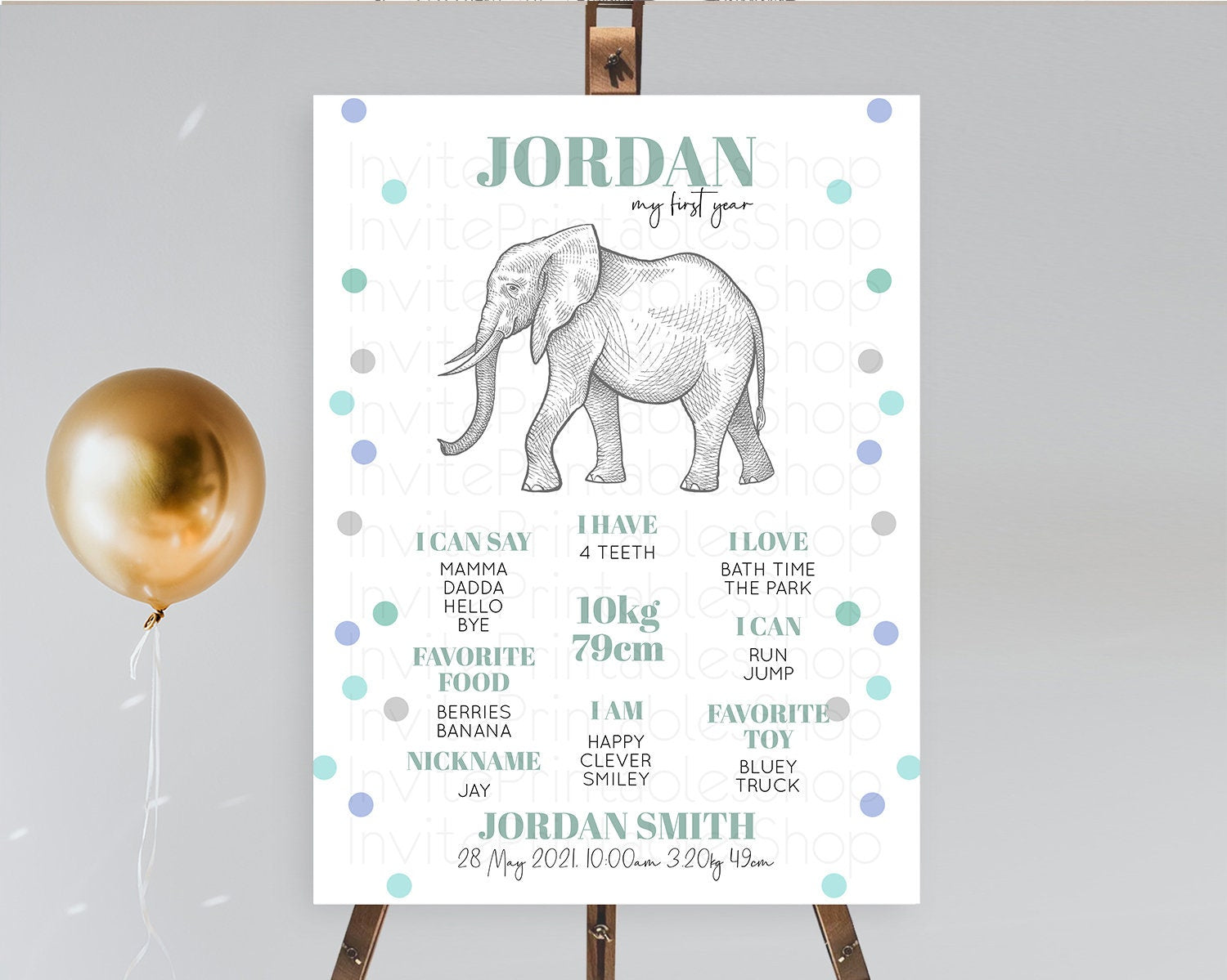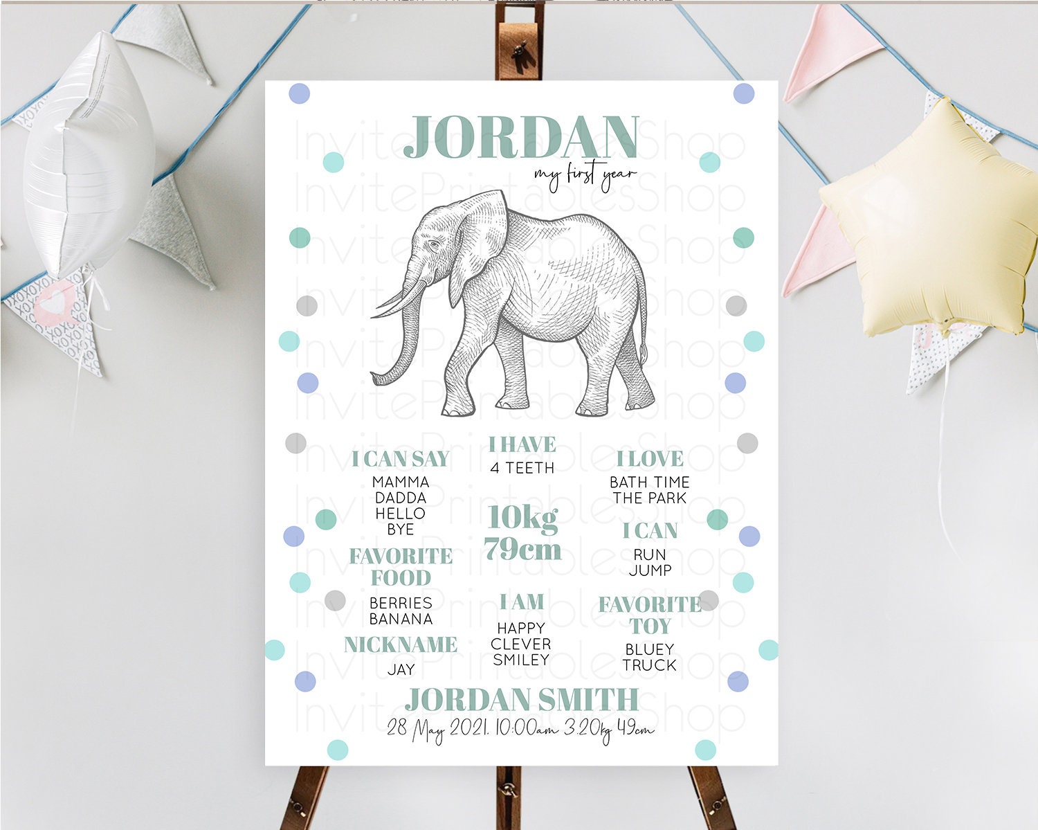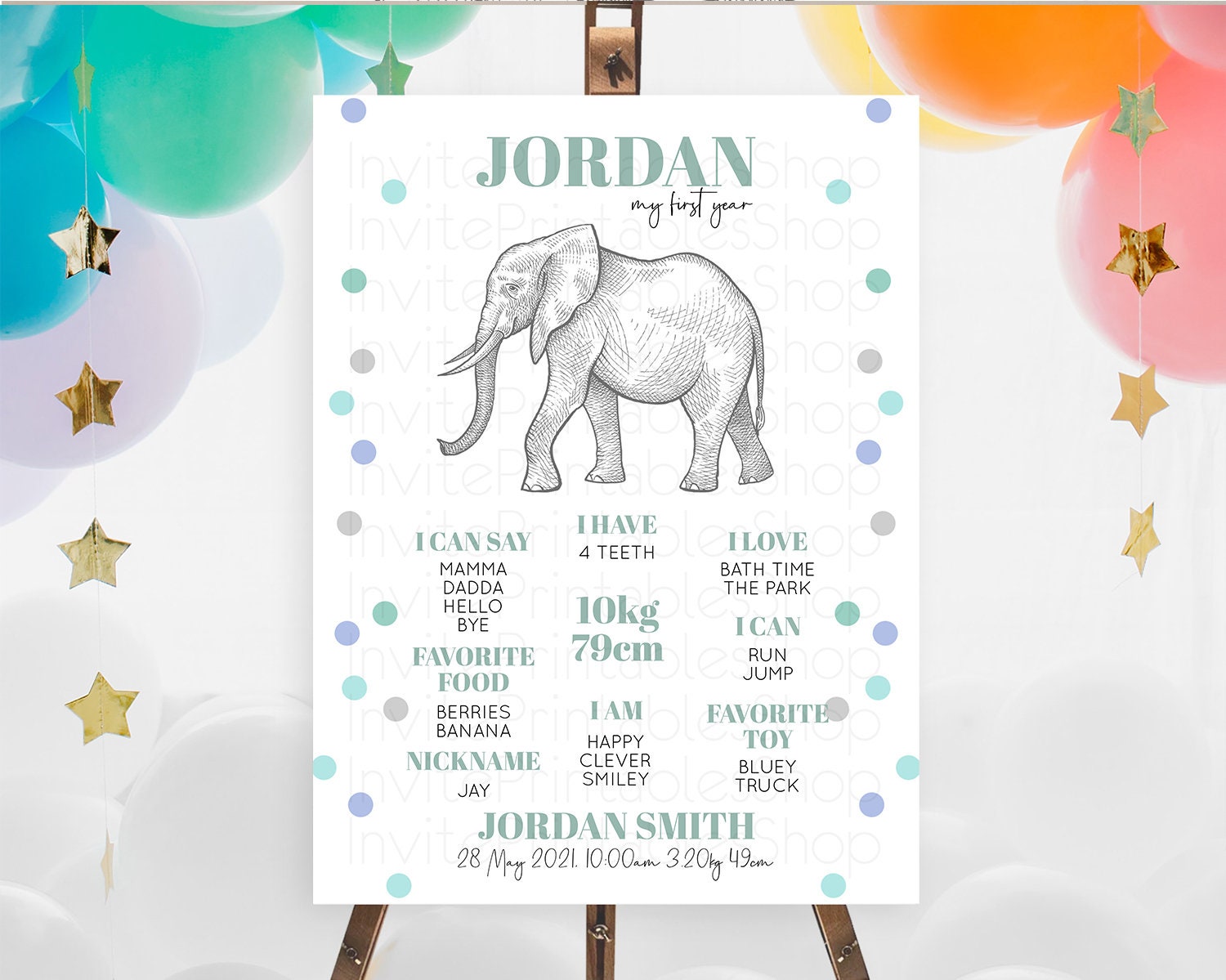 Elephant First Birthday Milestone Board Elephant Milestone Poster One Wild Year Safari Adventure Elephant Zoo Birthday Welcome Sign D10859
