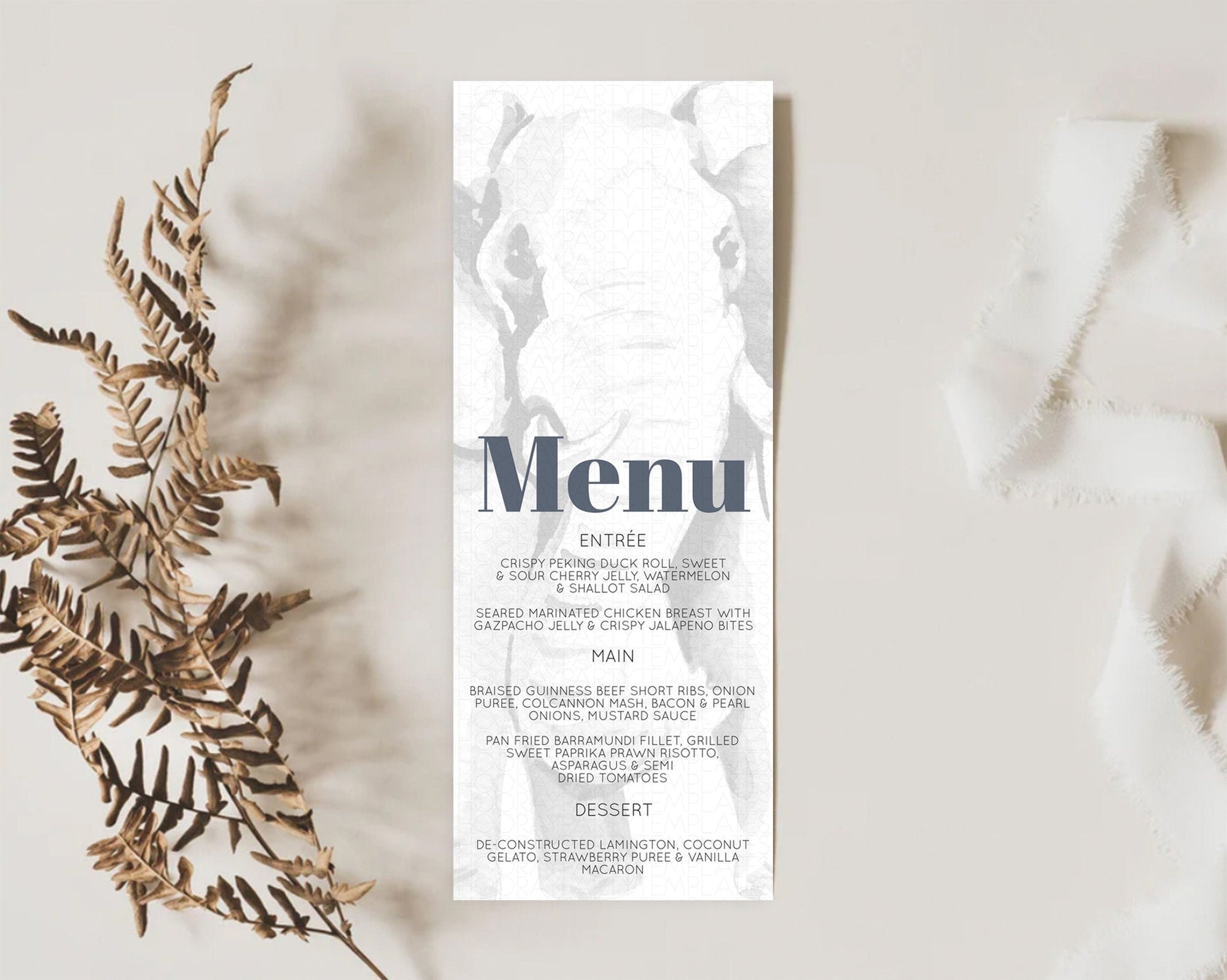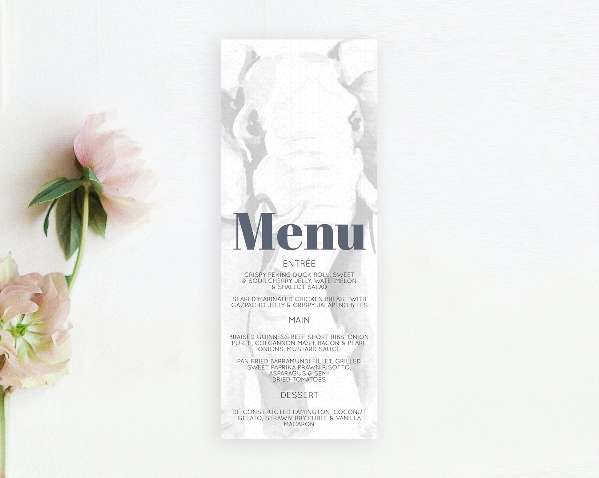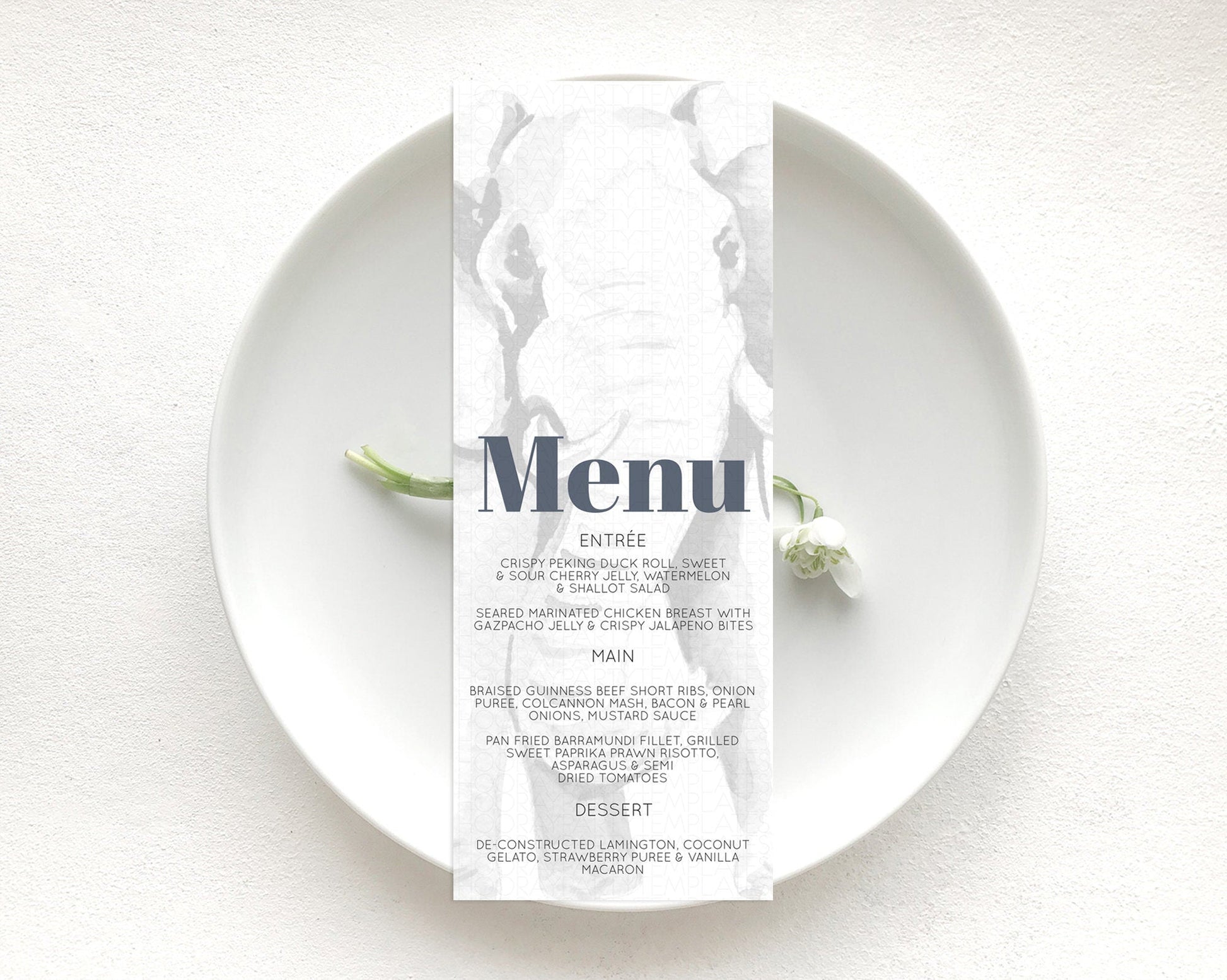 Elephant Menu Elephant Menu Template Elephant Safari Zoo Table Decor Elephant Dinner Dessert Menu Elephant Party Food Menu D10292