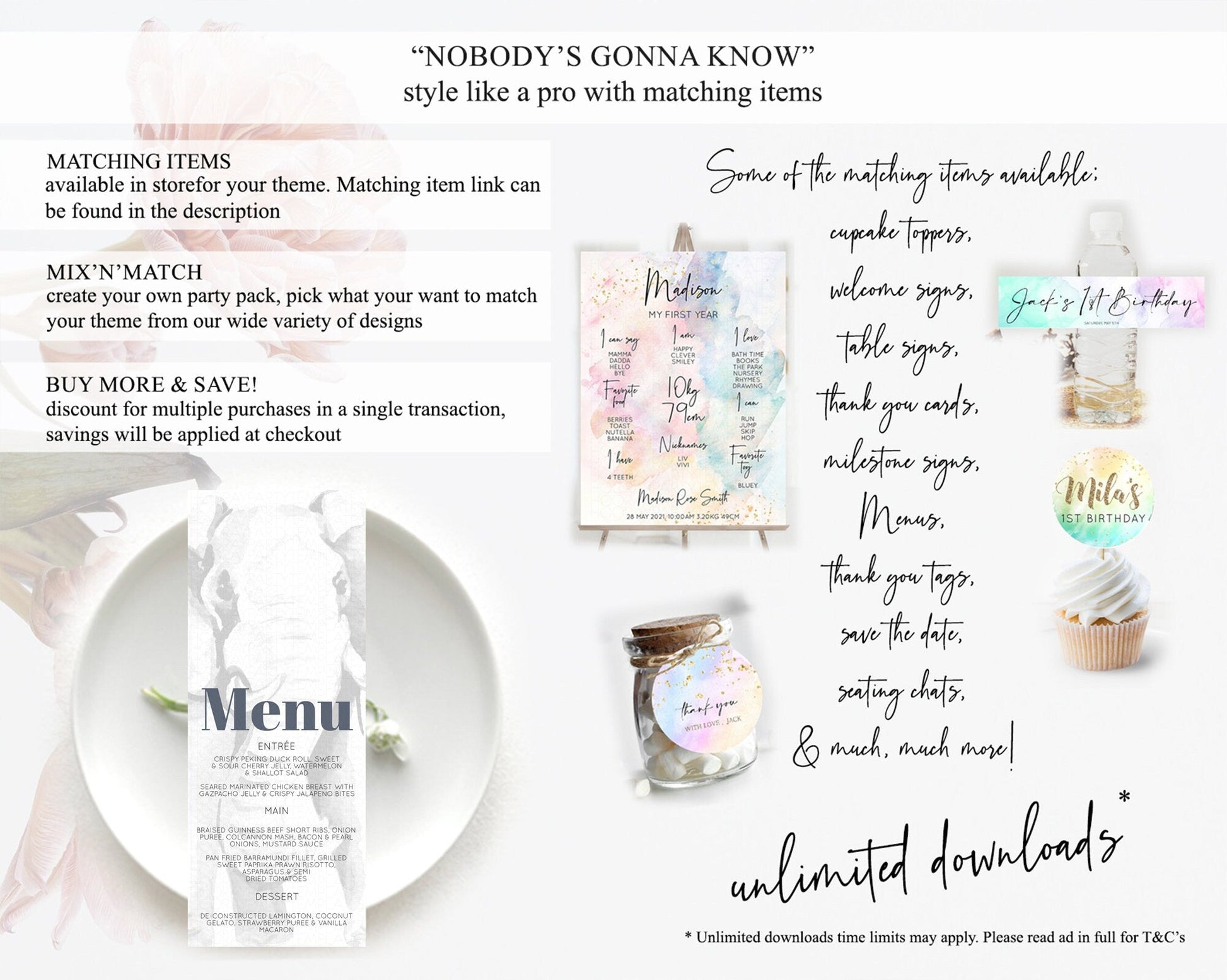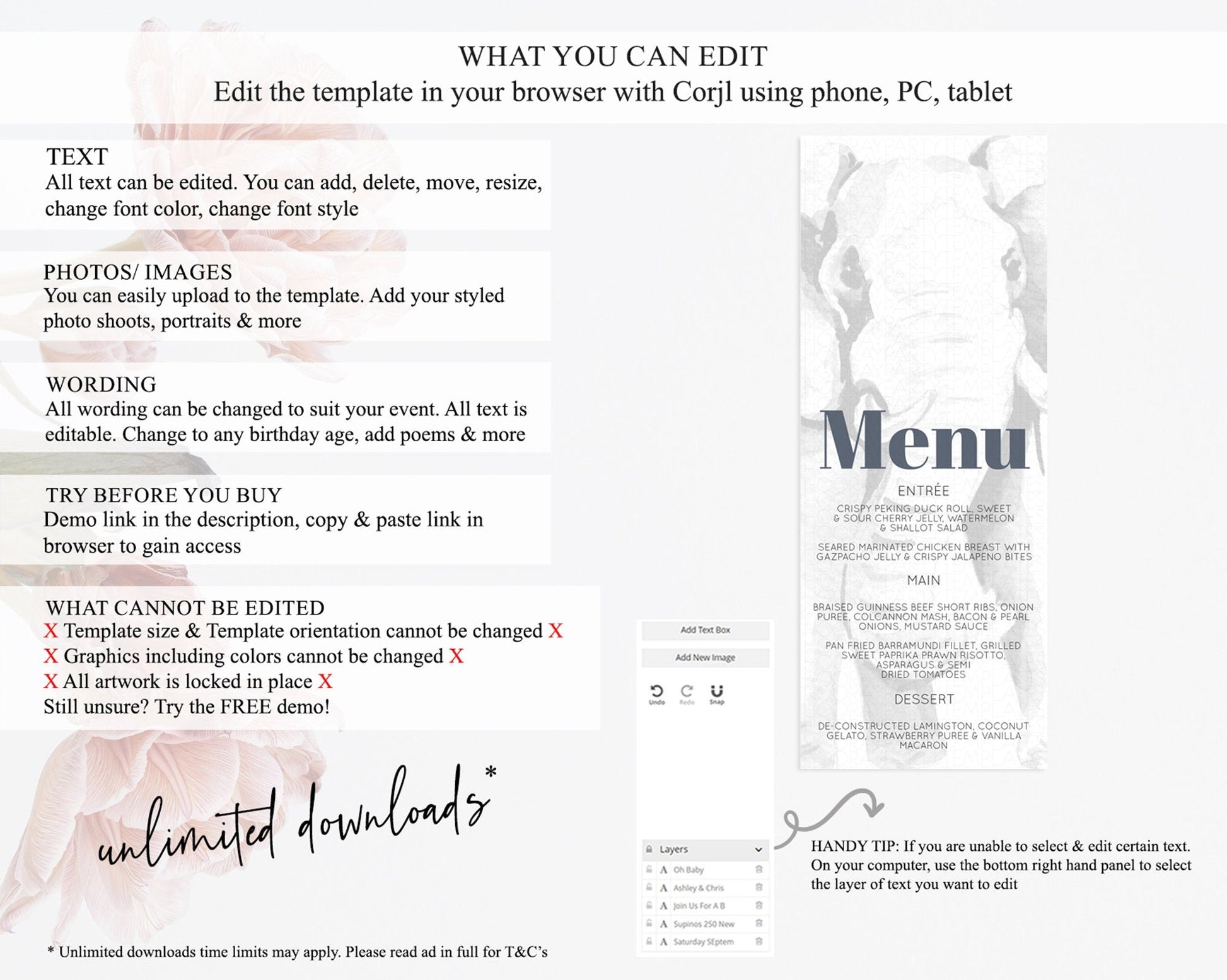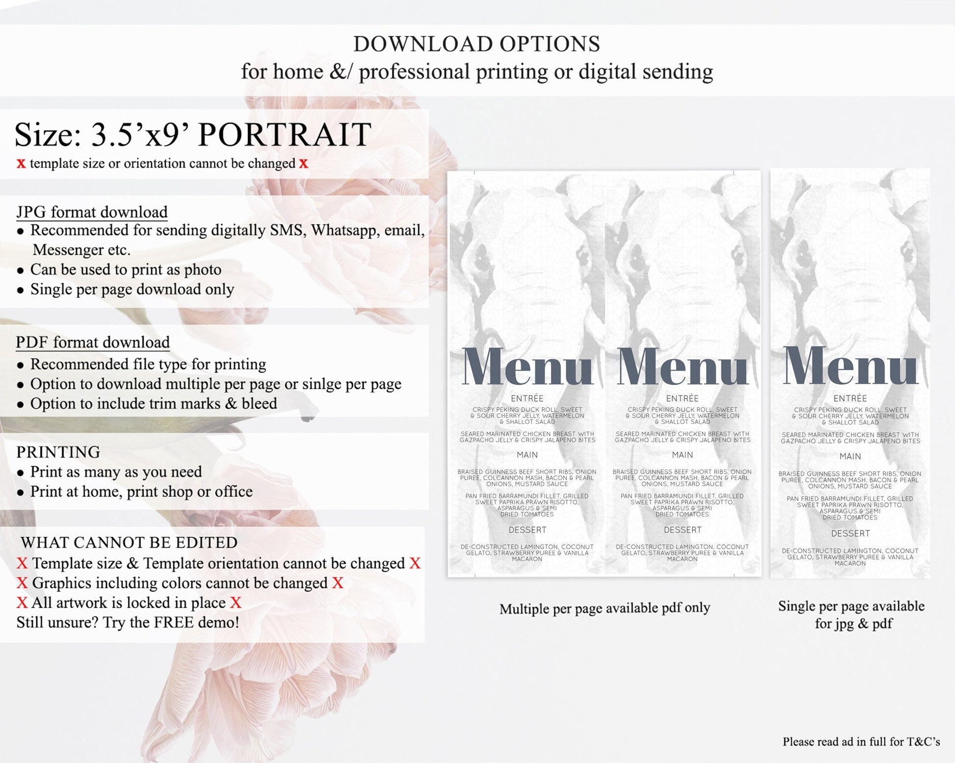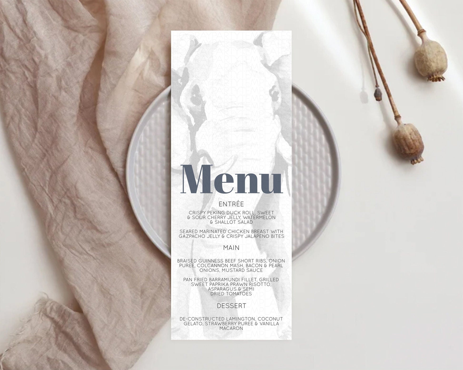 Elephant Menu Elephant Menu Template Elephant Safari Zoo Table Decor Elephant Dinner Dessert Menu Elephant Party Food Menu D10292