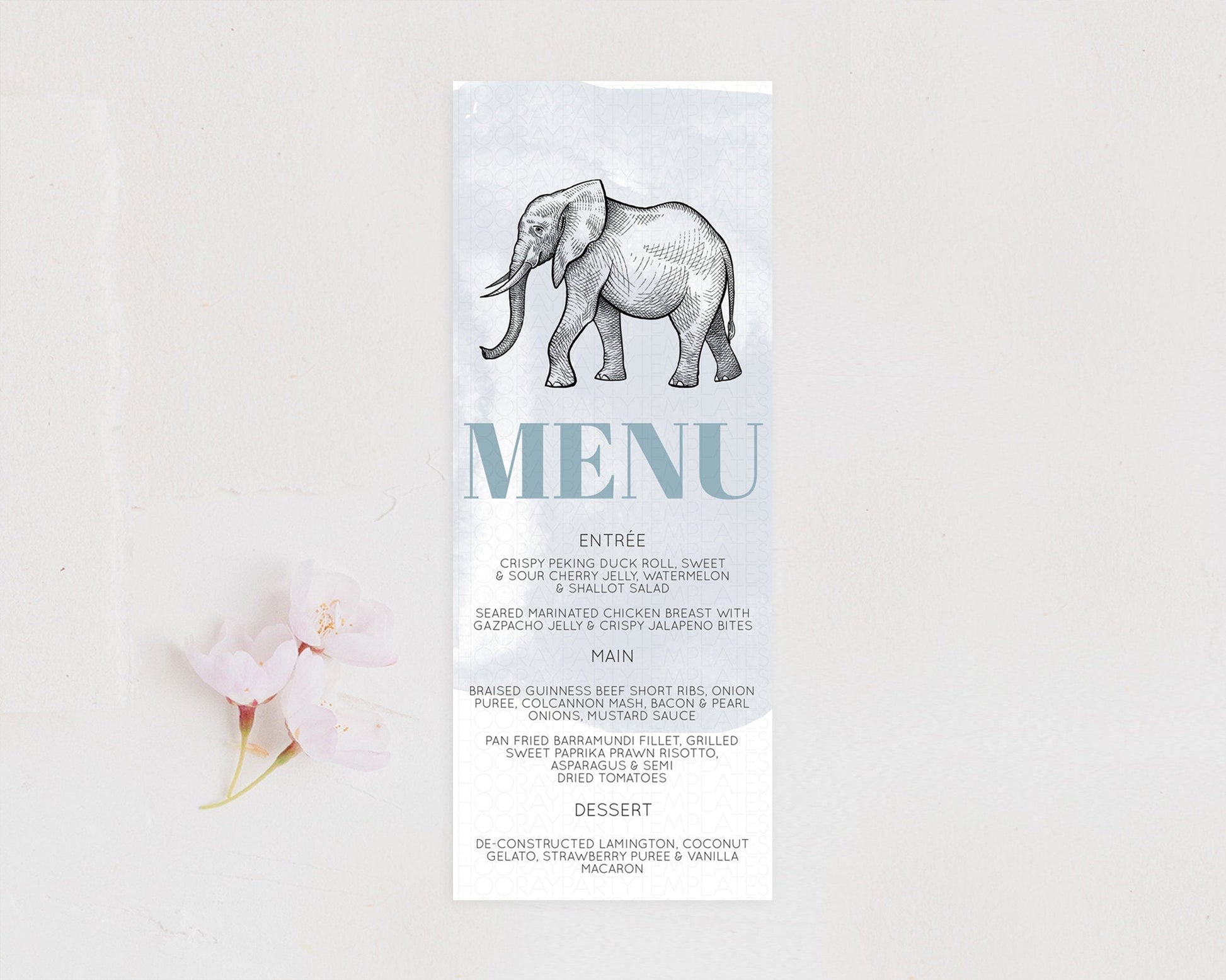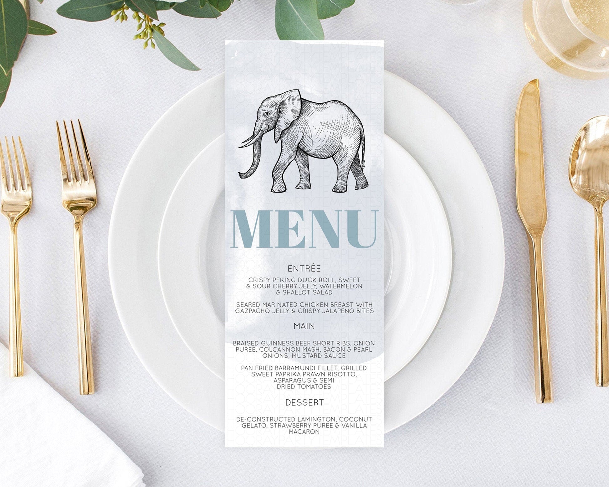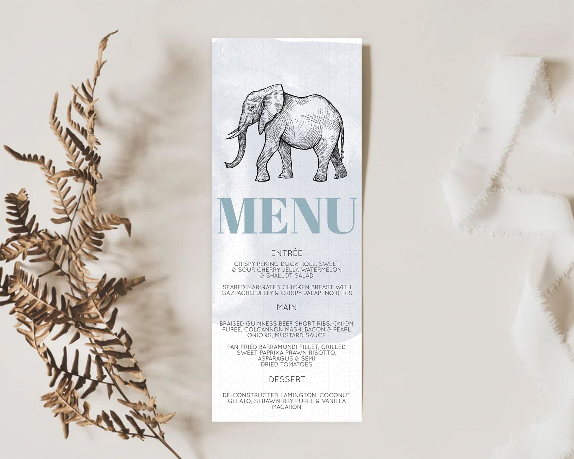 Elephant Menu Elephant Menu Template Elephant Safari Zoo Table Decor Elephant Dinner Dessert Menu Elephant Party Food Menu D10811