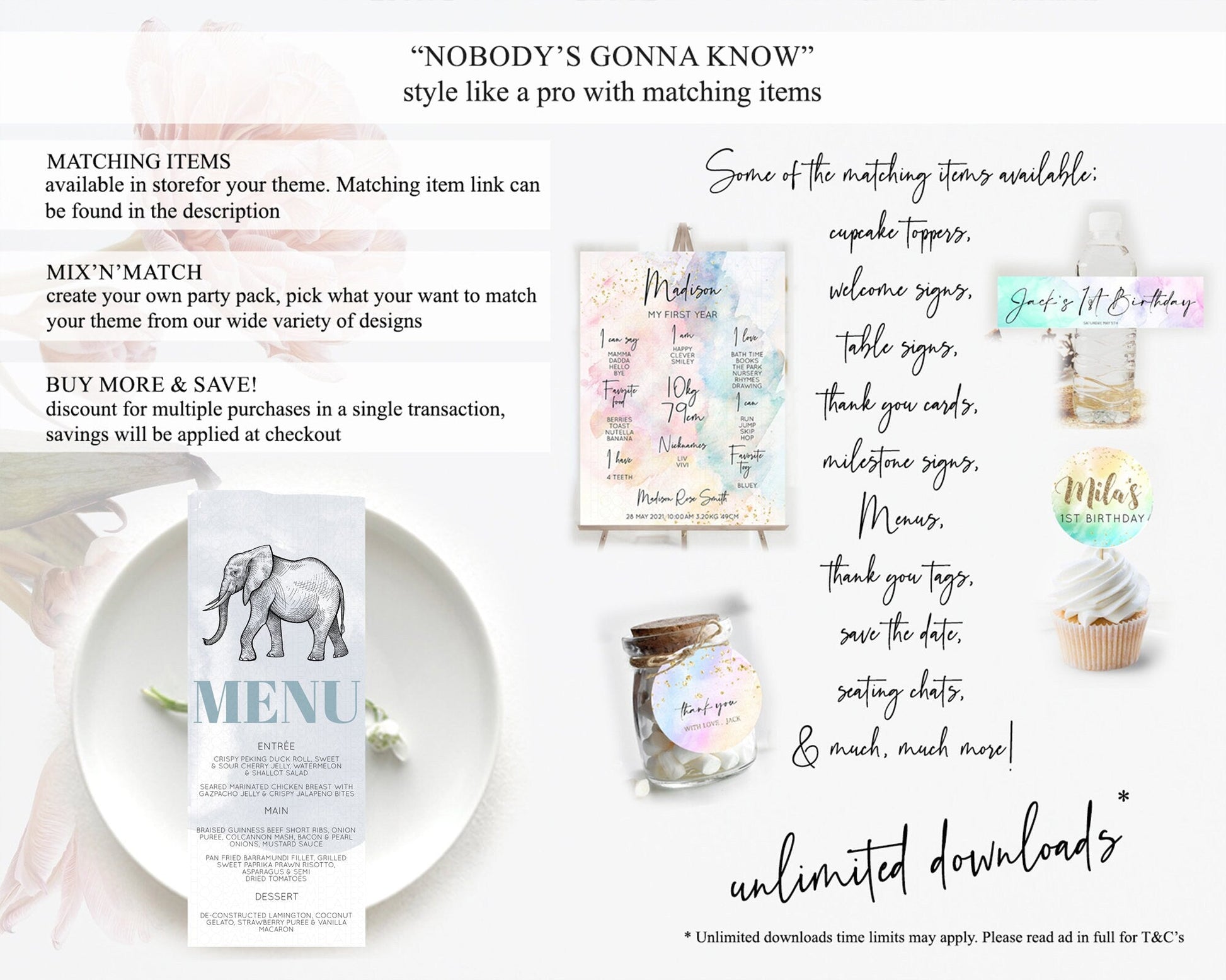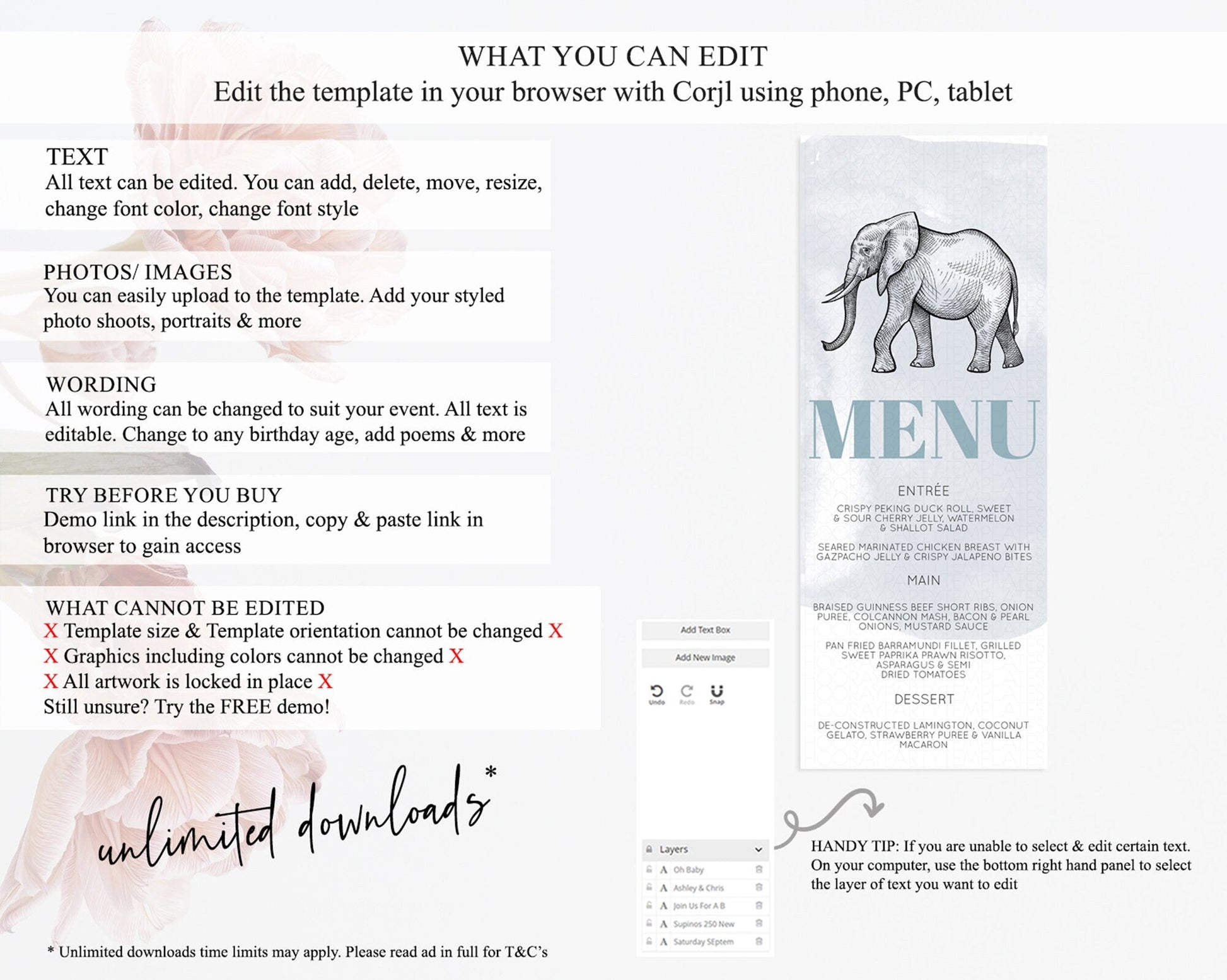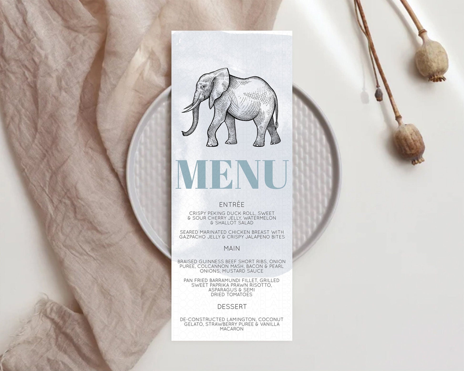 Elephant Menu Elephant Menu Template Elephant Safari Zoo Table Decor Elephant Dinner Dessert Menu Elephant Party Food Menu D10811