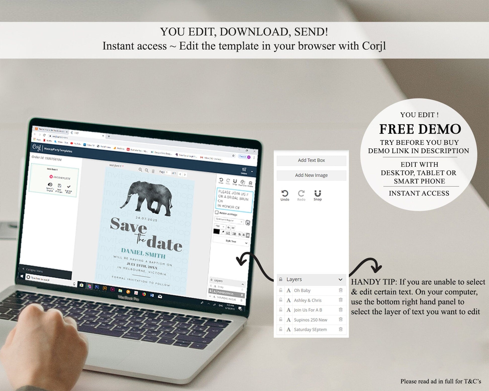 • Template size & orientation cannot be changed. Please use the demo link to confirm this product suits your needs.